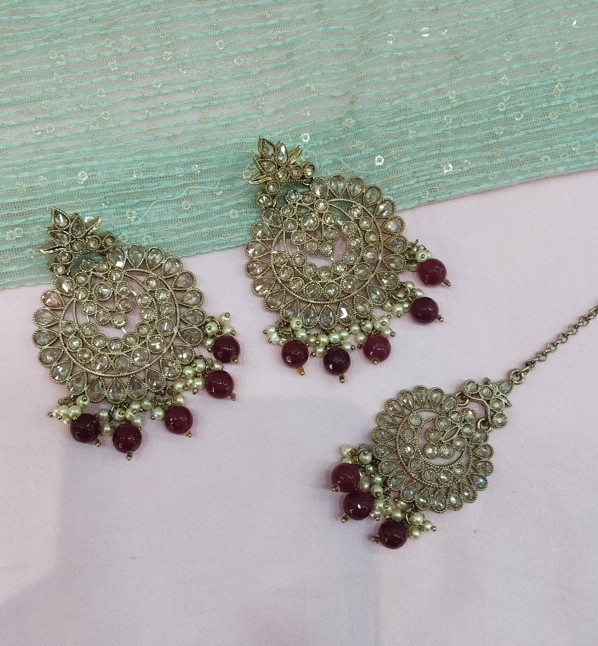 Maroon Bollywood Sehwag Earrings Jewellery Tikka Set