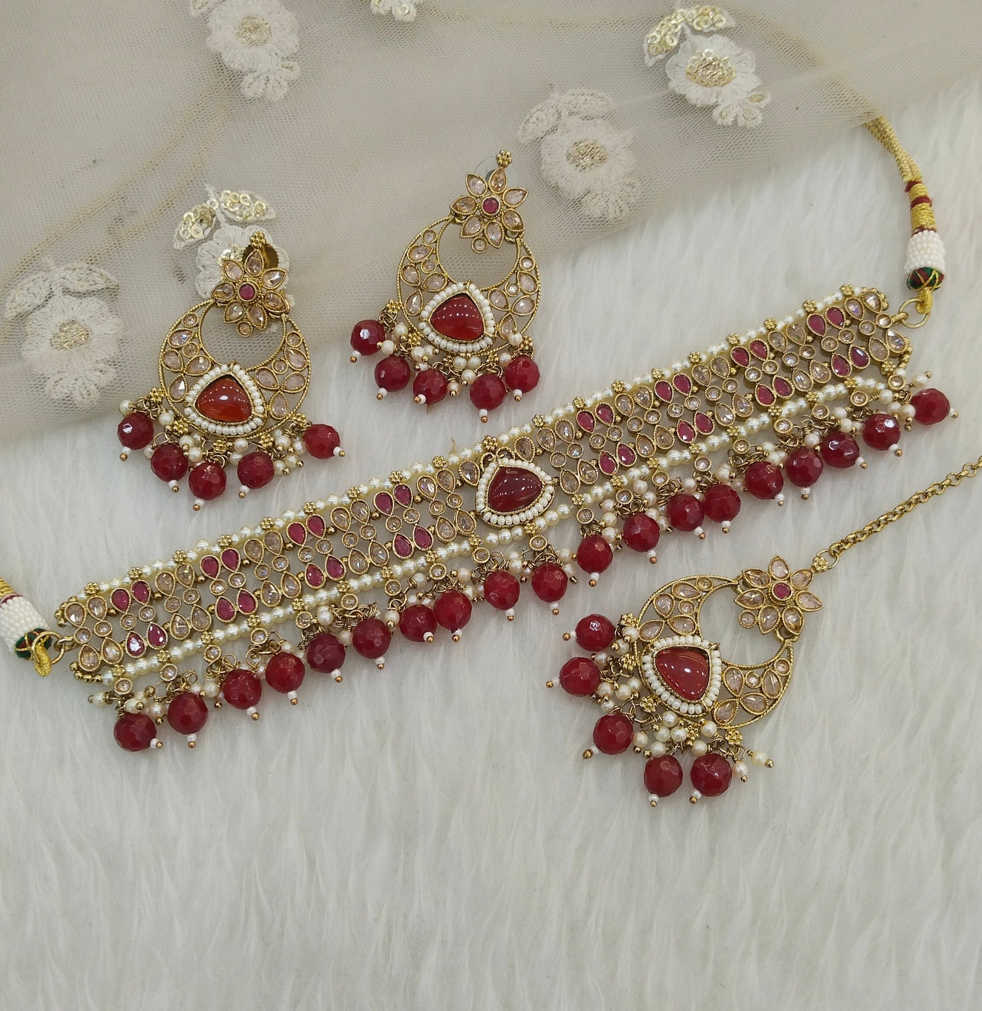 *Choker Width- 1.6 inches(included drops) * Earrings Length: - 2.6 inches(included drops) *Earrings width- 1.2 inches