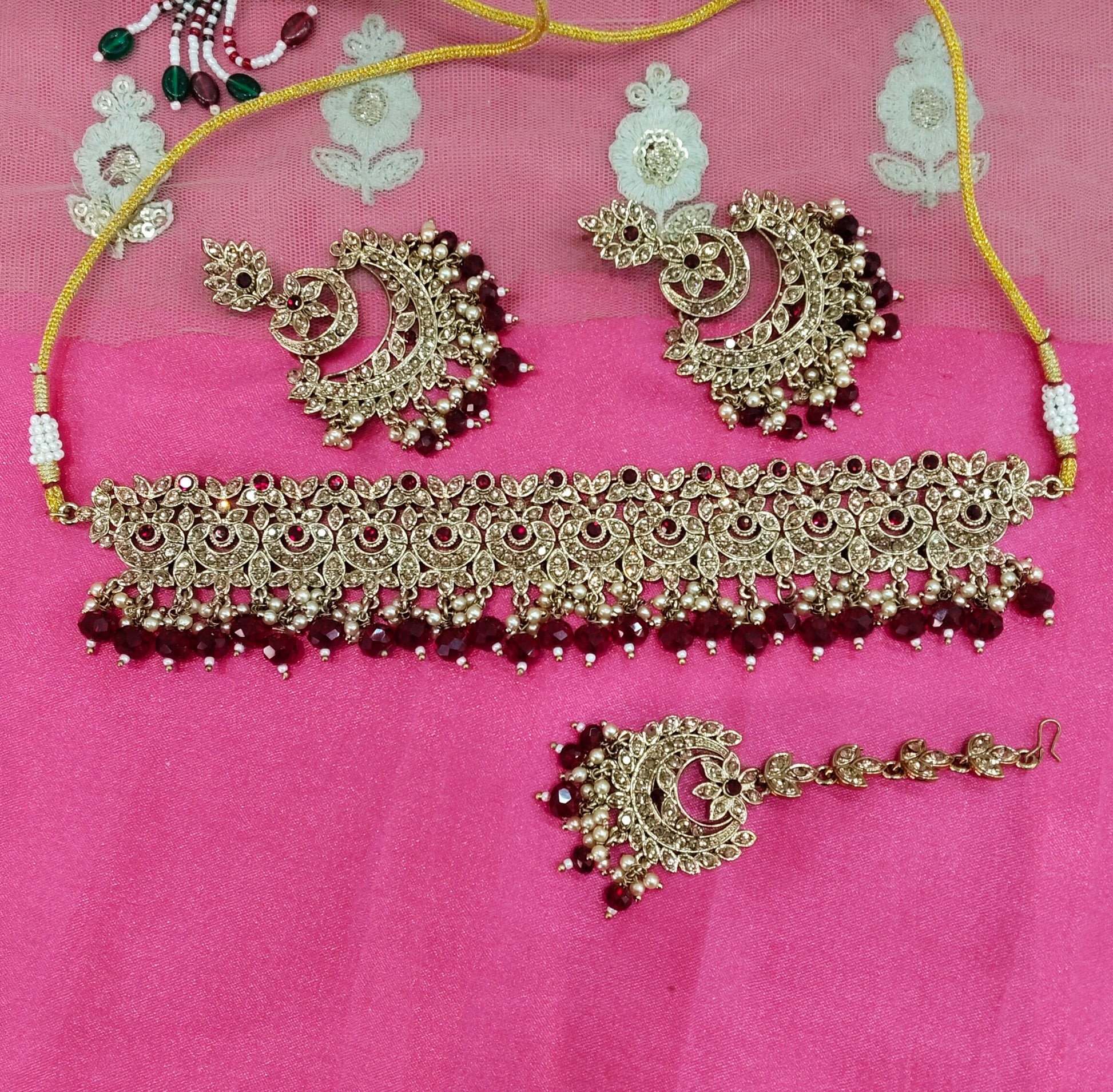 Maroon Crystal Stone Choker Jewellery Siraj Set