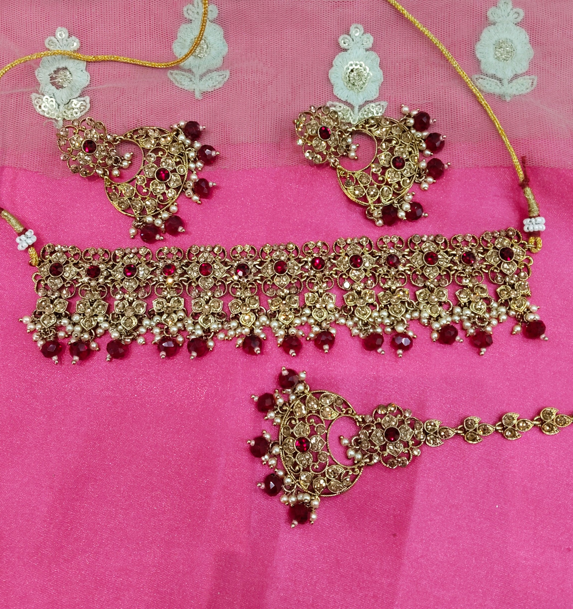 Maroon Crystal Stone Choker Jewellery Siraj Set