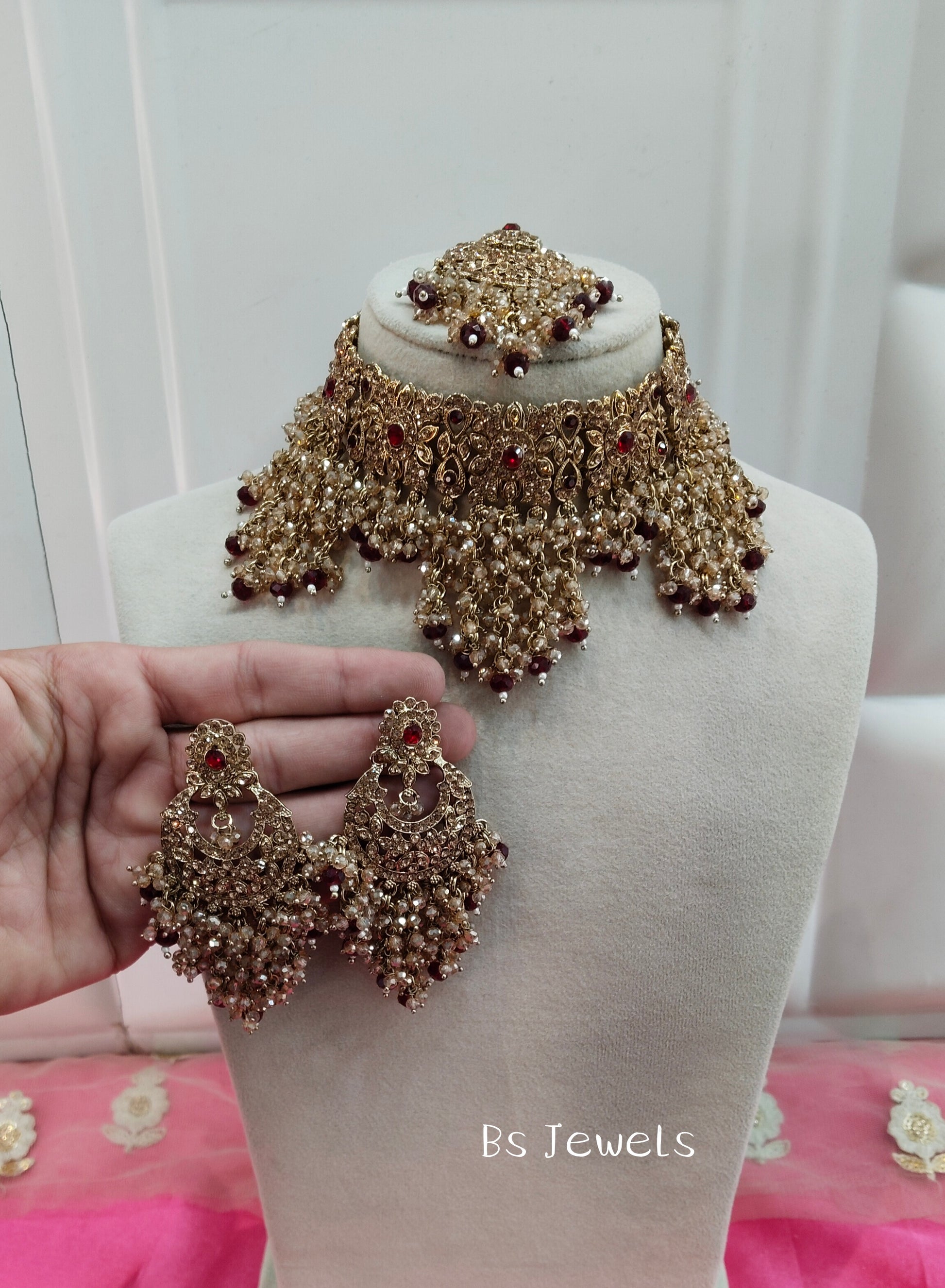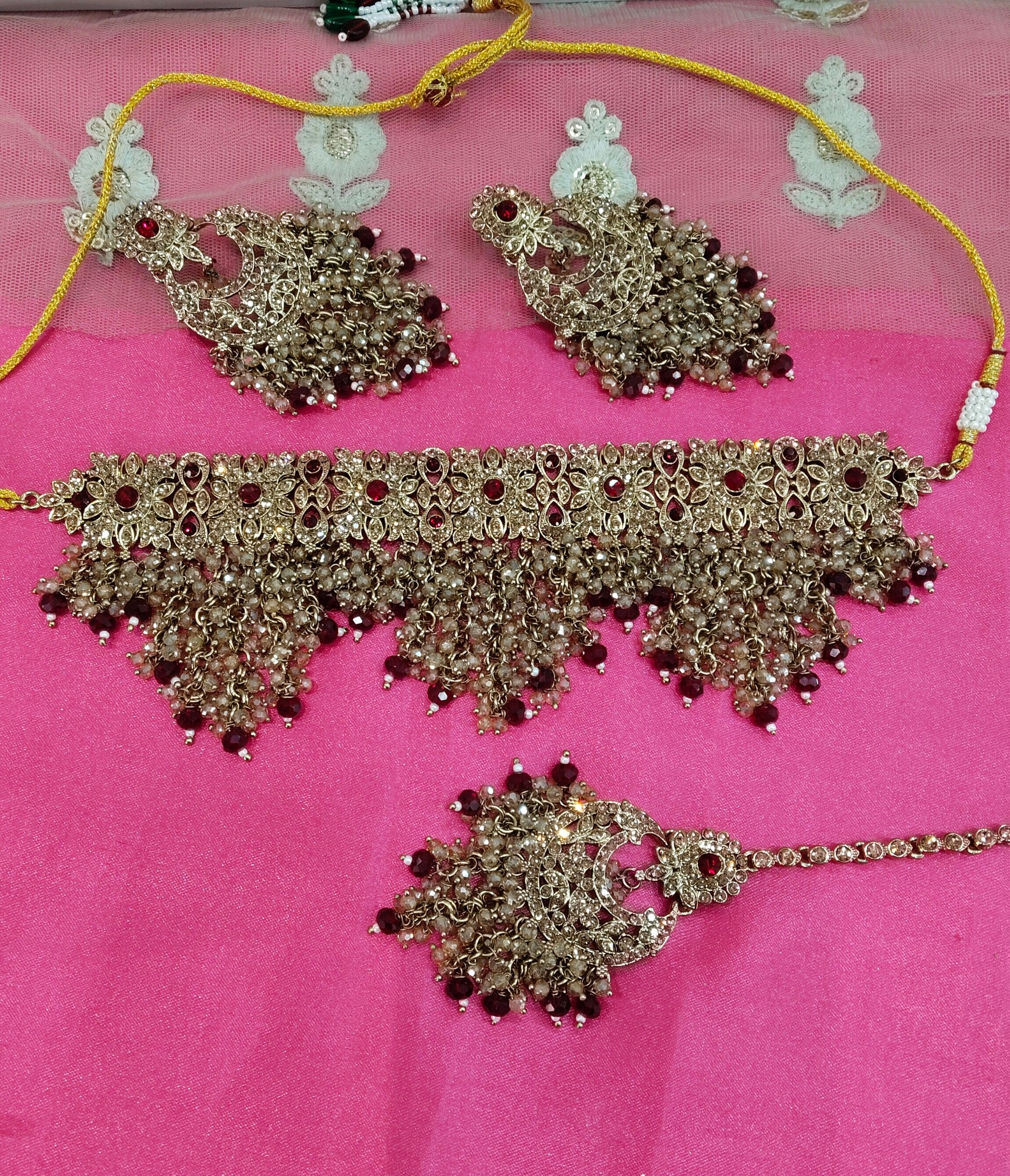 Maroon Crystal Stone Choker Jewellery Siraj Set