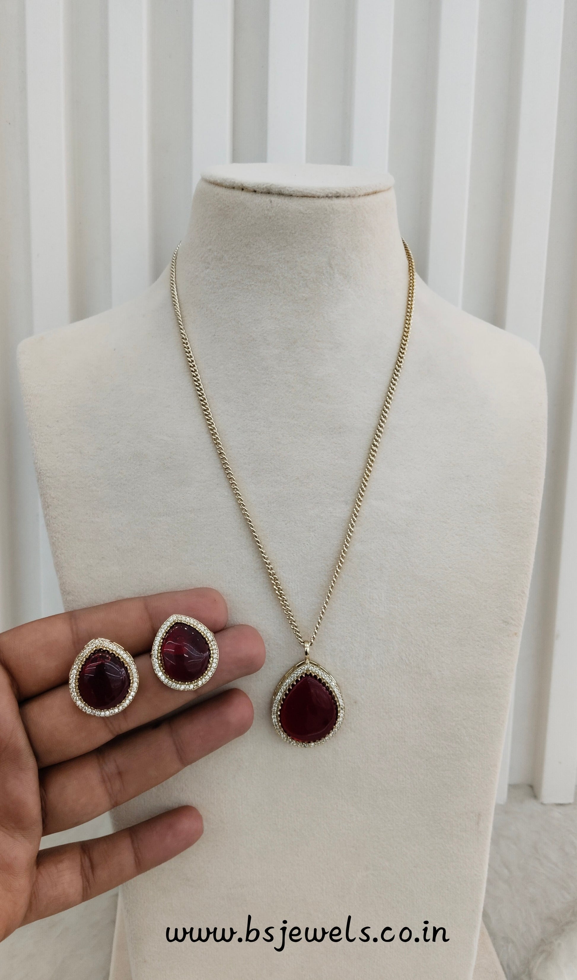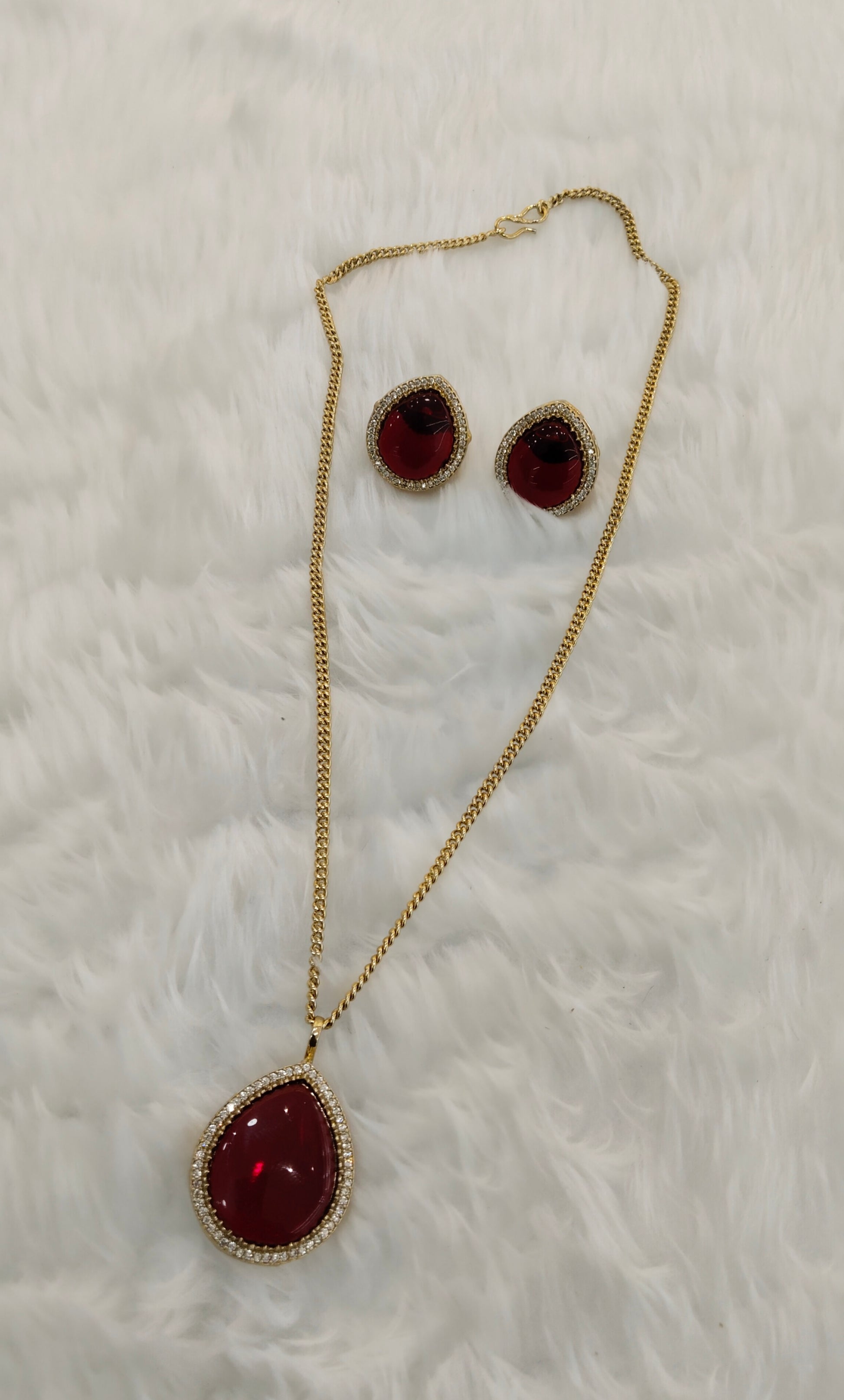 Maroon Gold Moissanite Kundan Necklace Jewellery Avenger Chain Set