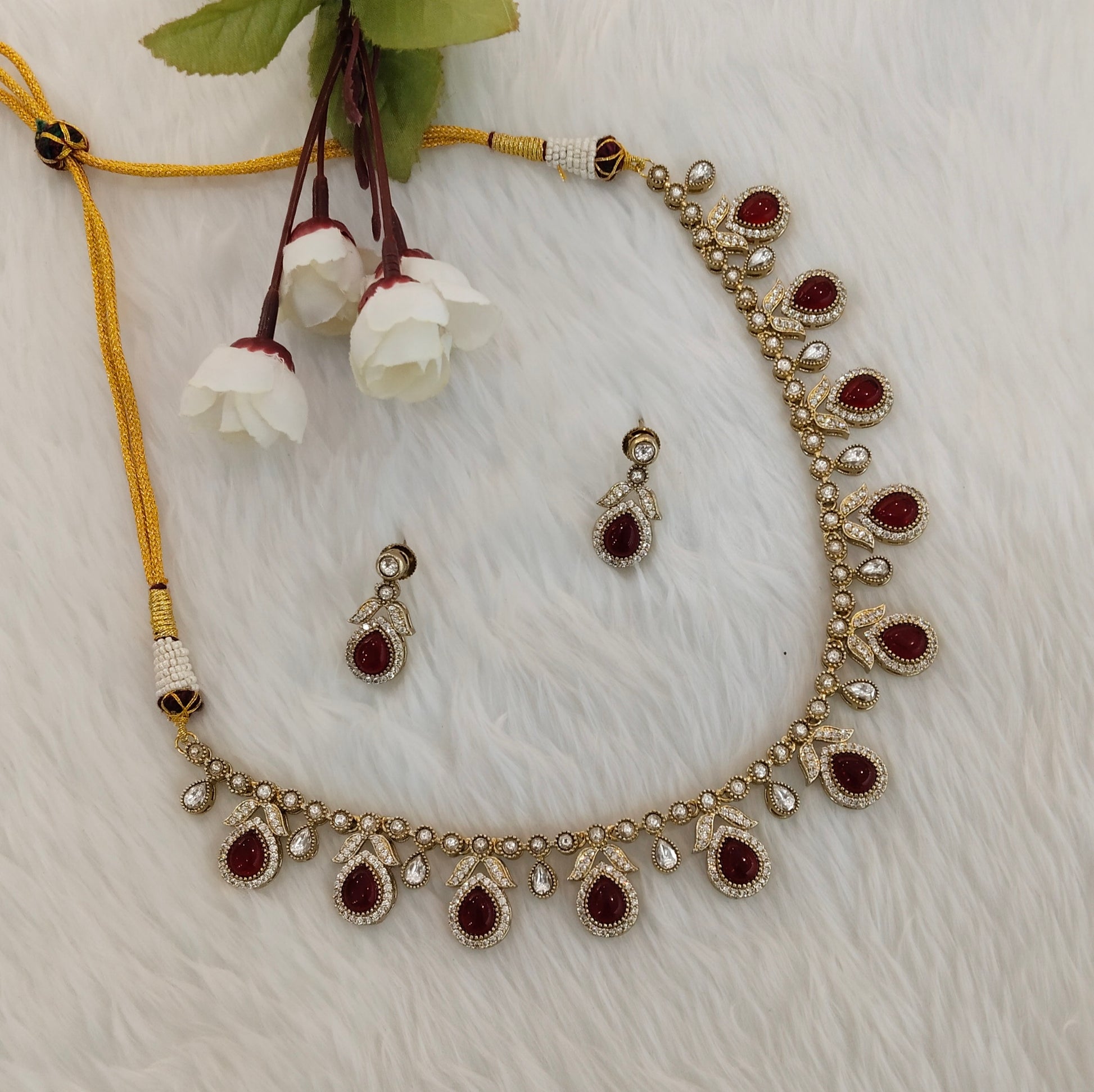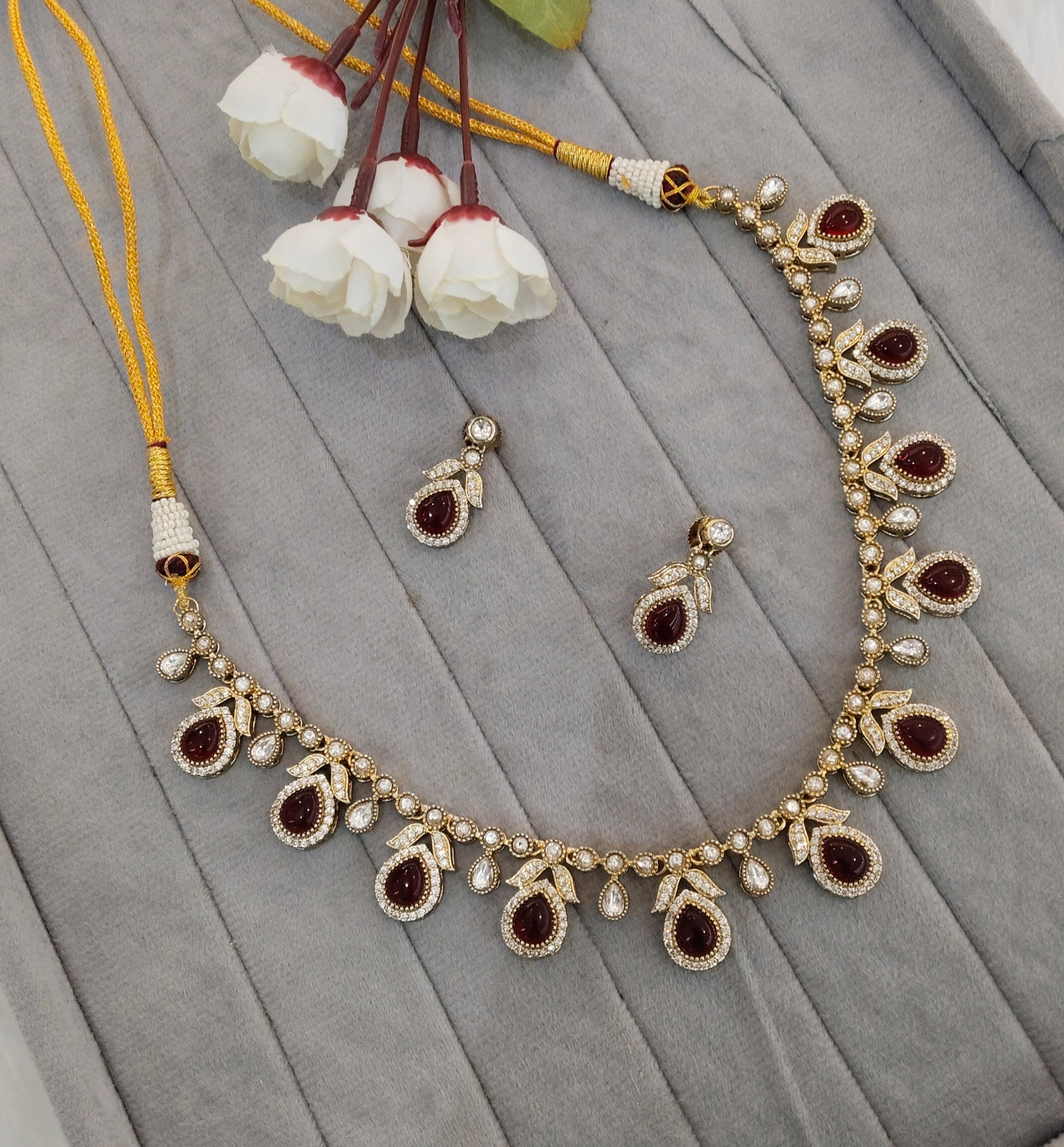 Maroon Gold Moissanite Kundan Necklace Jewellery Barkat Set