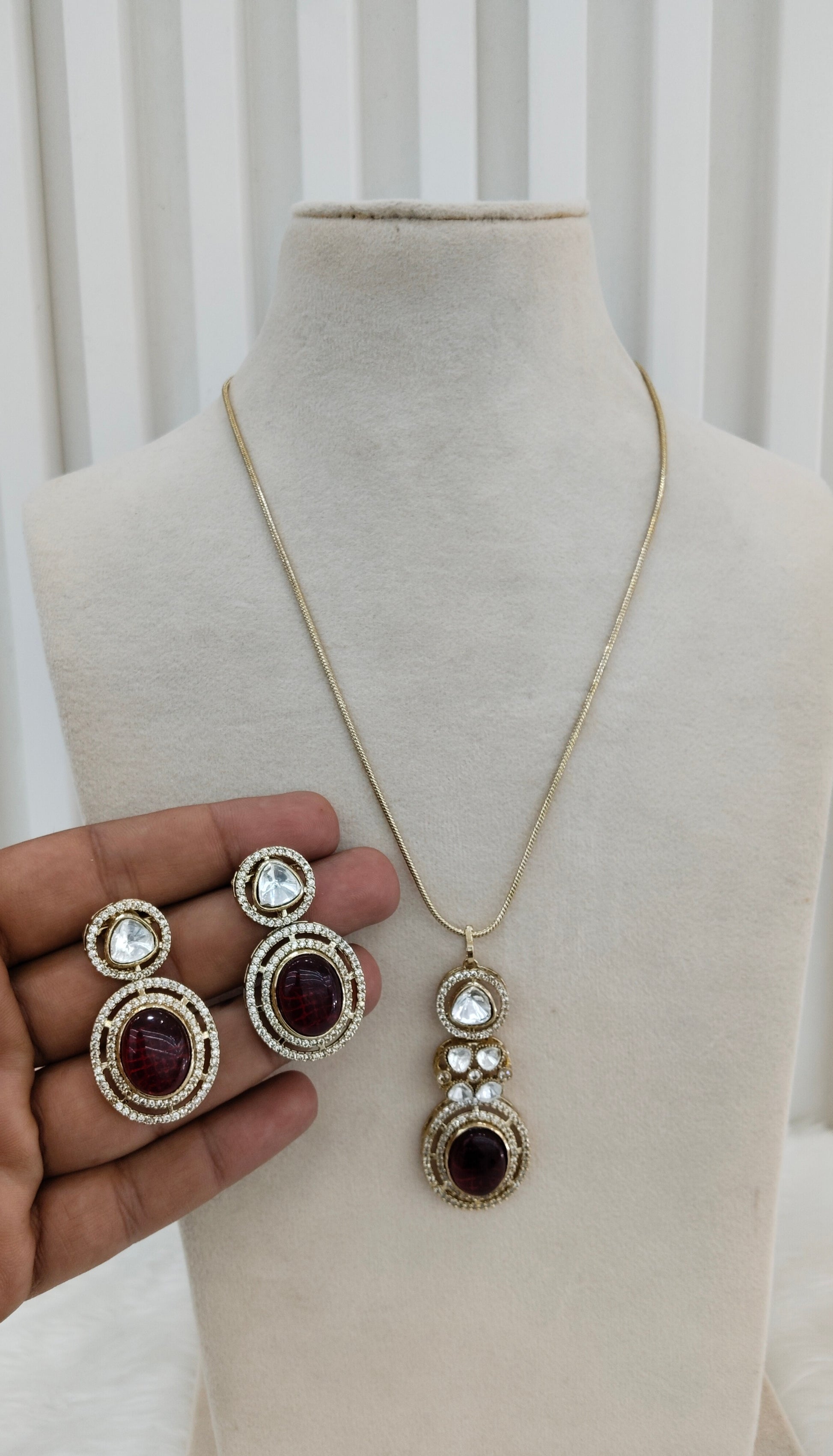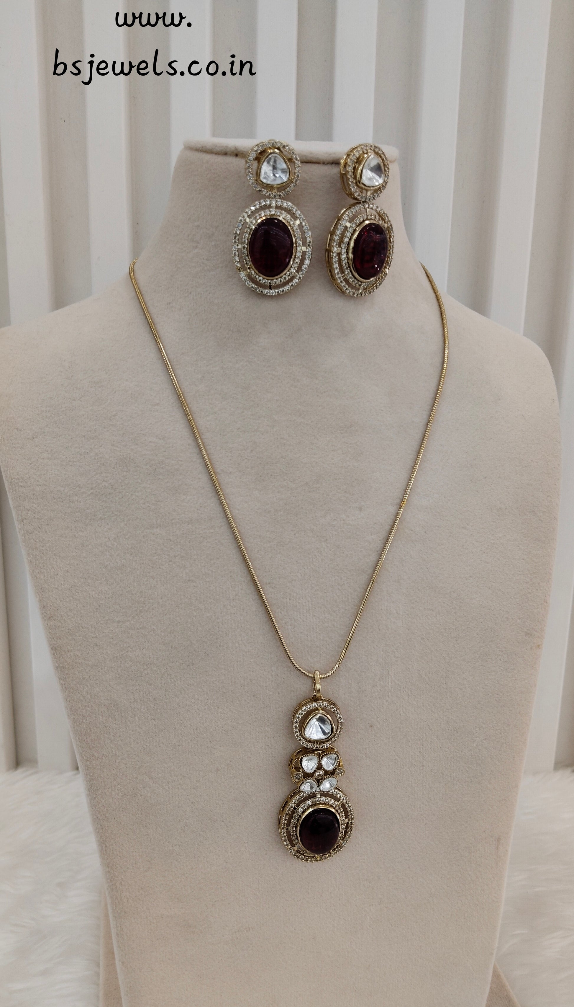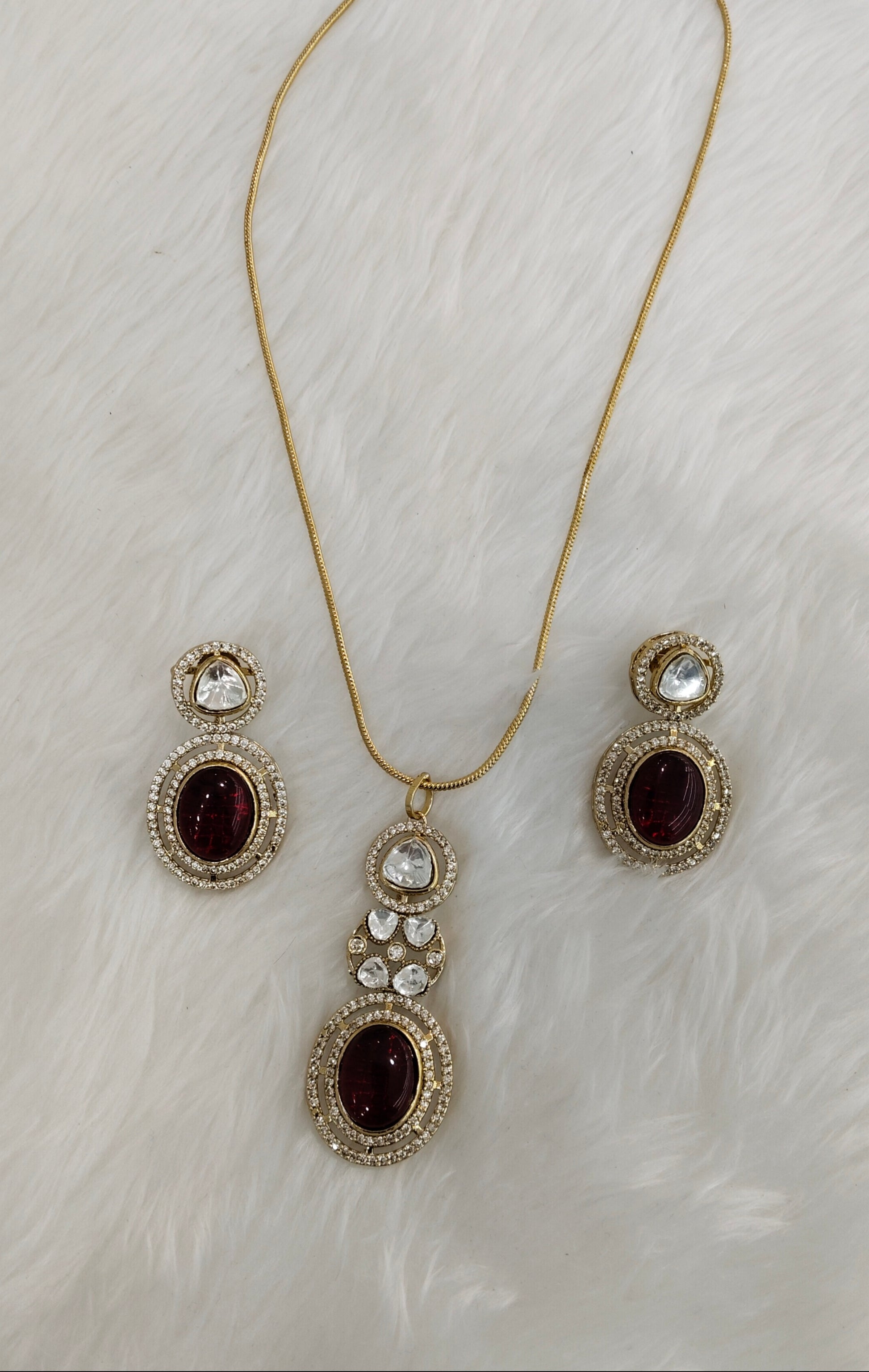 Maroon Gold Moissanite Kundan Necklace Jewellery Solis Chain Set