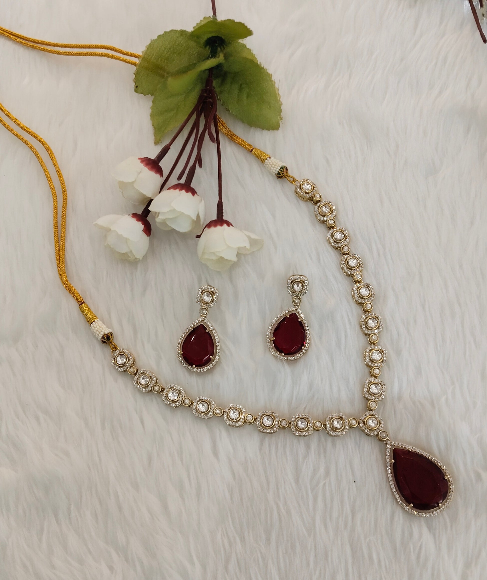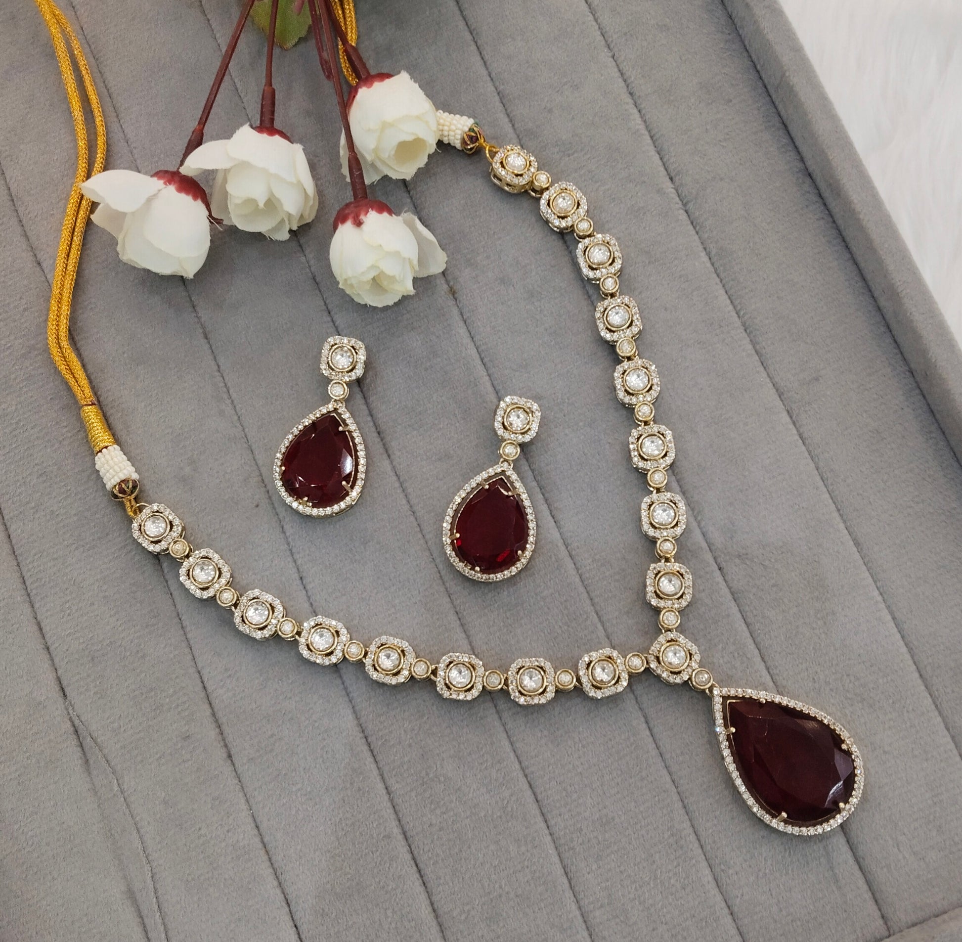 Maroon Gold Moissanite Kundan Necklace Jewellery Sonalika Set