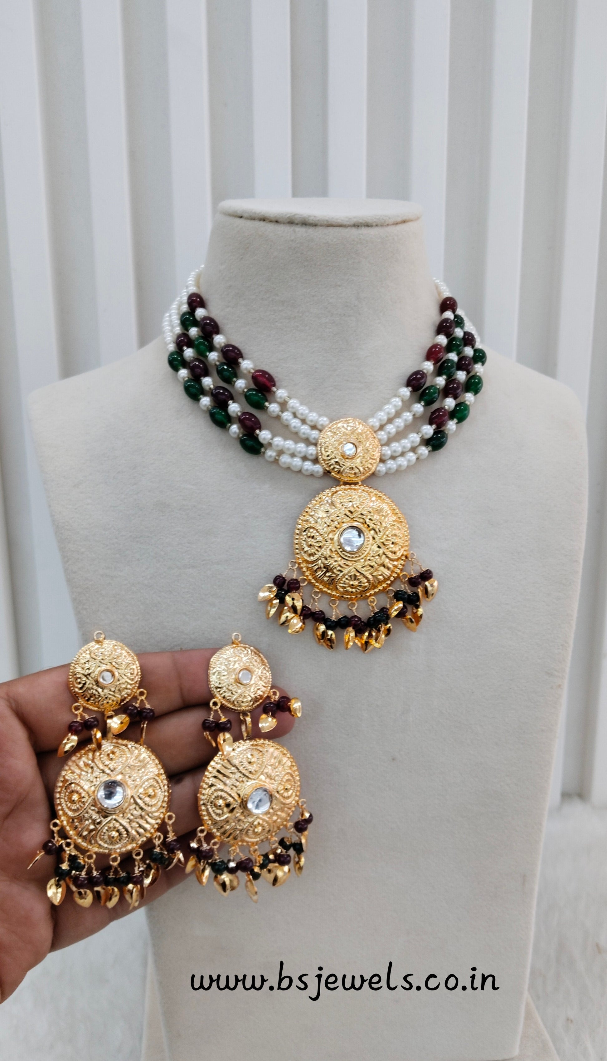 Maroon Green Gold Jadau Punjabi Style Choker Jewellery Worldwide Set