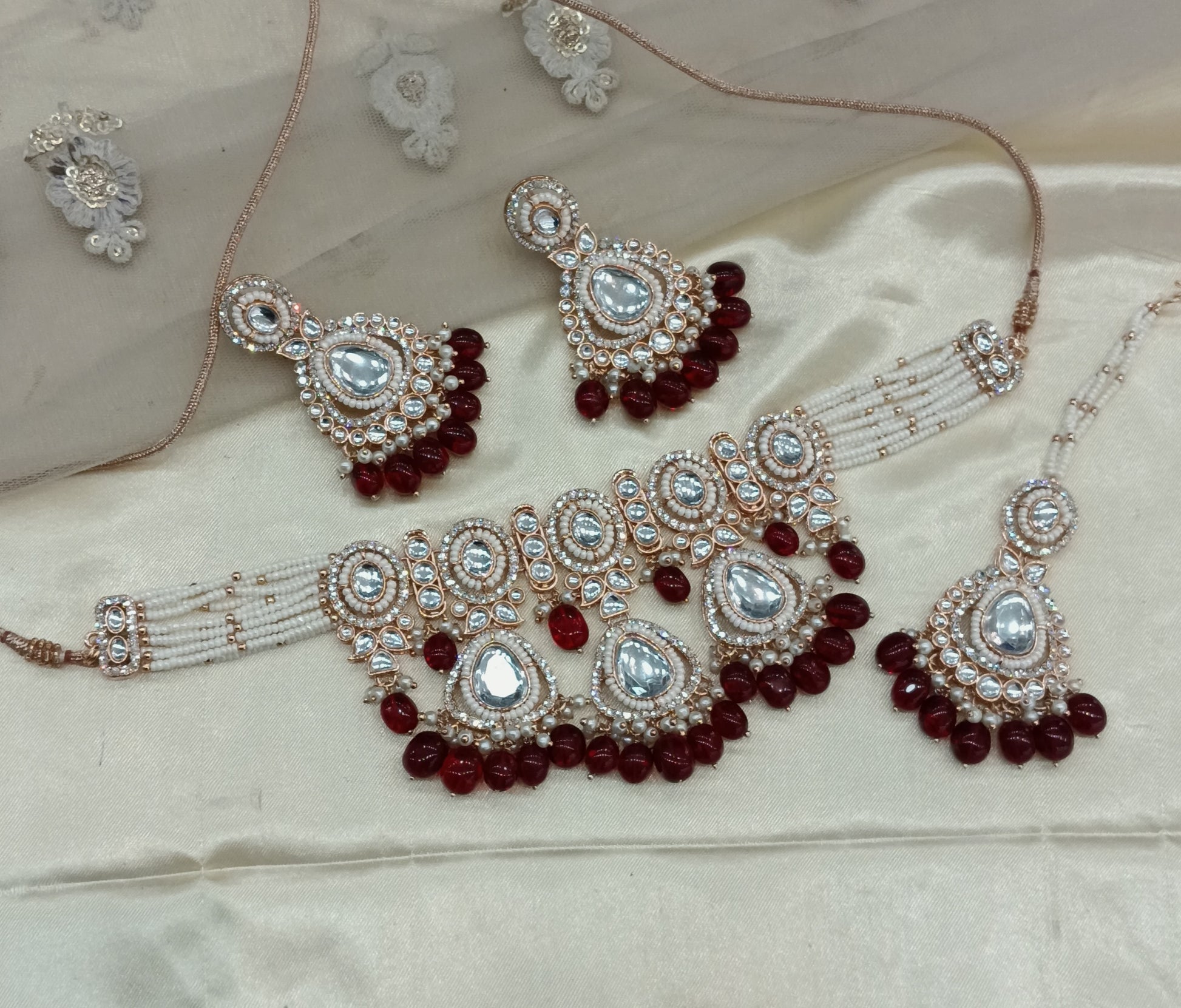 Maroon Kundan 21 Karet Choker Jewellery hudiSet