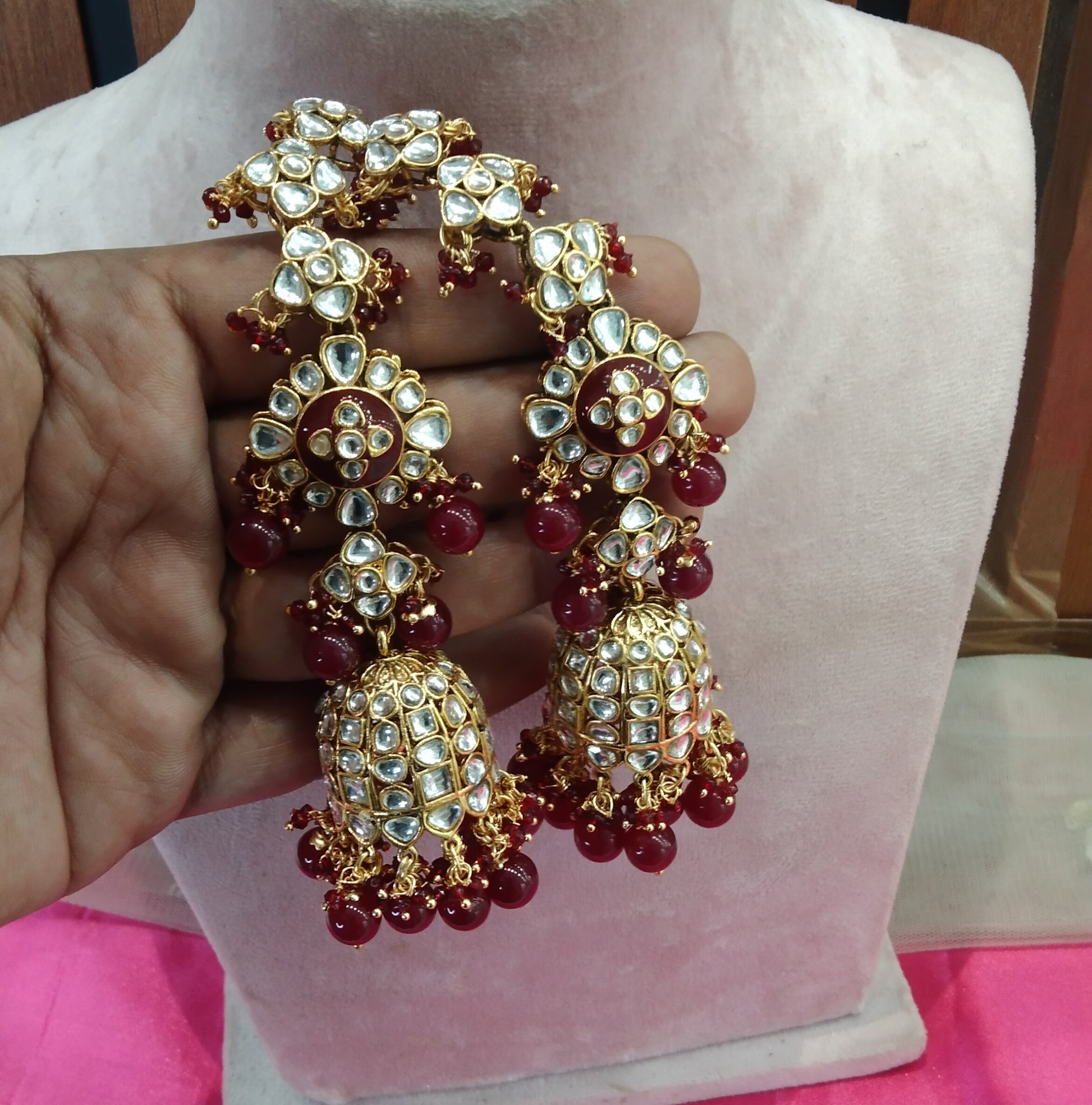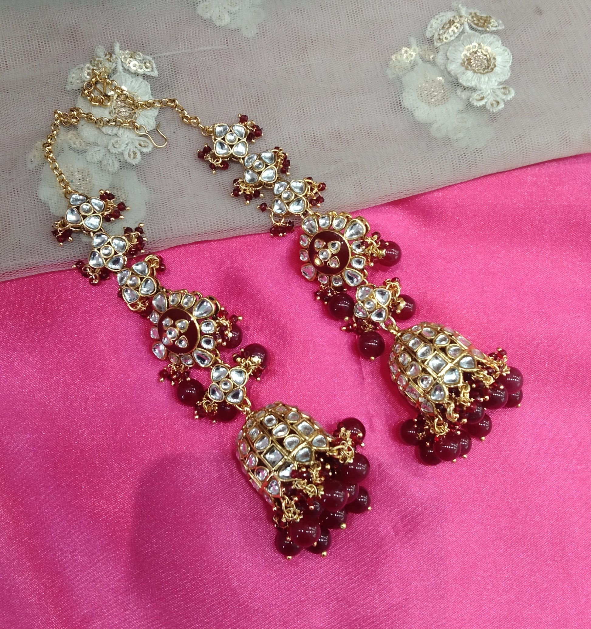 Maroon Kundan Jhumka Header Bollywood Earrings