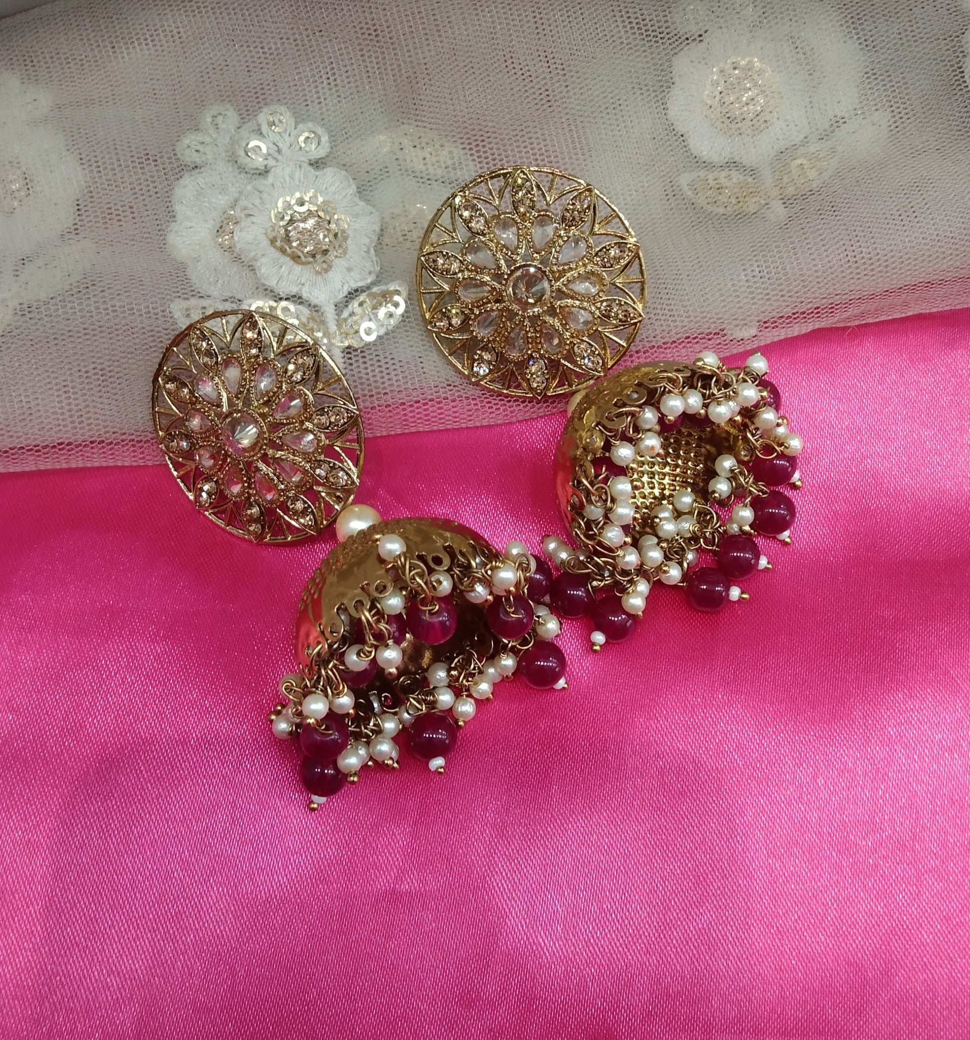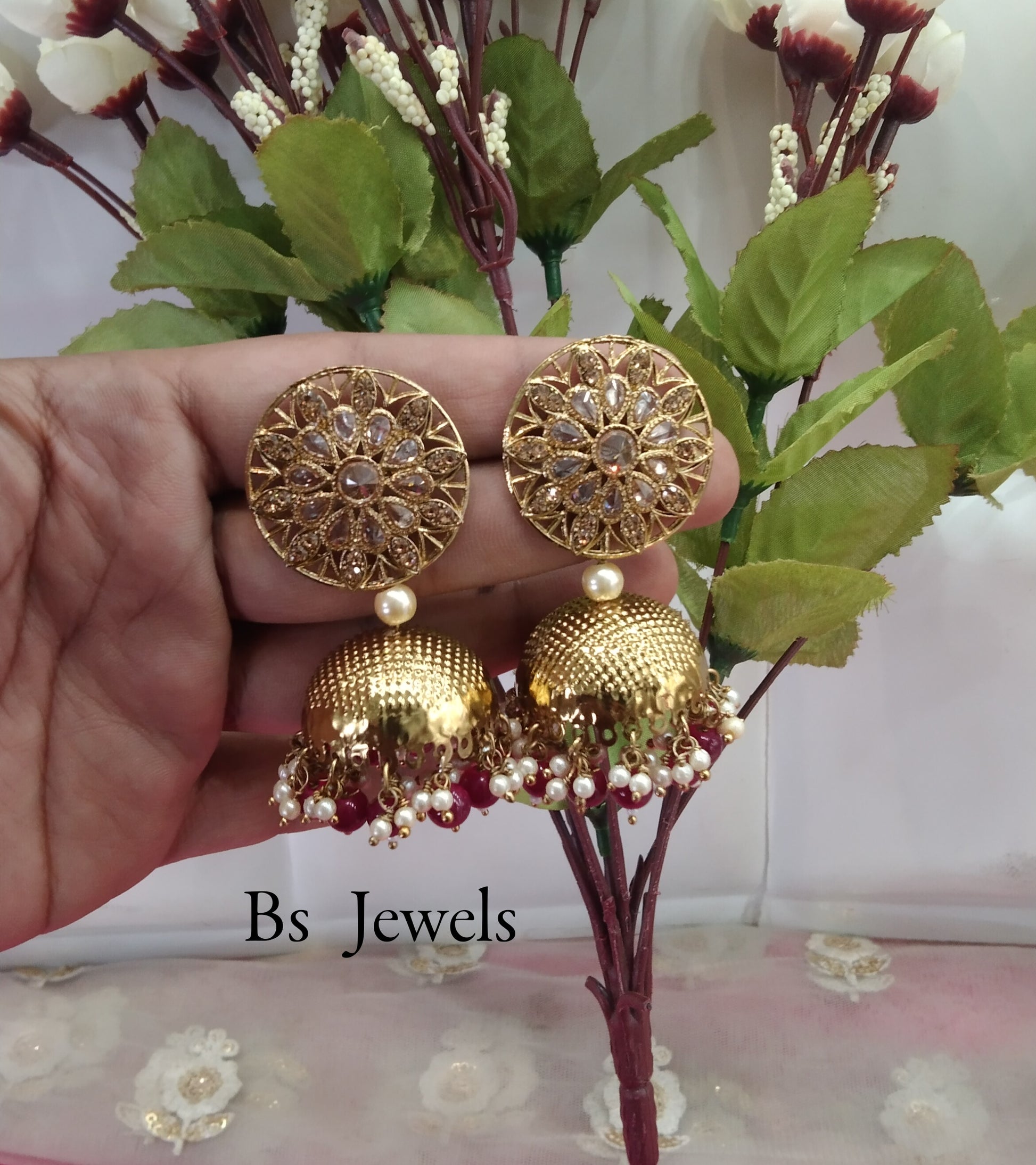 Maroon Kundan Jhumka Sam Bollywood Earrings
