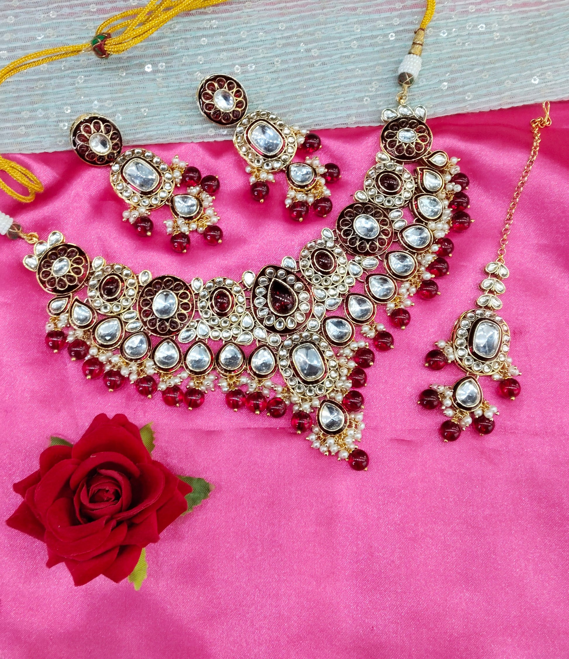 Maroon Meenakari Kundan Necklace Jewellery Aman Set