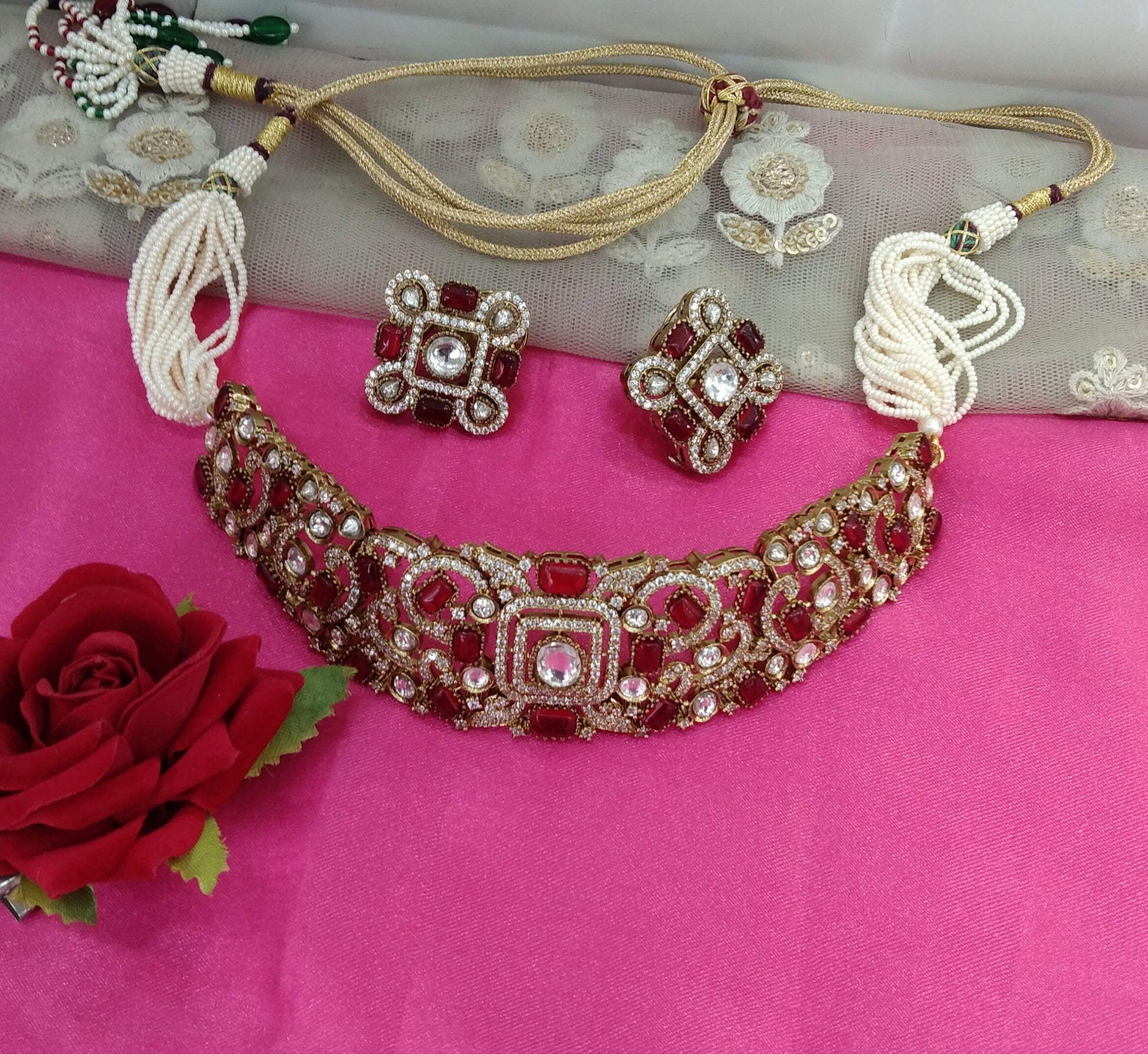 Maroon Moissanite Kundan Choker Jewellery Saniya Set
