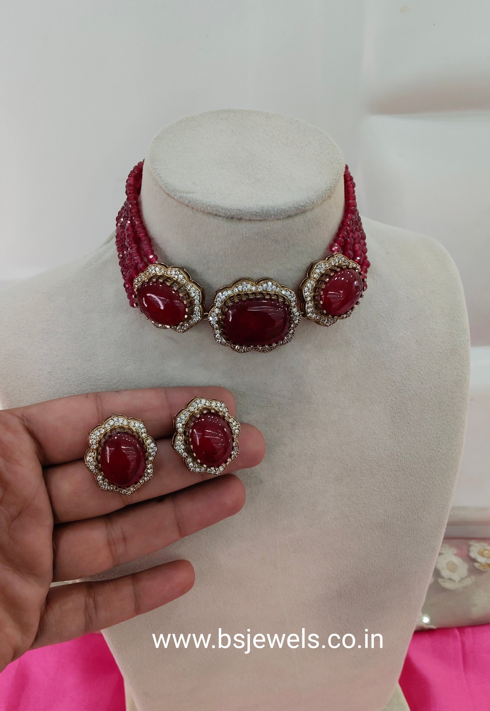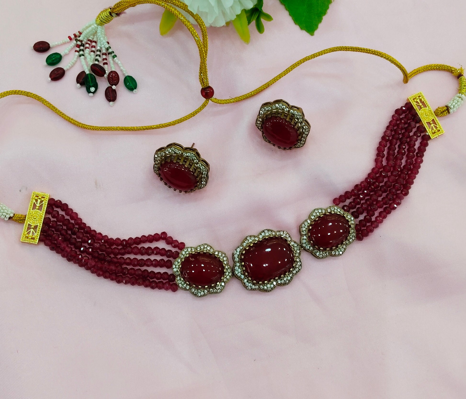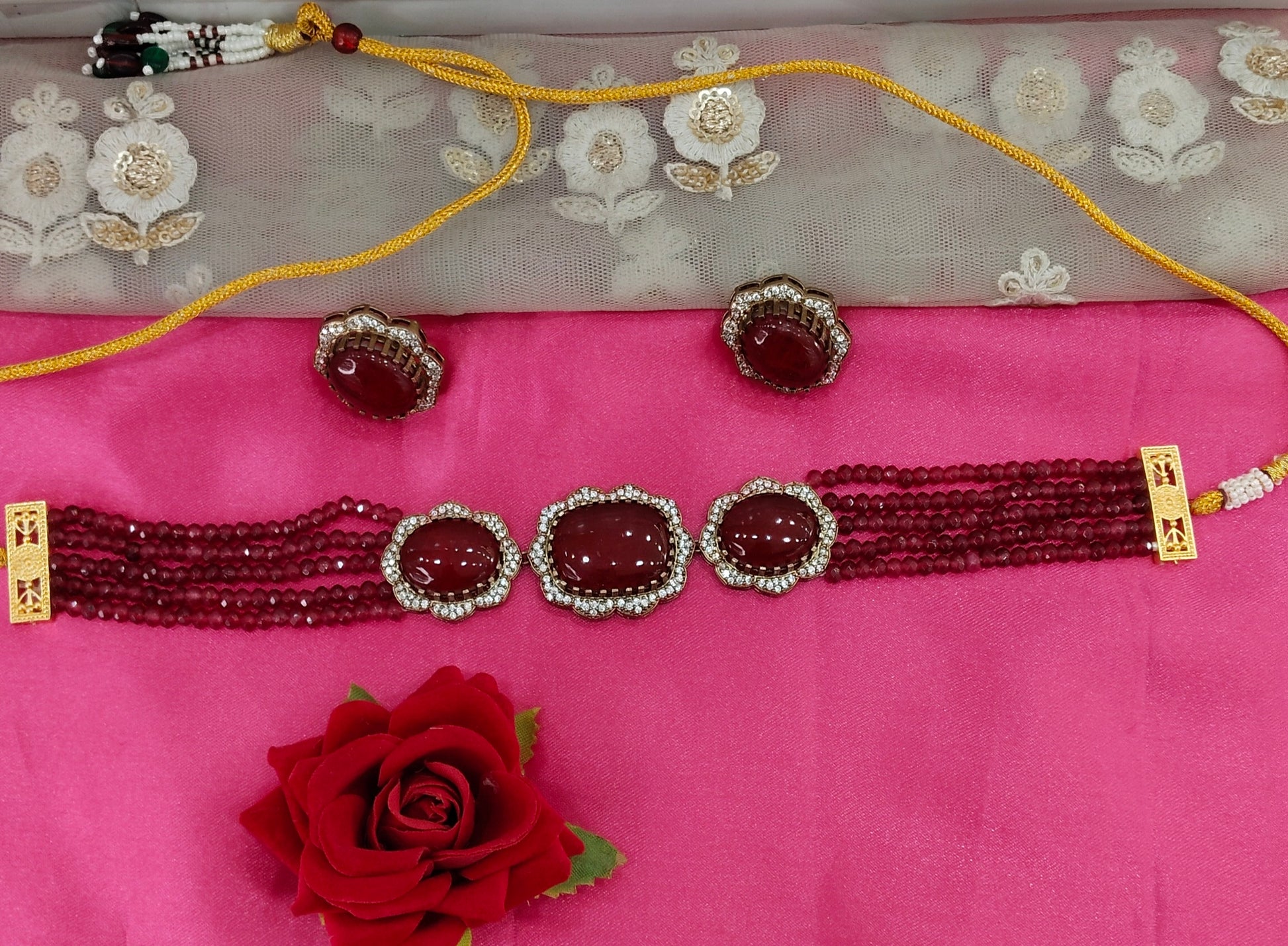 Maroon Moissanite Kundan Choker Jewellery Sunita Set