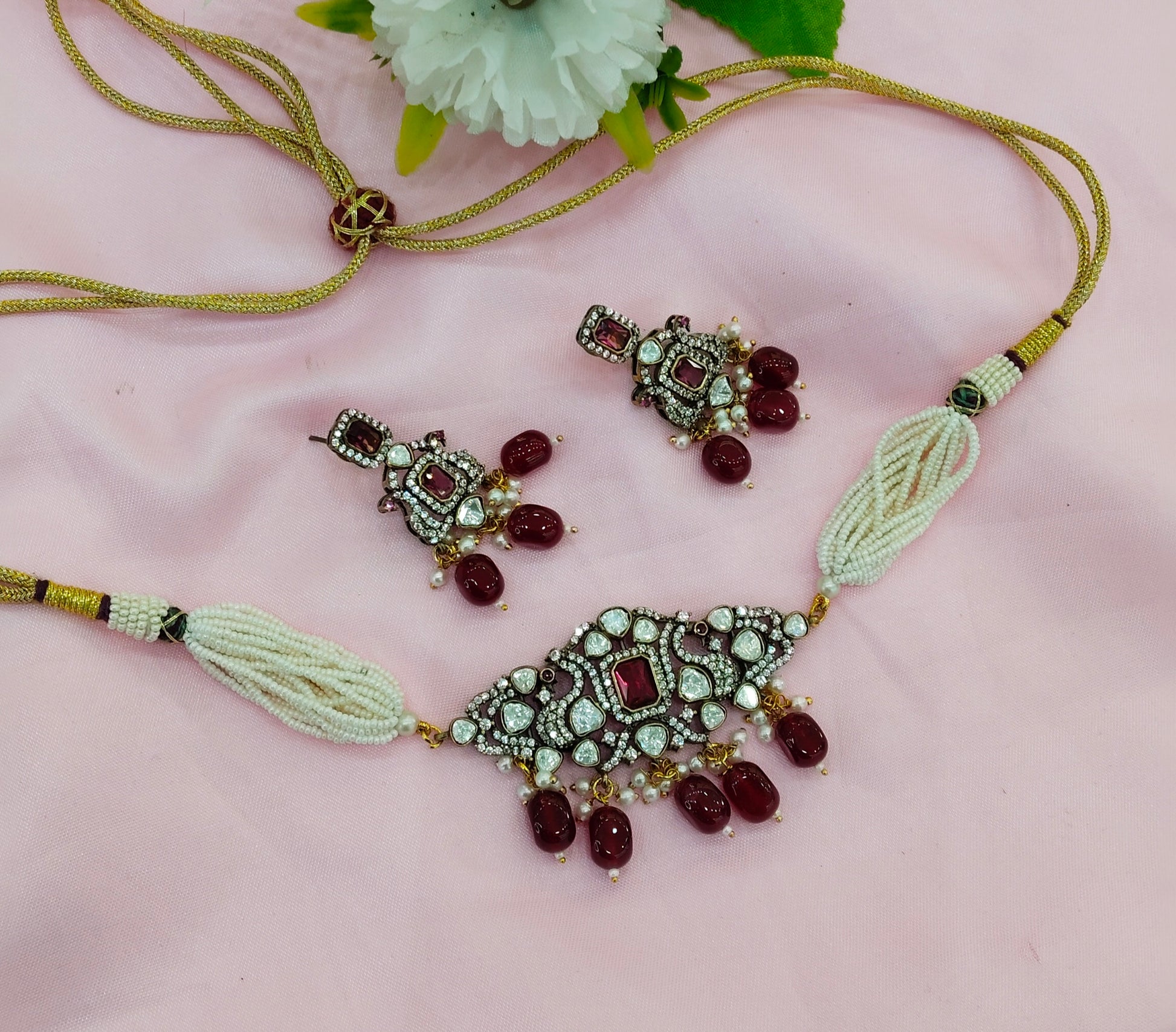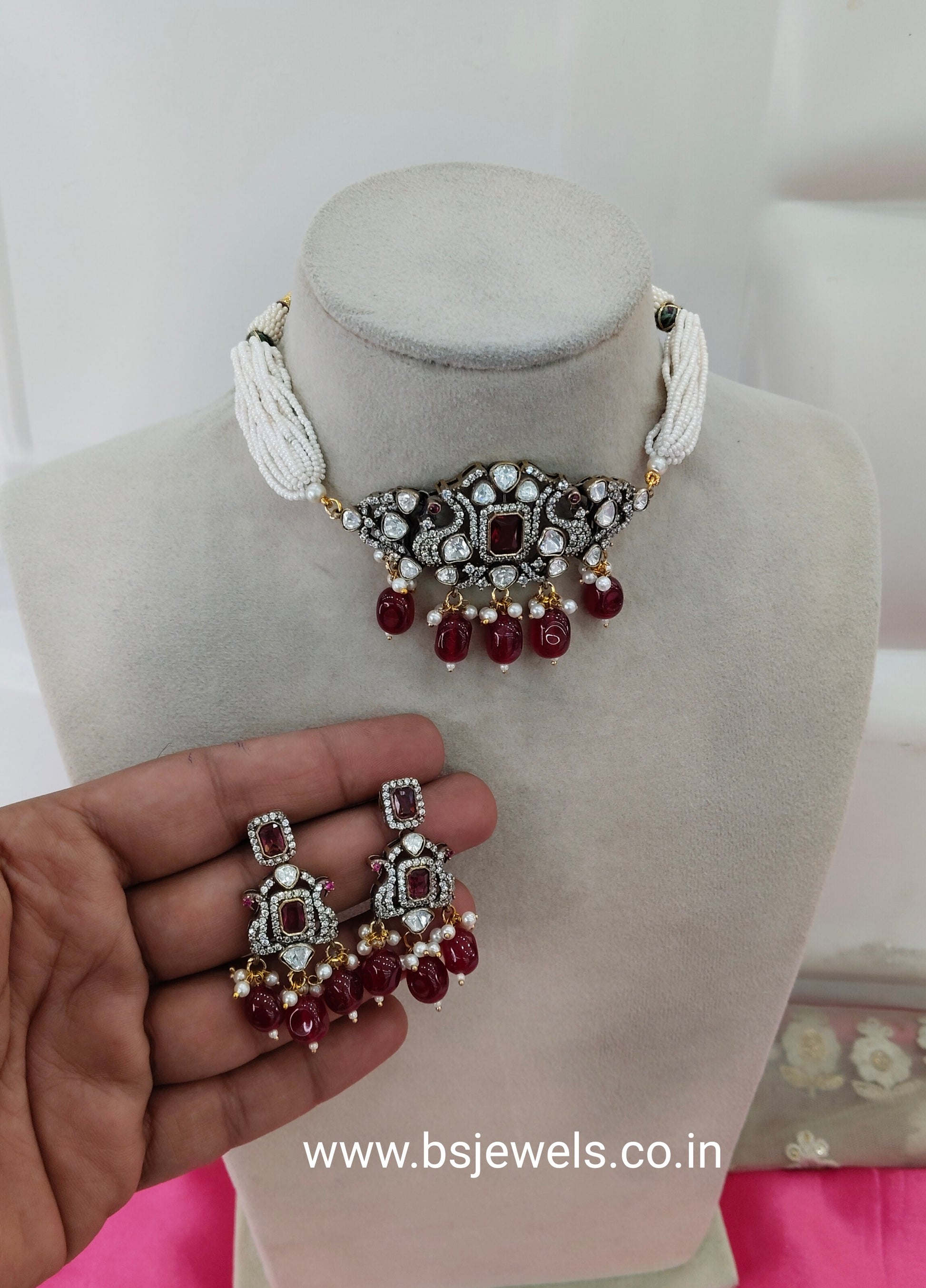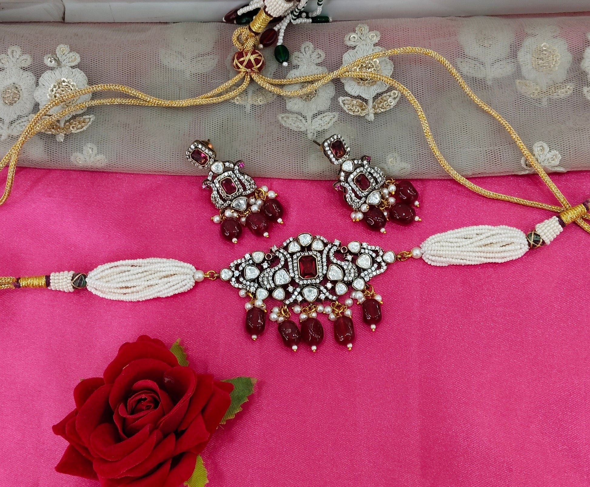 Maroon Moissanite Kundan Choker Jewellery Sunita Set