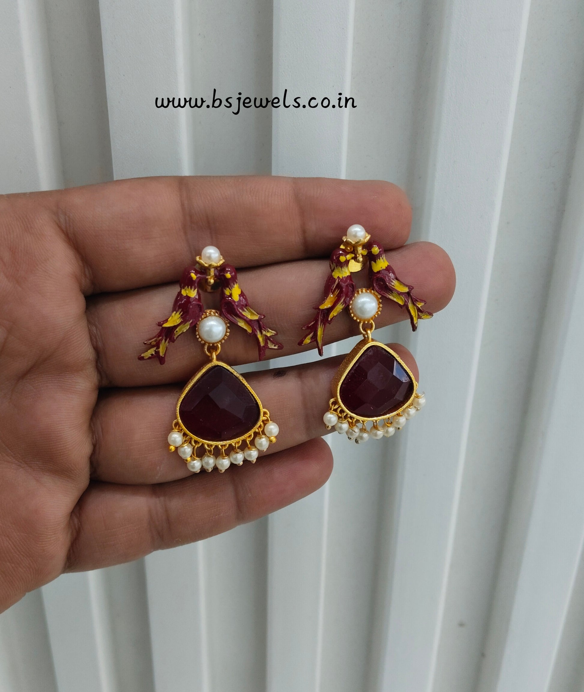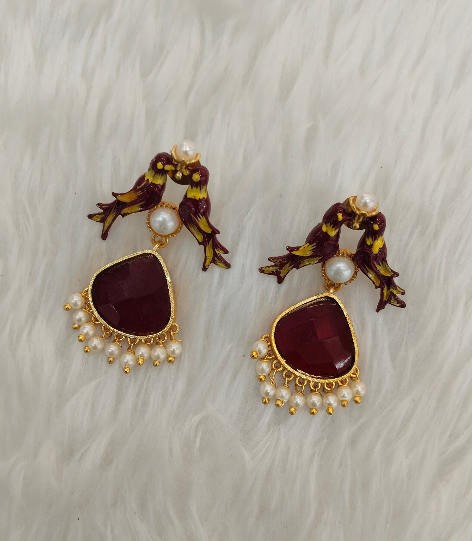 Maroon Mother Of Pearl Bollywood Brass Earrings