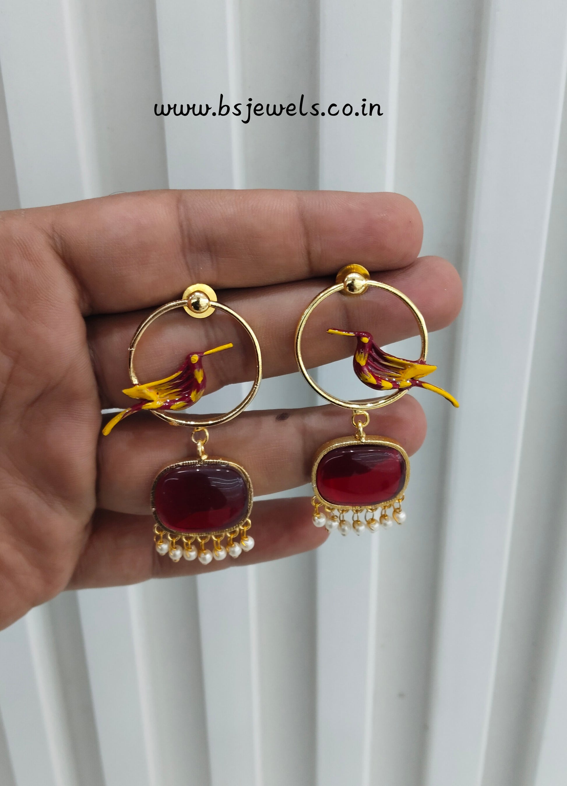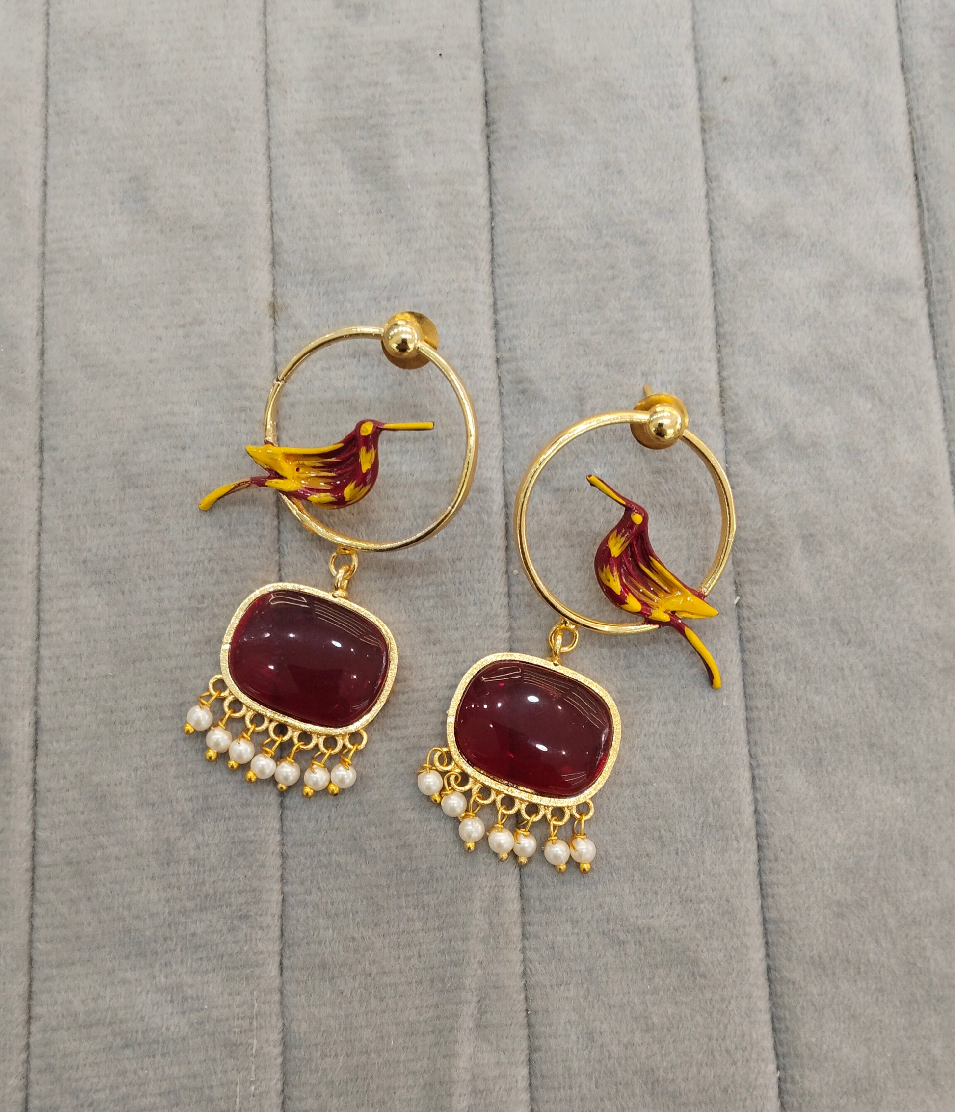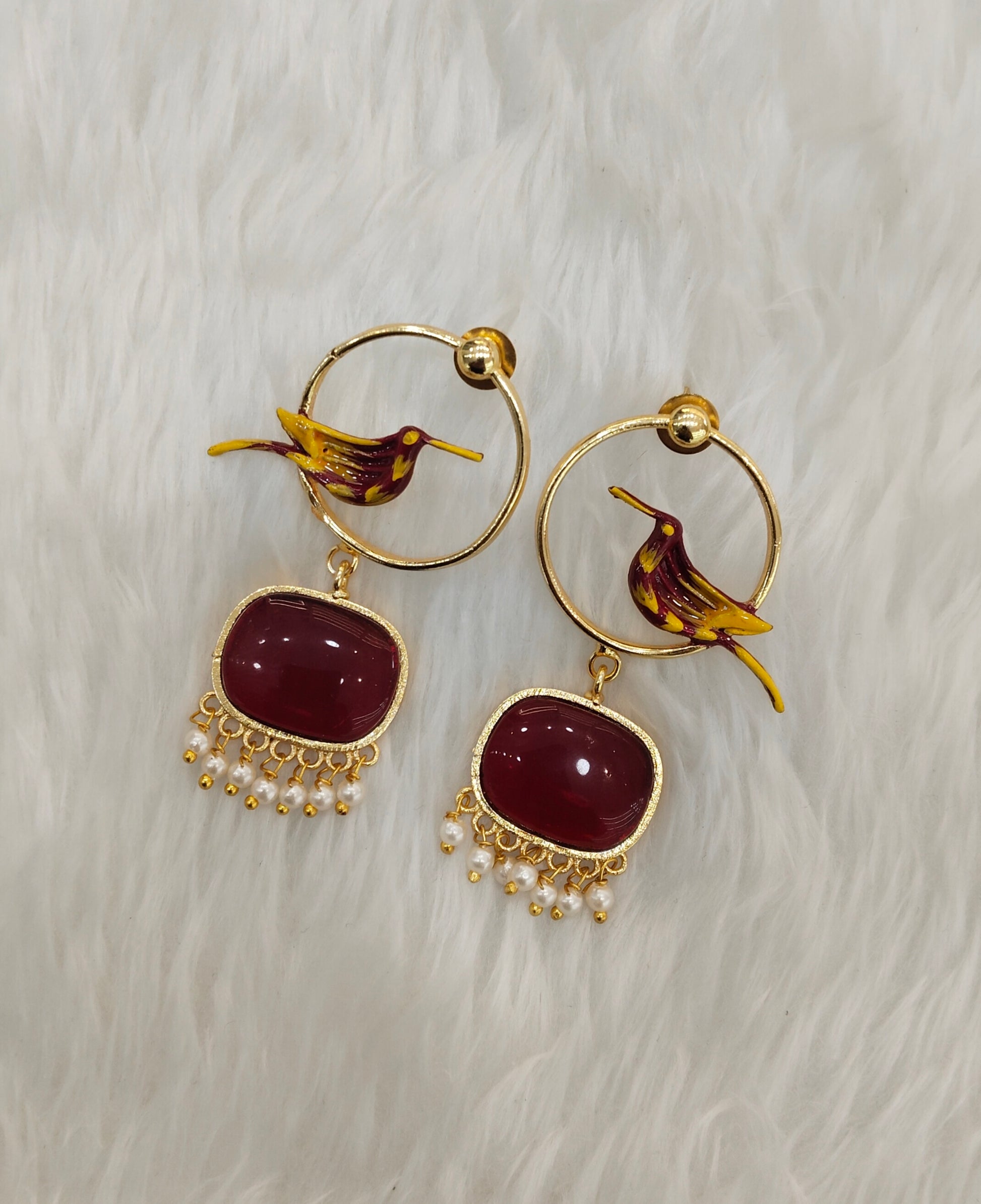 Maroon Mother Of Pearl Bollywood Brass Earrings