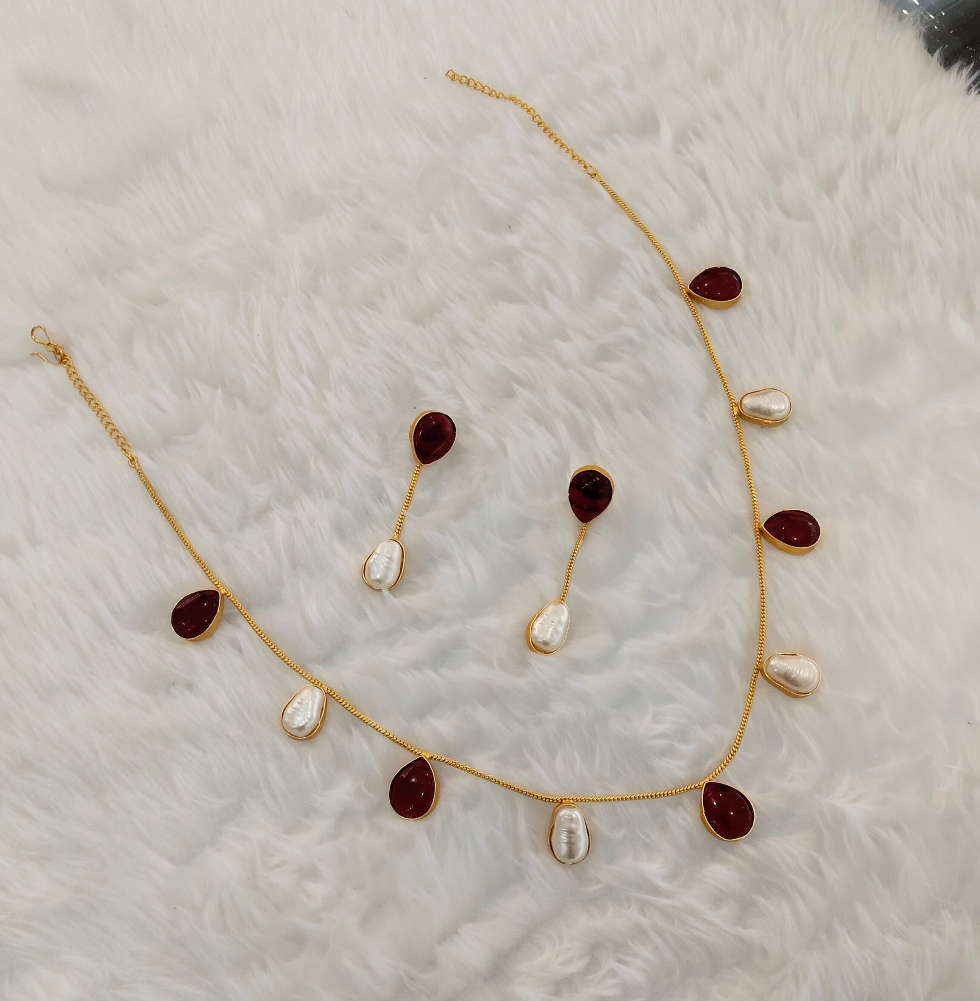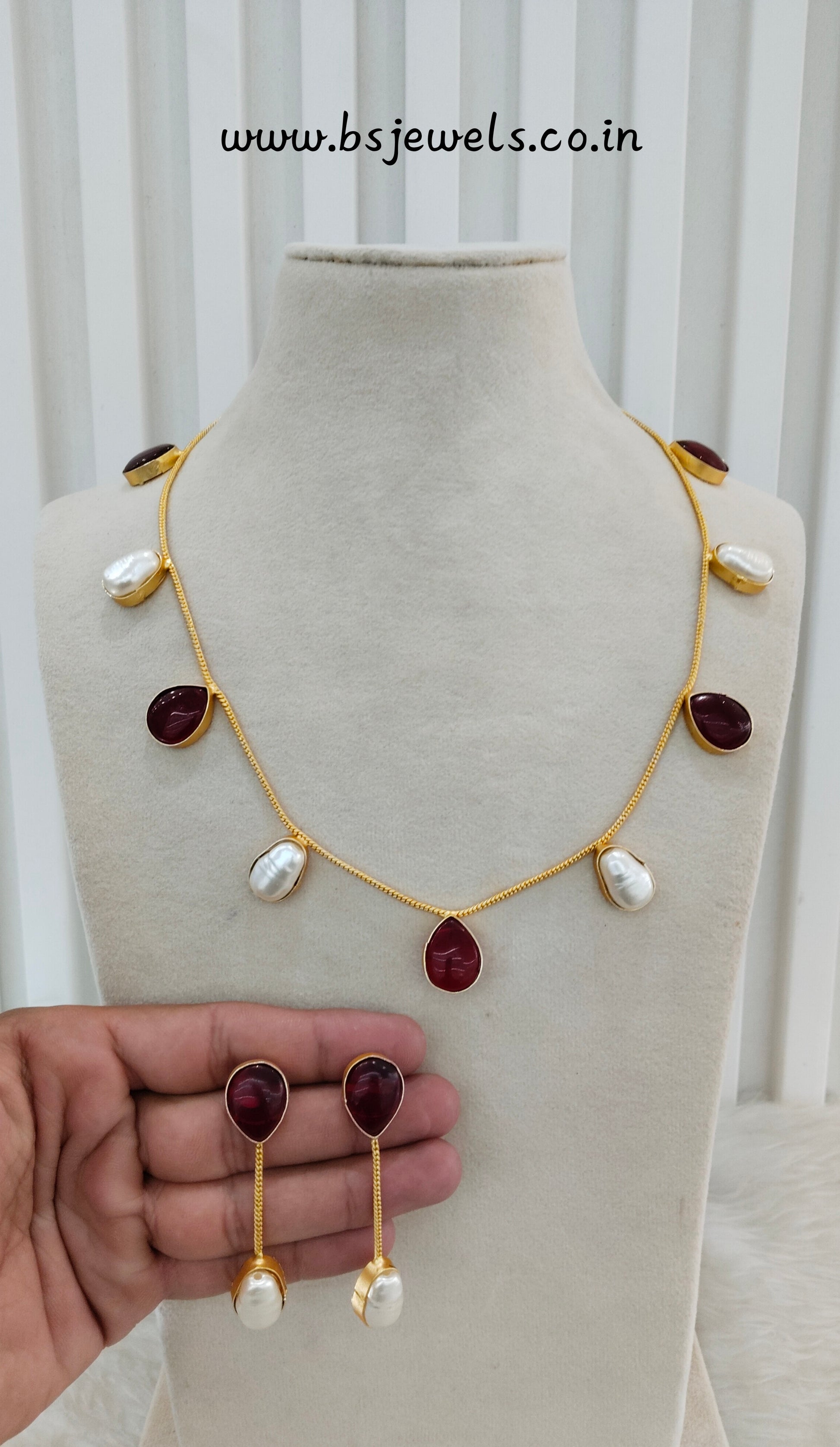 Maroon Mother Of Pearl Stone Necklace Jewellery Sagge Set