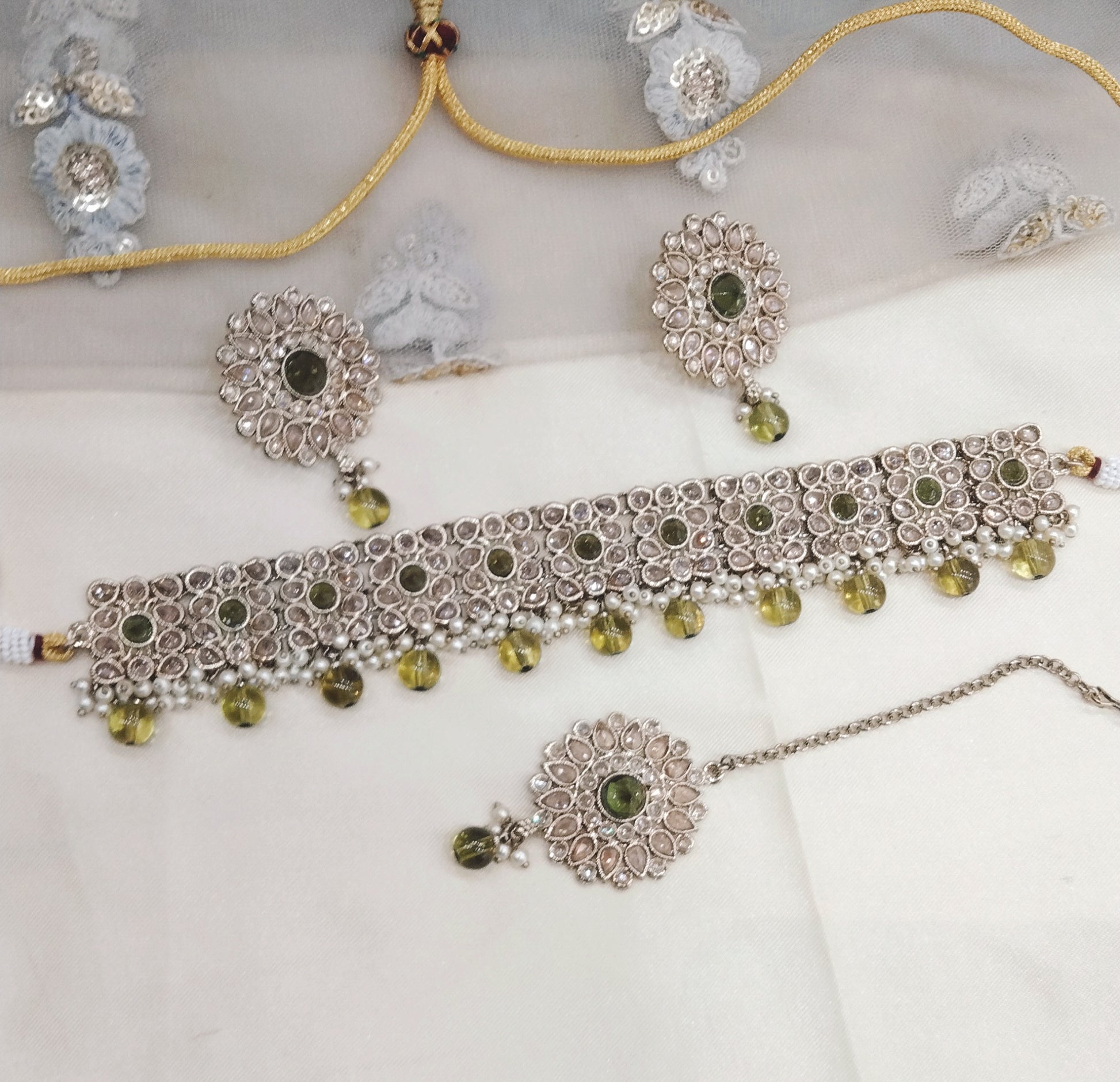 *Choker Width- 1.2 inches(included drops) * Earrings Length: - 2 inches(included drops) *Earrings width- 1.4 inches