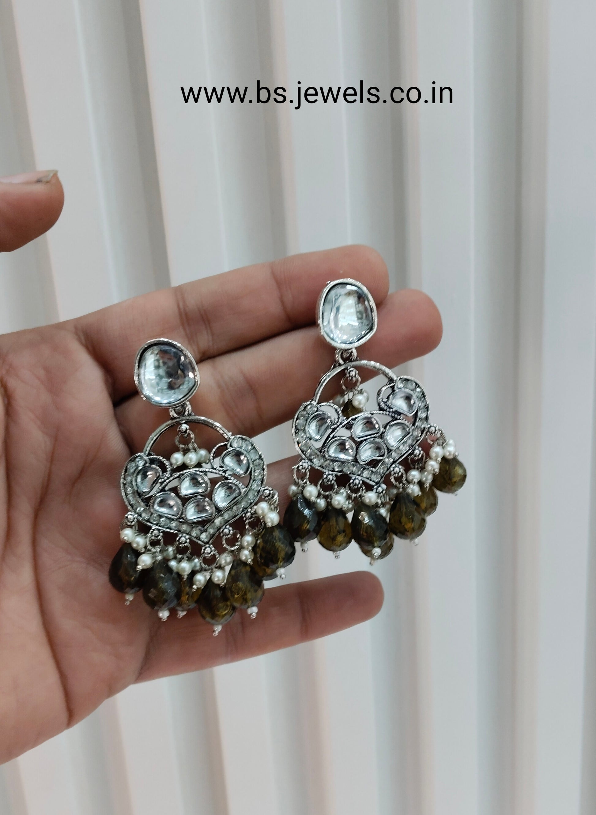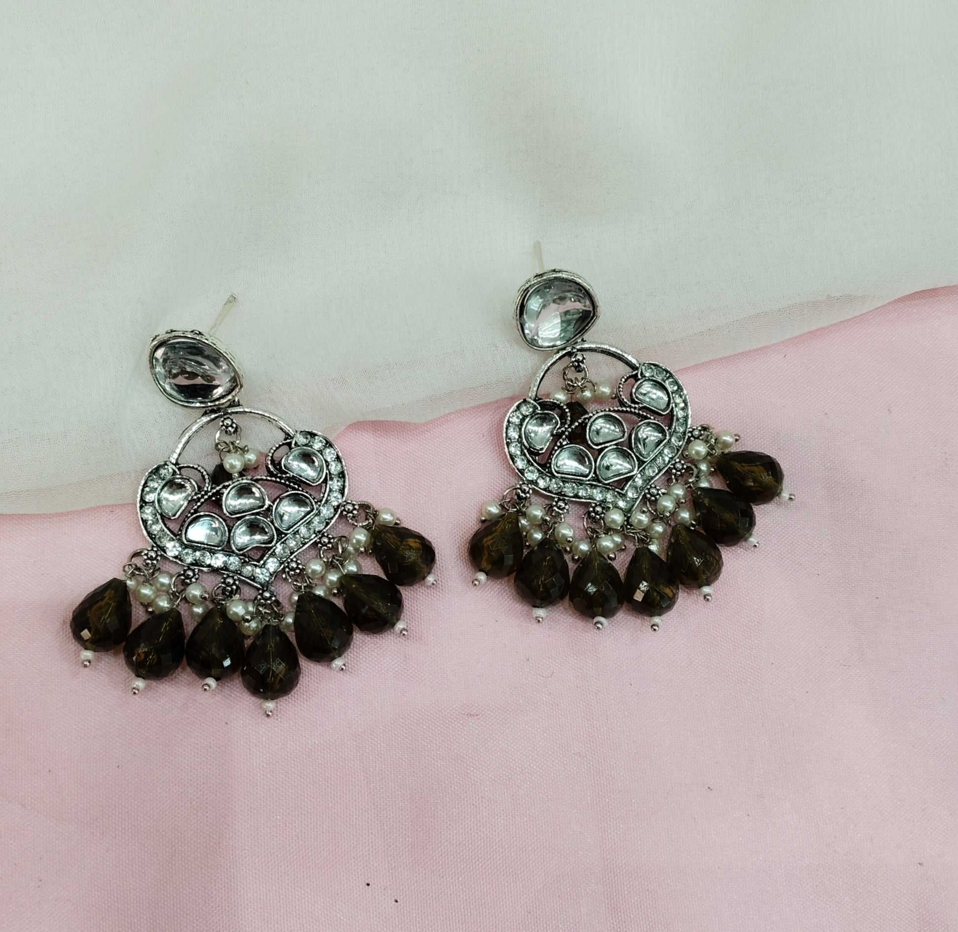 Mehndi Oxidized Metal Pushpa Earrings Set