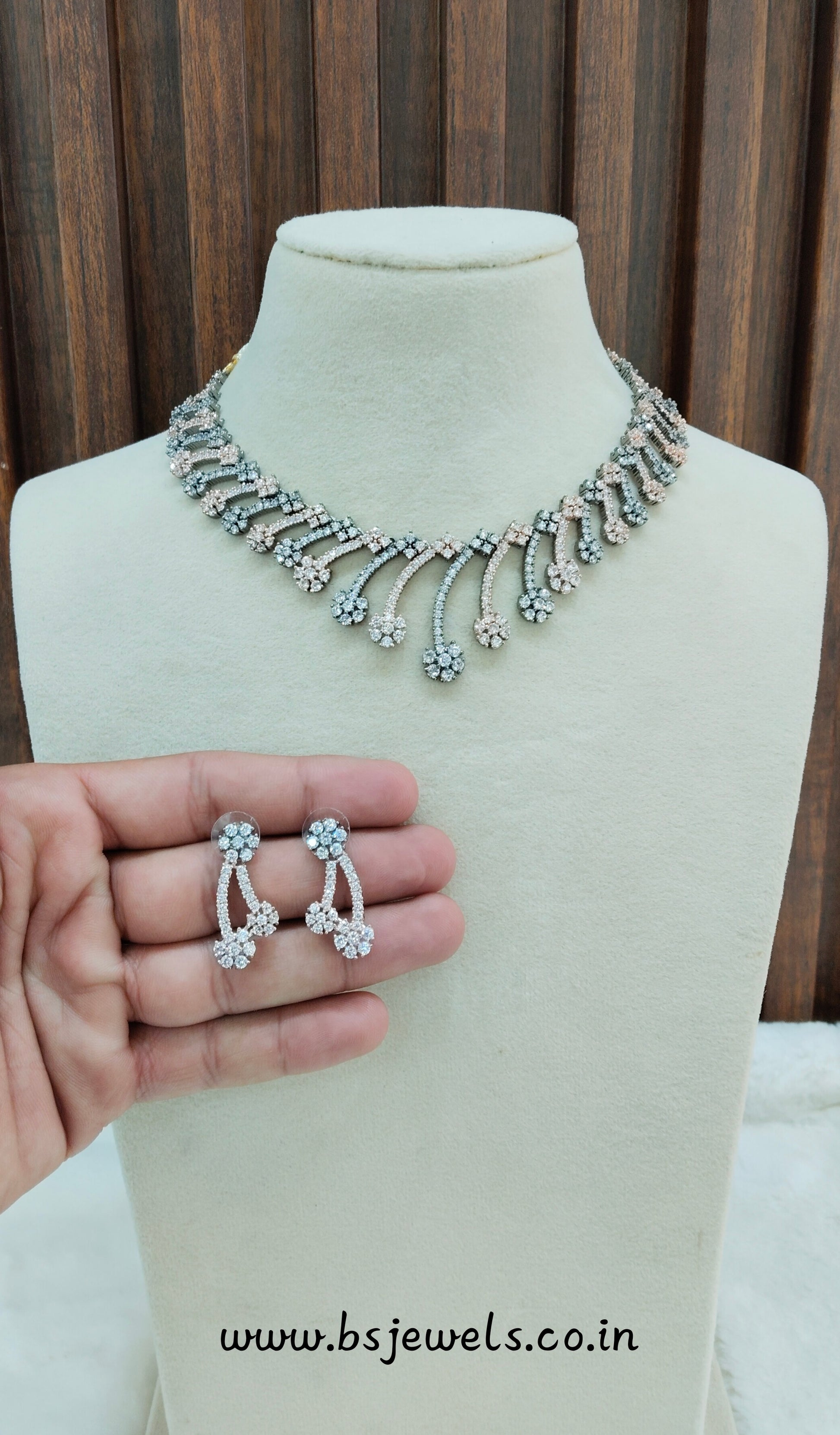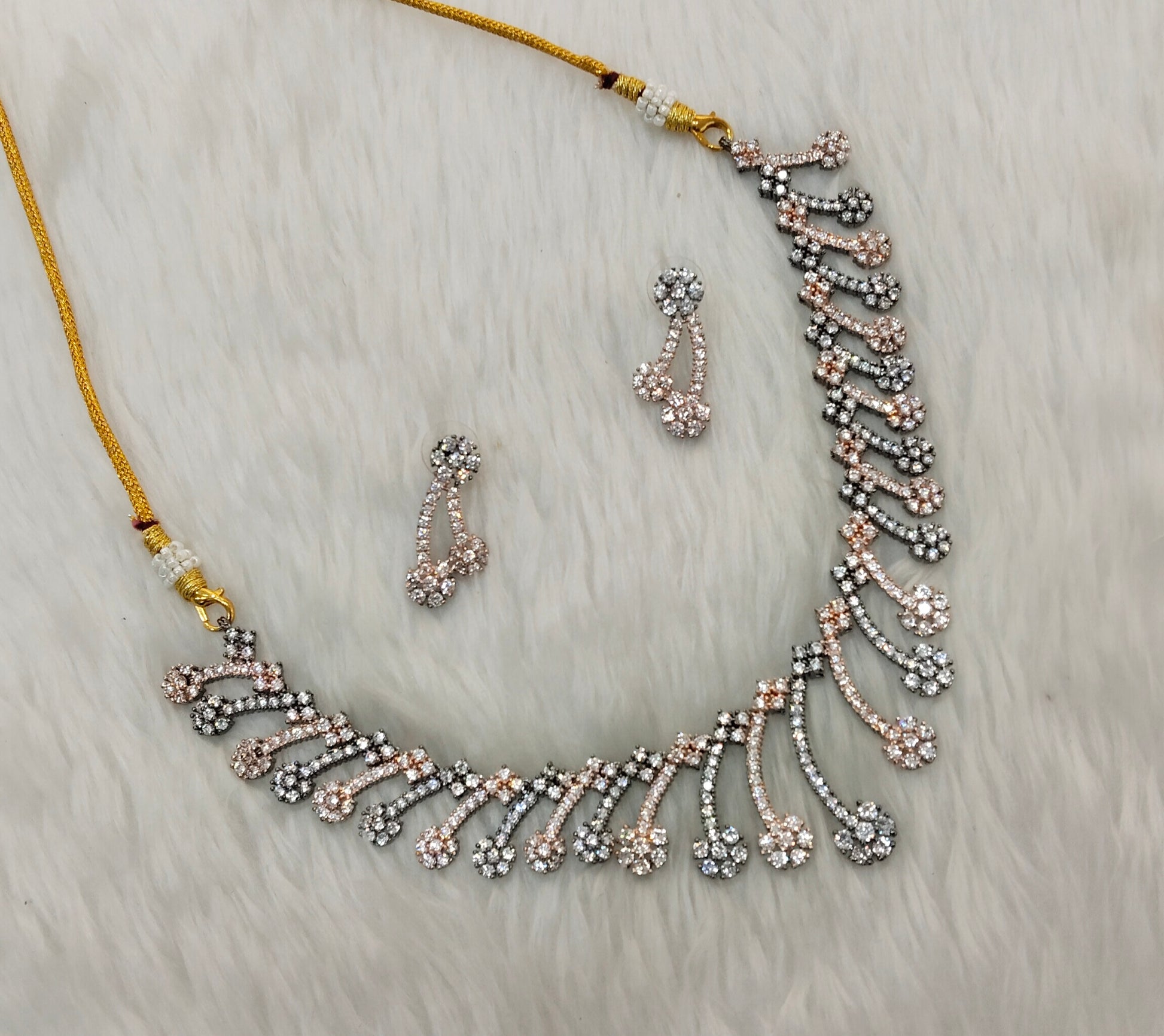 Mettalic Roz CZ Necklace Jewellery Denmark Set