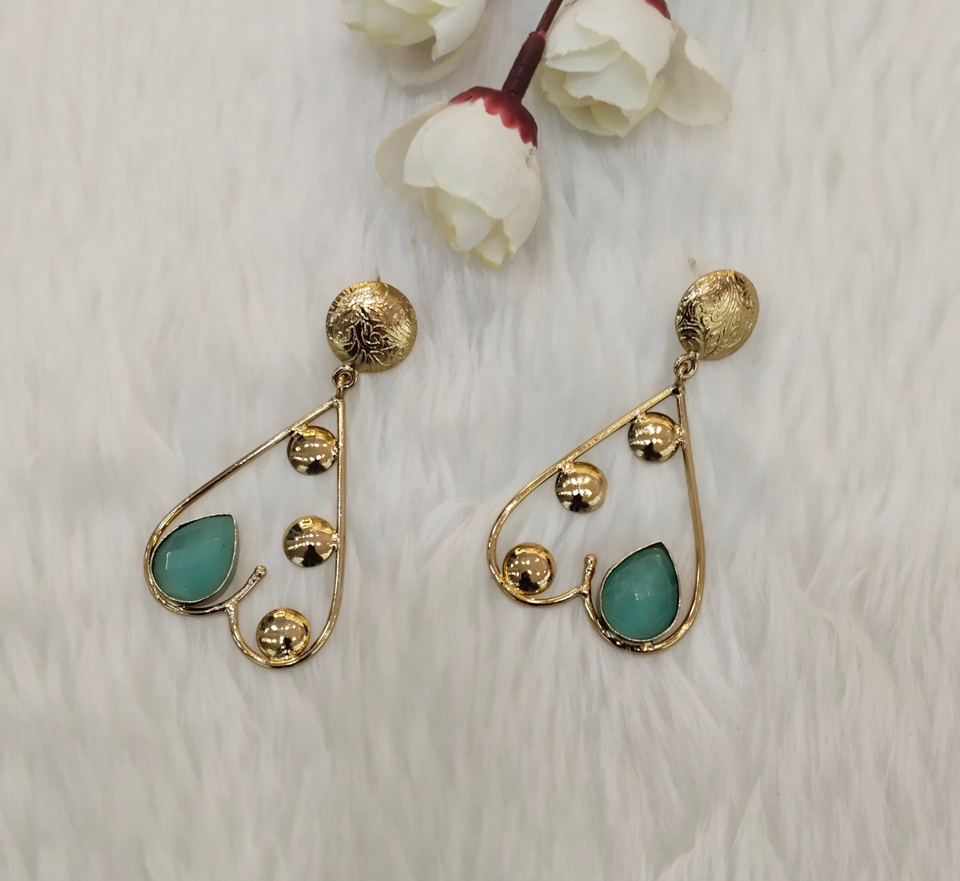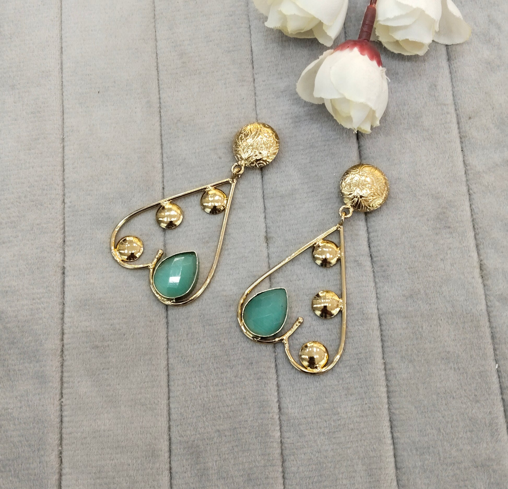 Sea Green Moissanite Kundan Bollywood Jombi Earrings