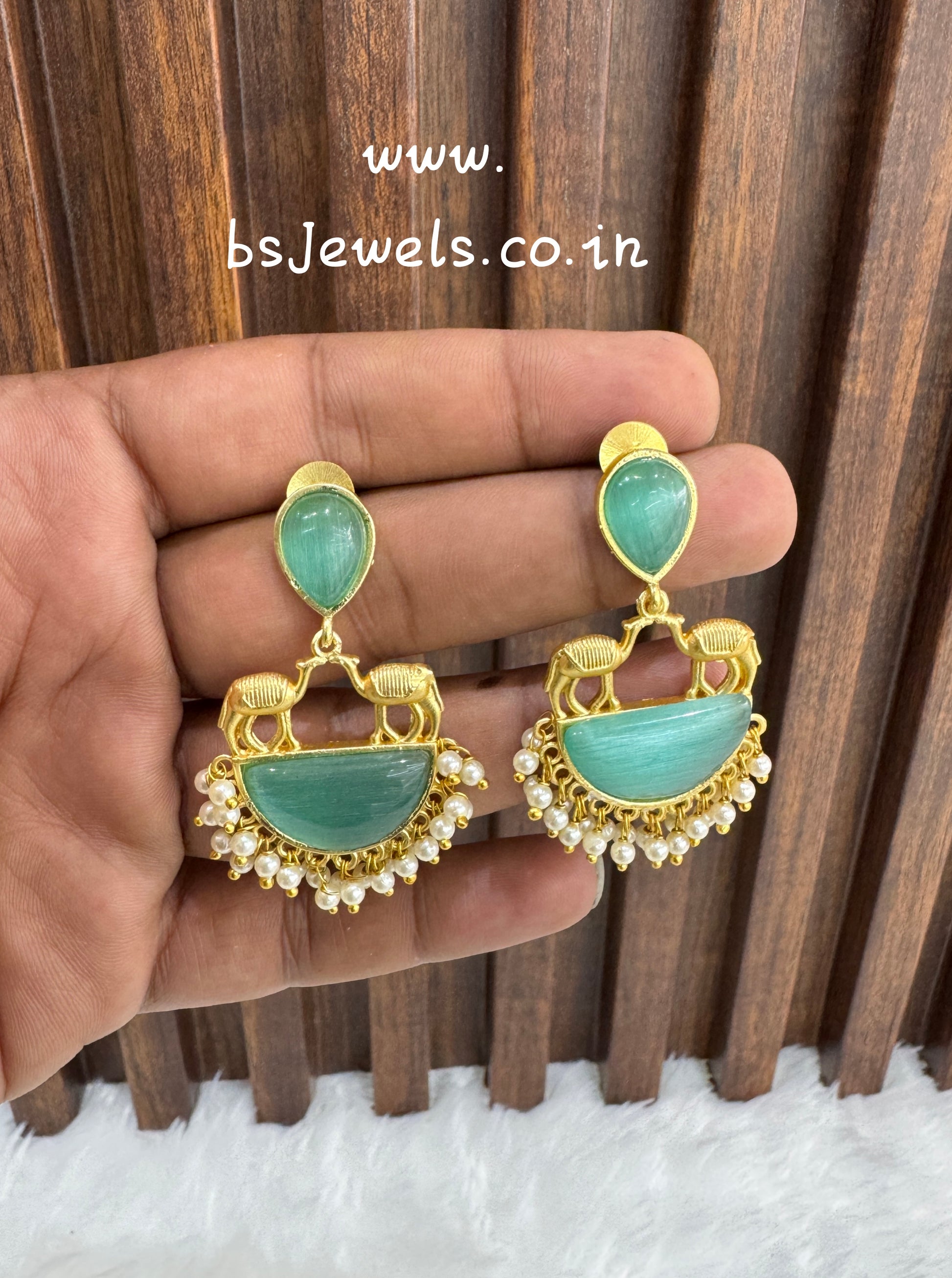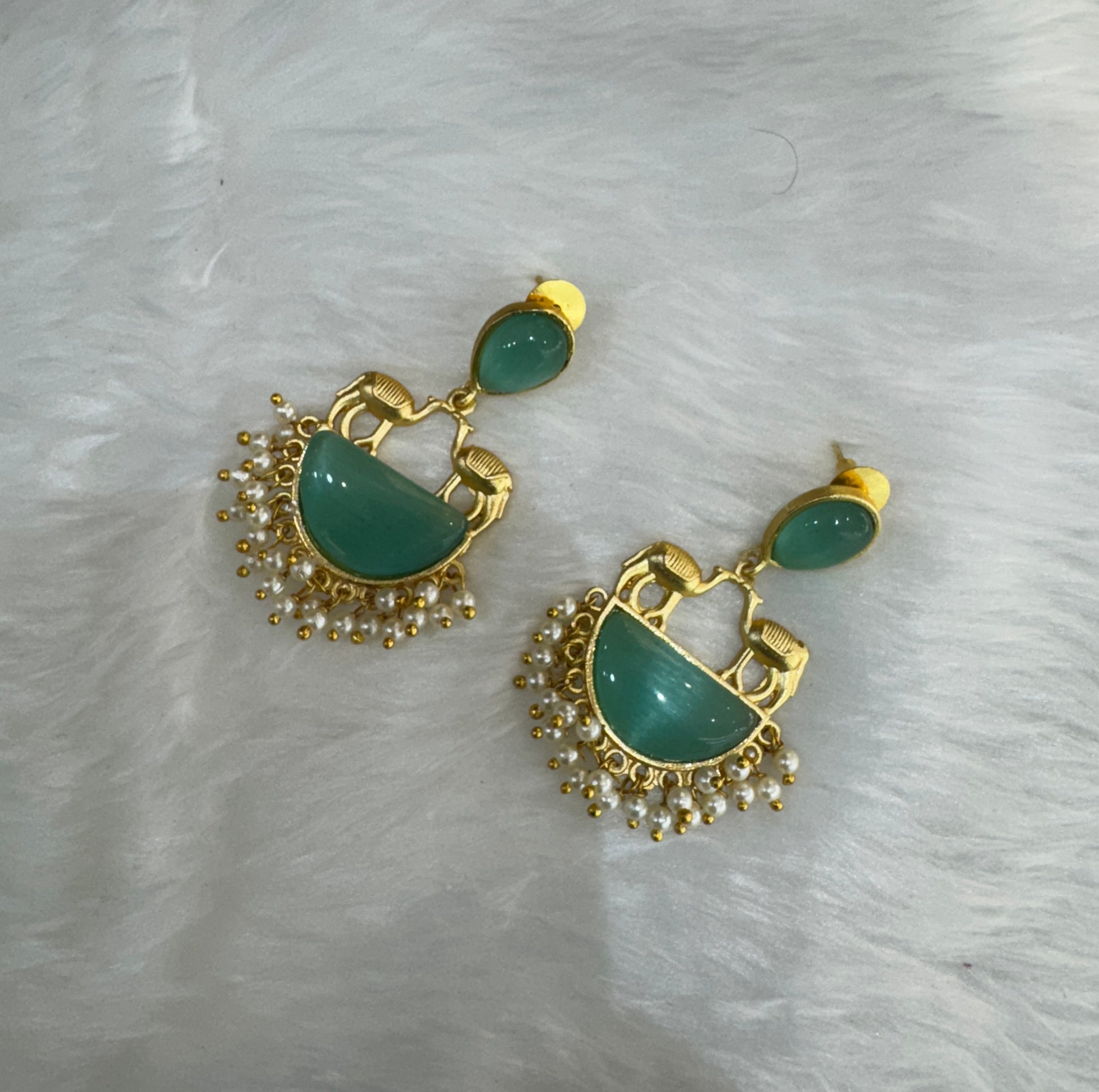 Mint Mother Of Pearl Bollywood Aarna Earrings
