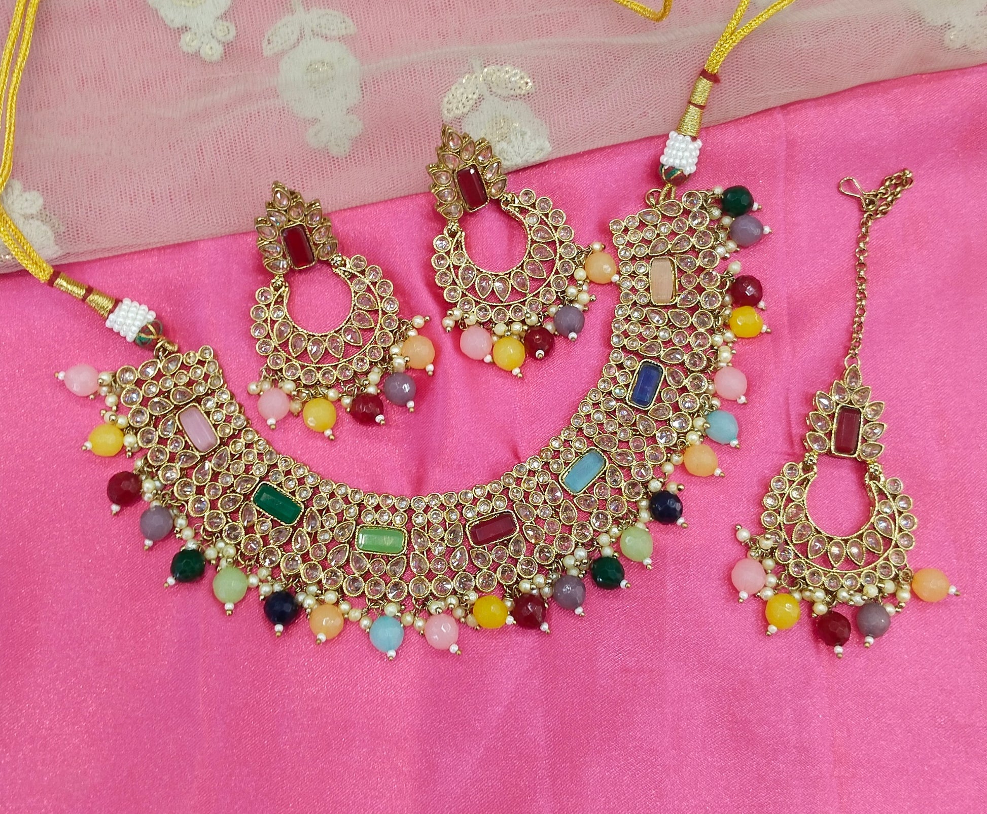 *Necklace set with earrings and tikka.
