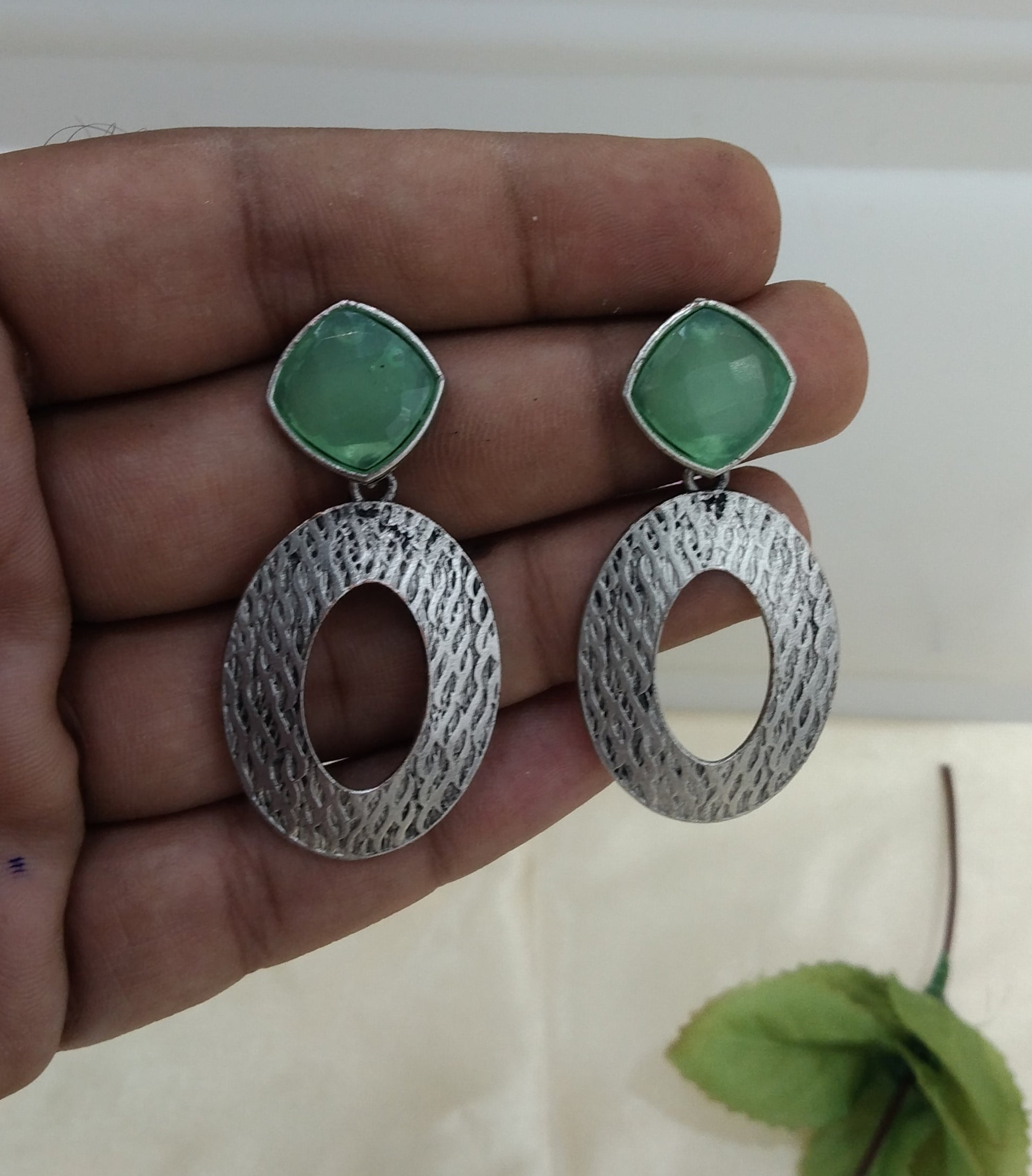 Mint Oxidized Metal Shalu Bollywood Earrings Jewellery