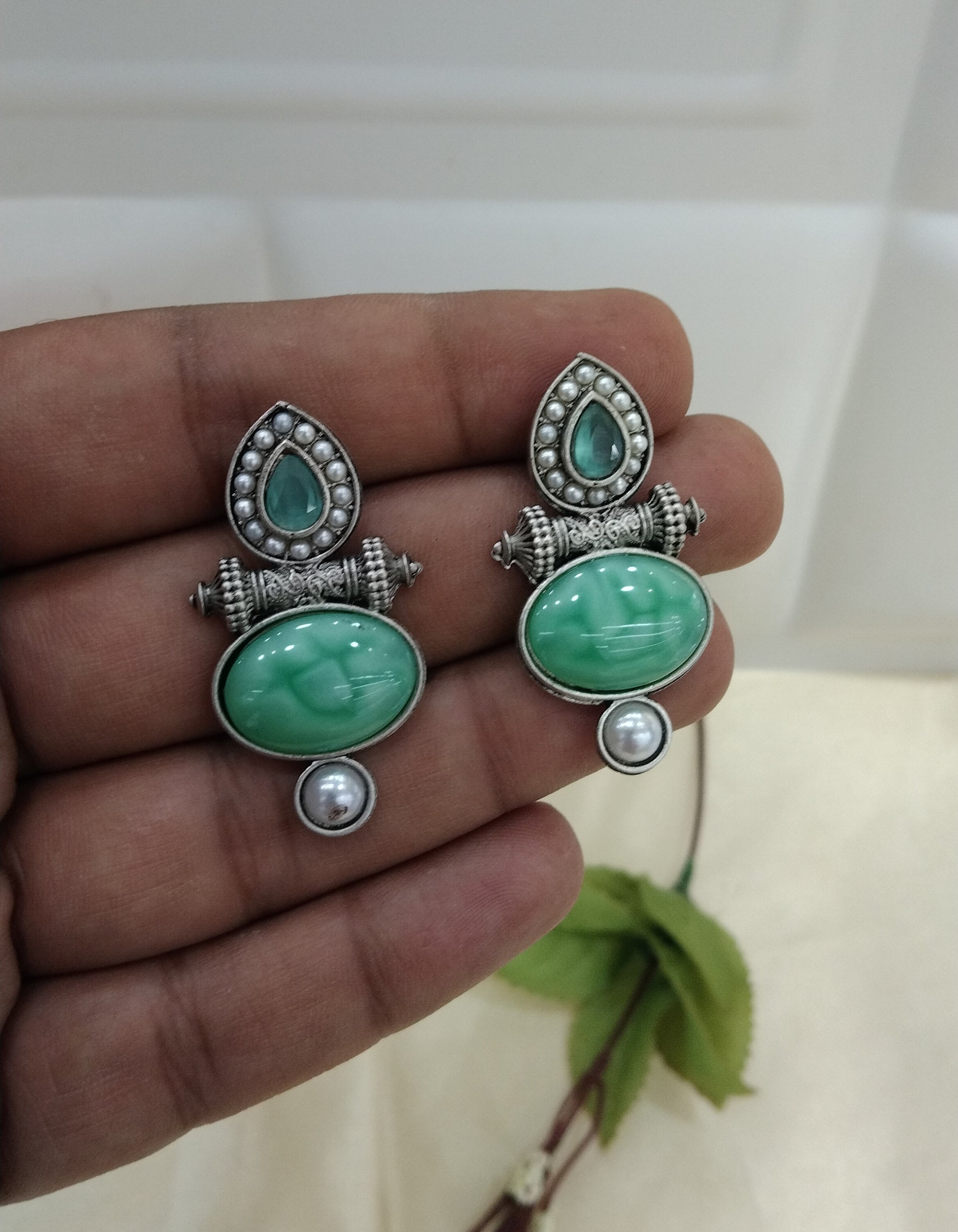 Mint Oxidized Metal Shalu Bollywood Earrings Jewellery