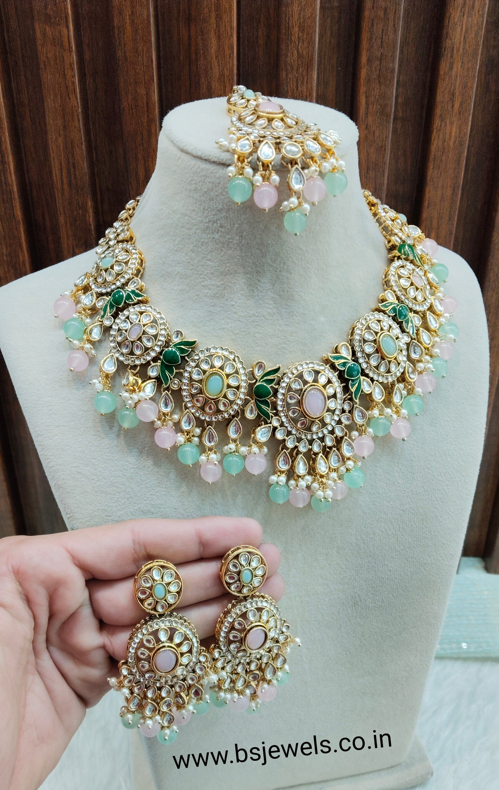 Mint Pink Gold Kundan Necklace Jewellery Charvi Set