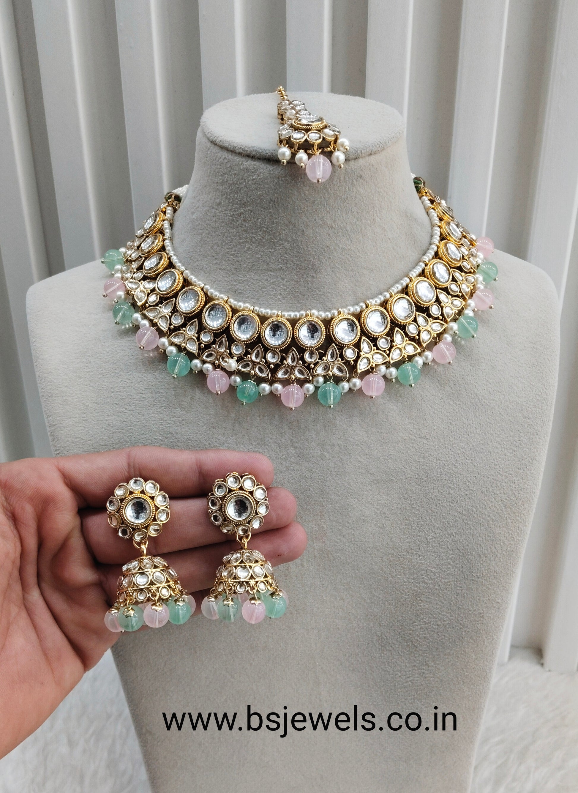 Mint Pink Gold Kundan Necklace Jewellery Ricky Set