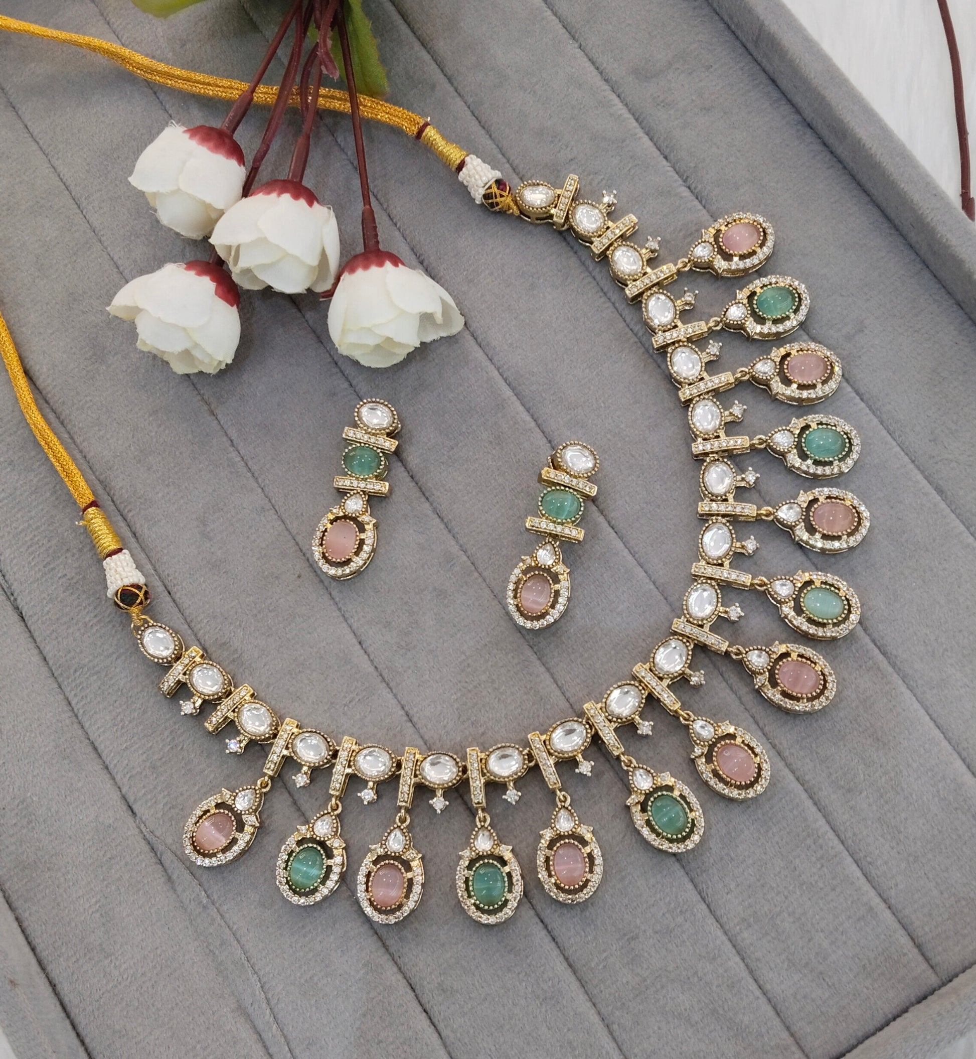 Mint Pink Gold Moissanite Kundan Necklace Jewellery Sonalika Set