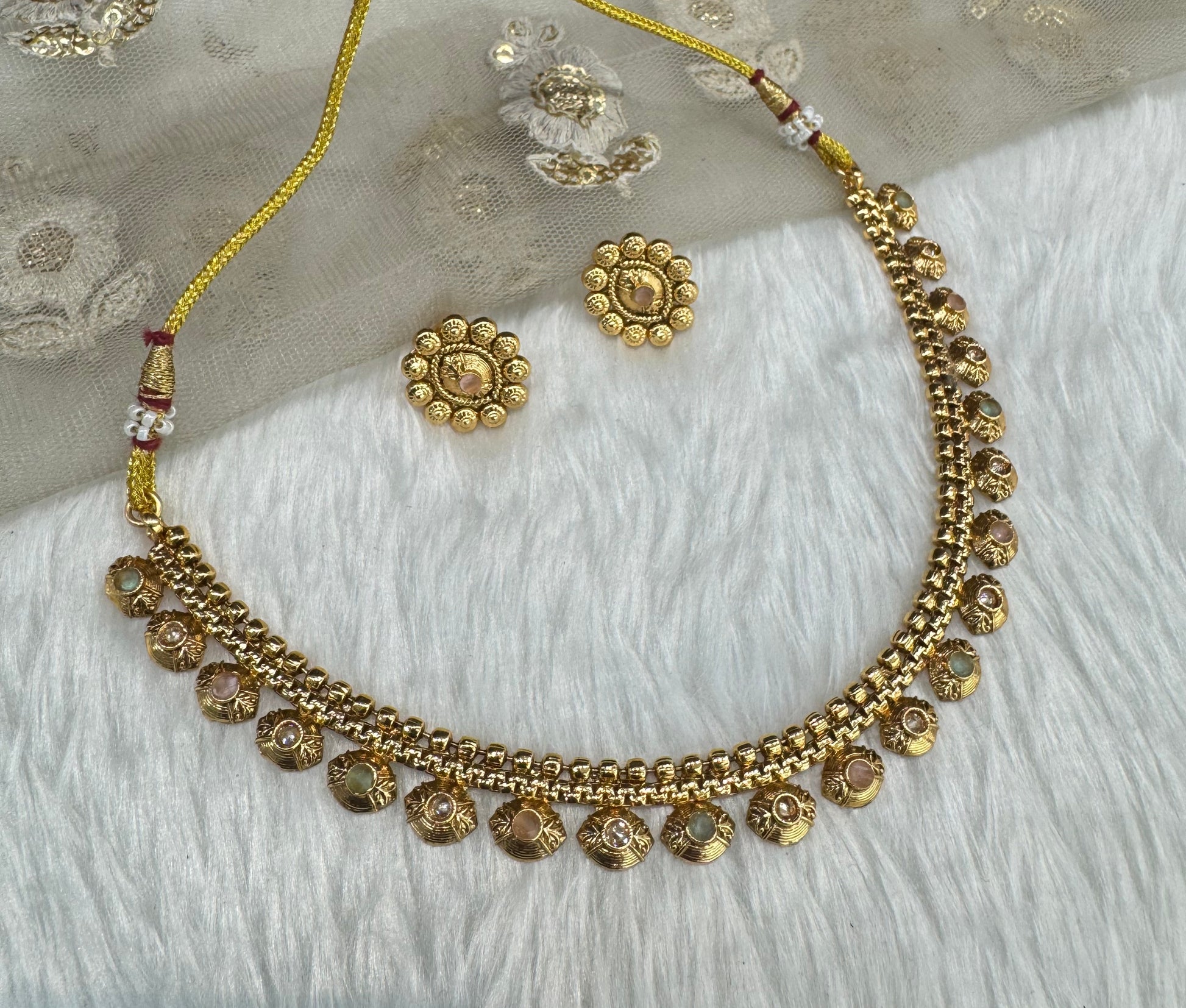 Mint pink Gold Polki Necklace Jewellery Pawan Set