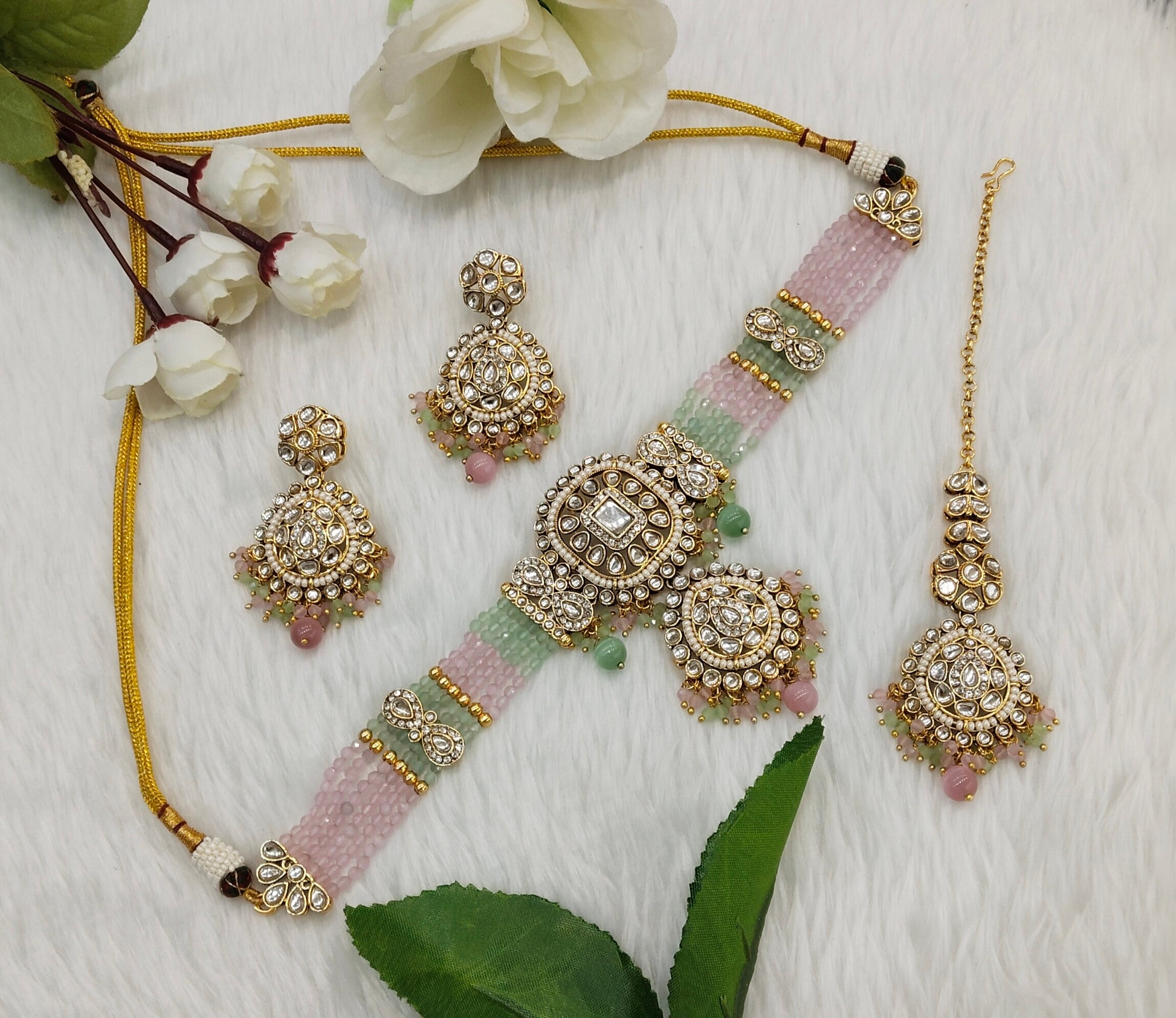 Mint Pink Kundan Choker Jewellery Lavina Set