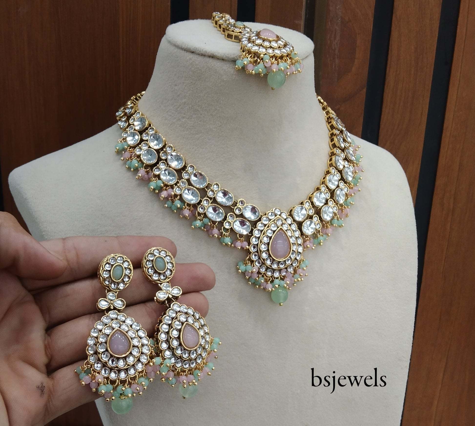 Mint Pink Kundan Necklace Jewellery Kush Set
