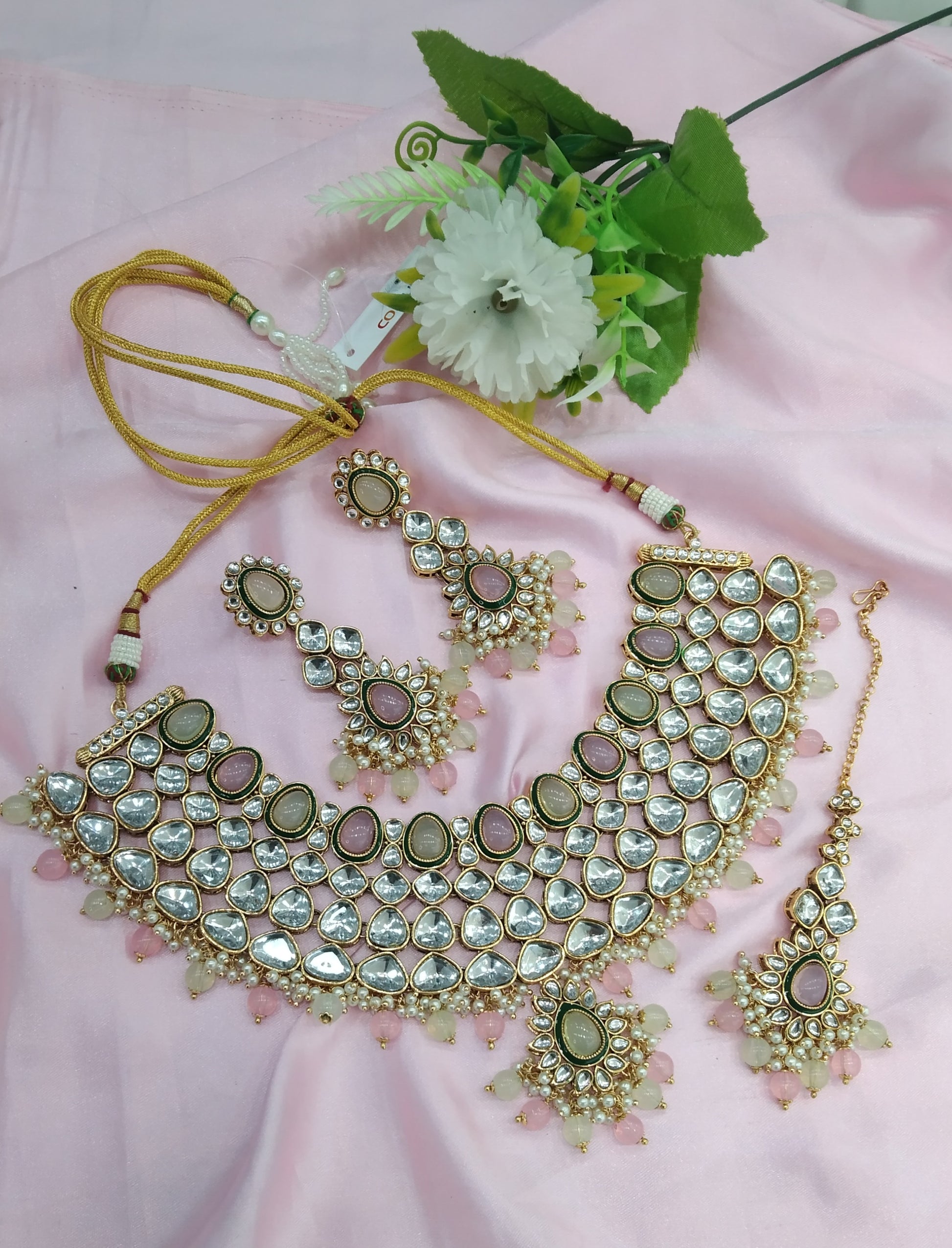 Mint Pink Kundan Necklace Jewellery Lite Set