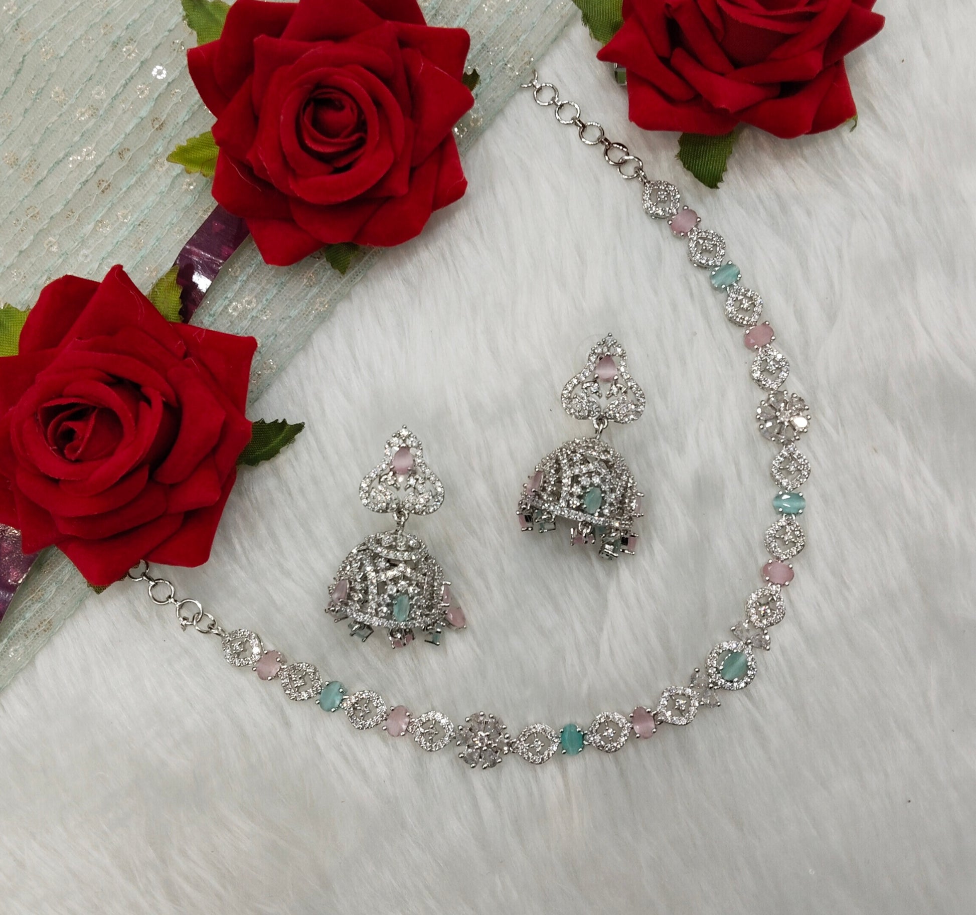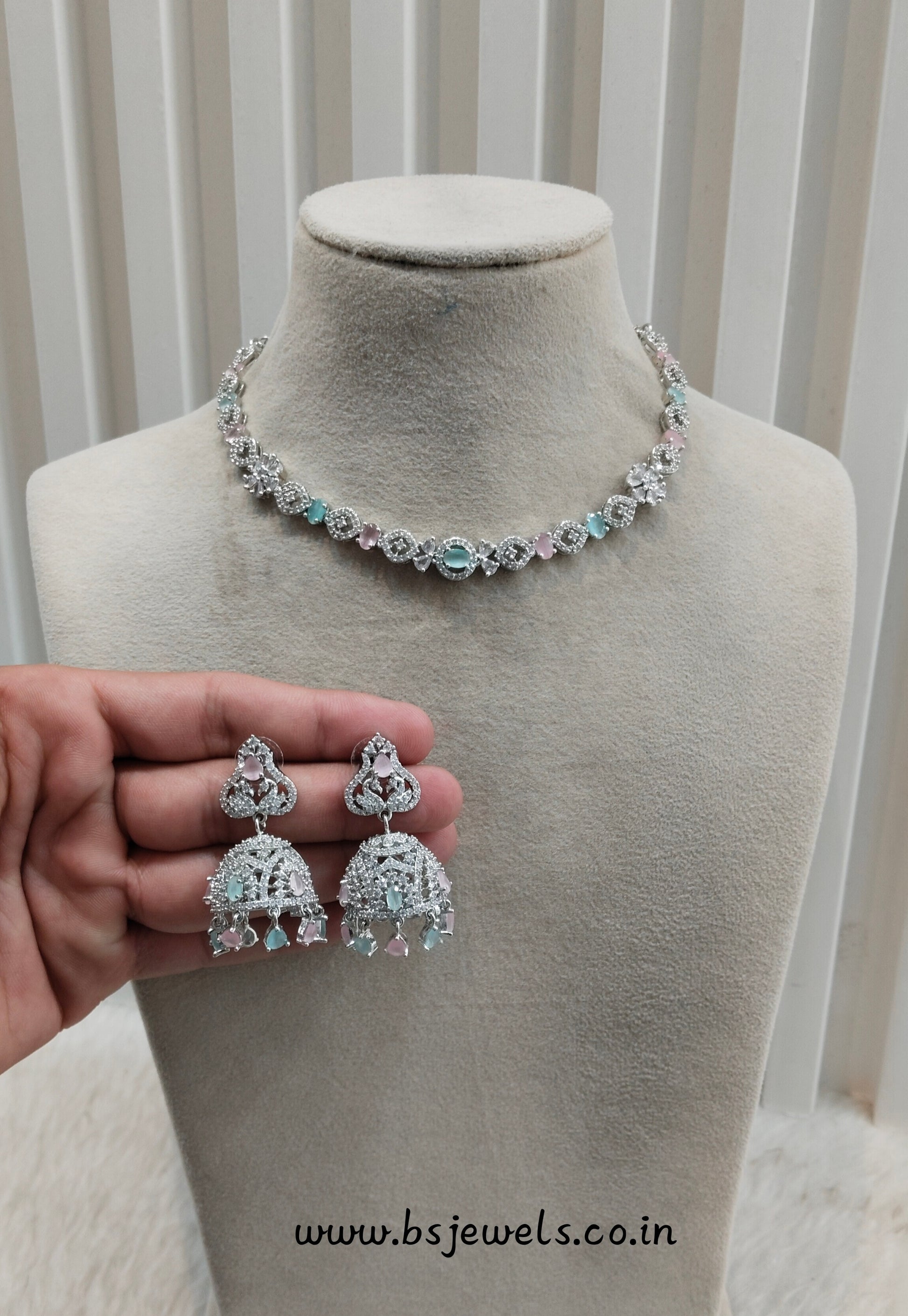 Mint Pink Silver CZ Necklace Jewellery Jaysurya Set