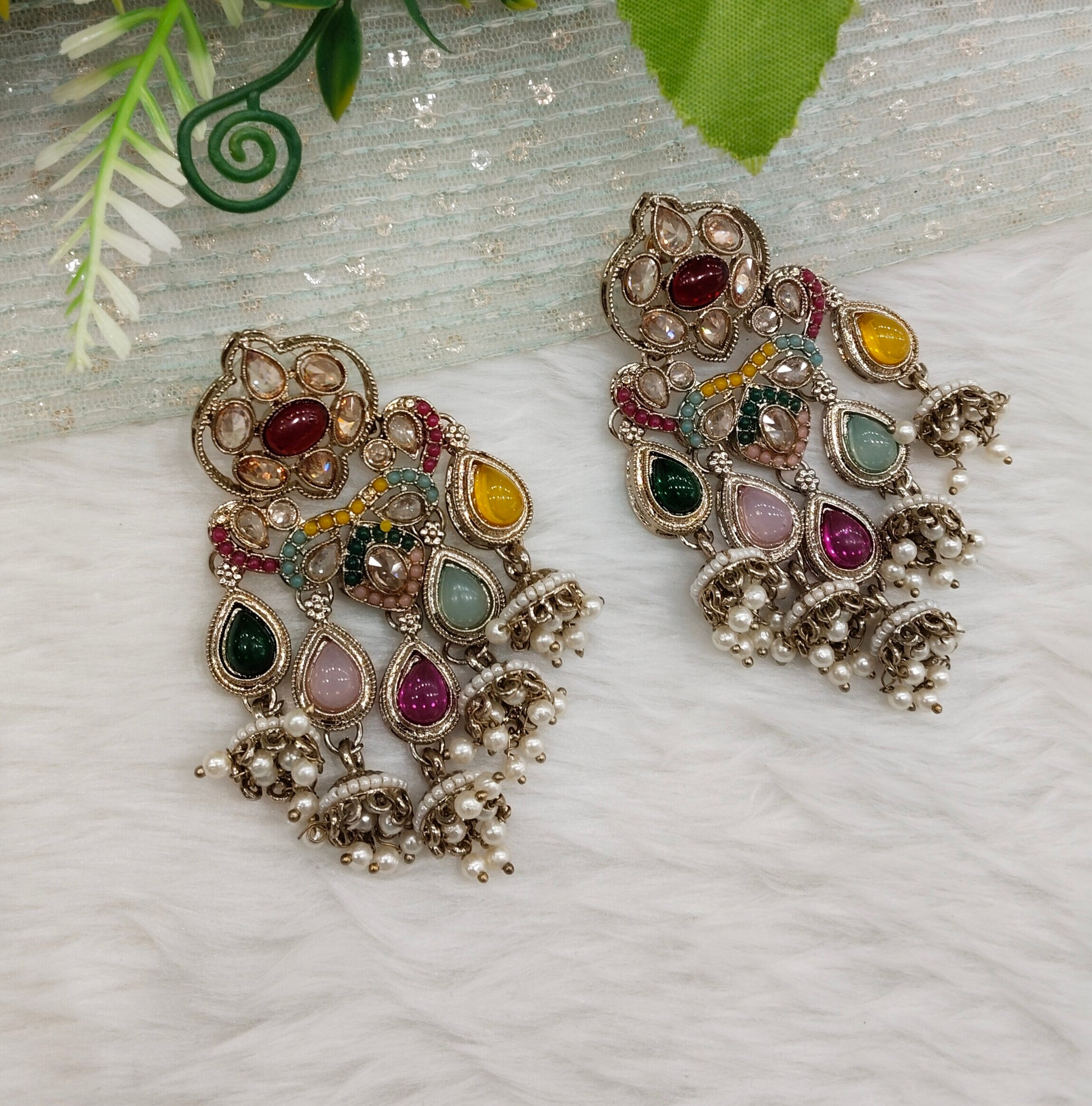Multi Color Antique Gold Bollywood Hooda Earrings