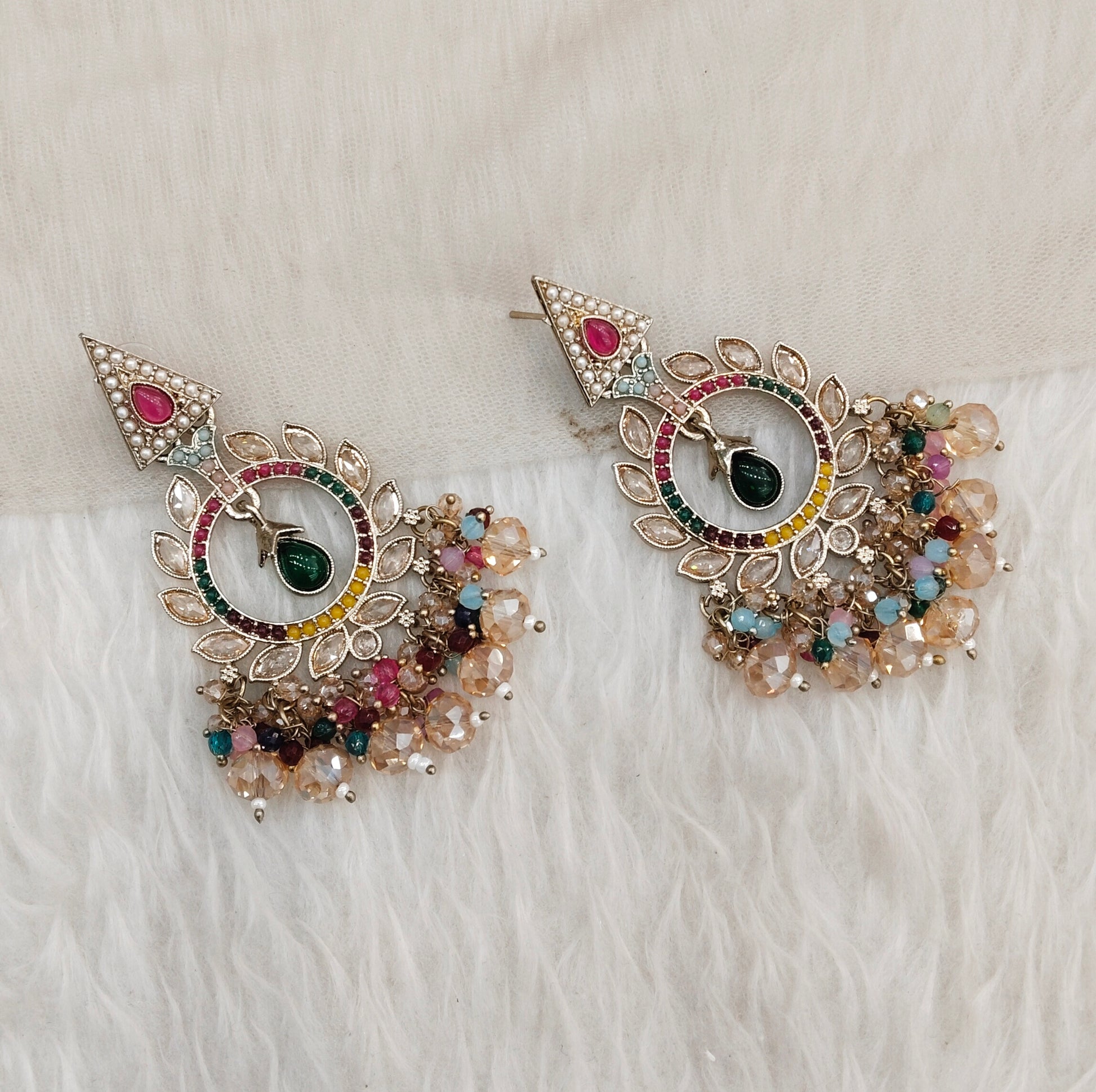 Multi Color Antique Gold Bollywood Sarpunch Earrings