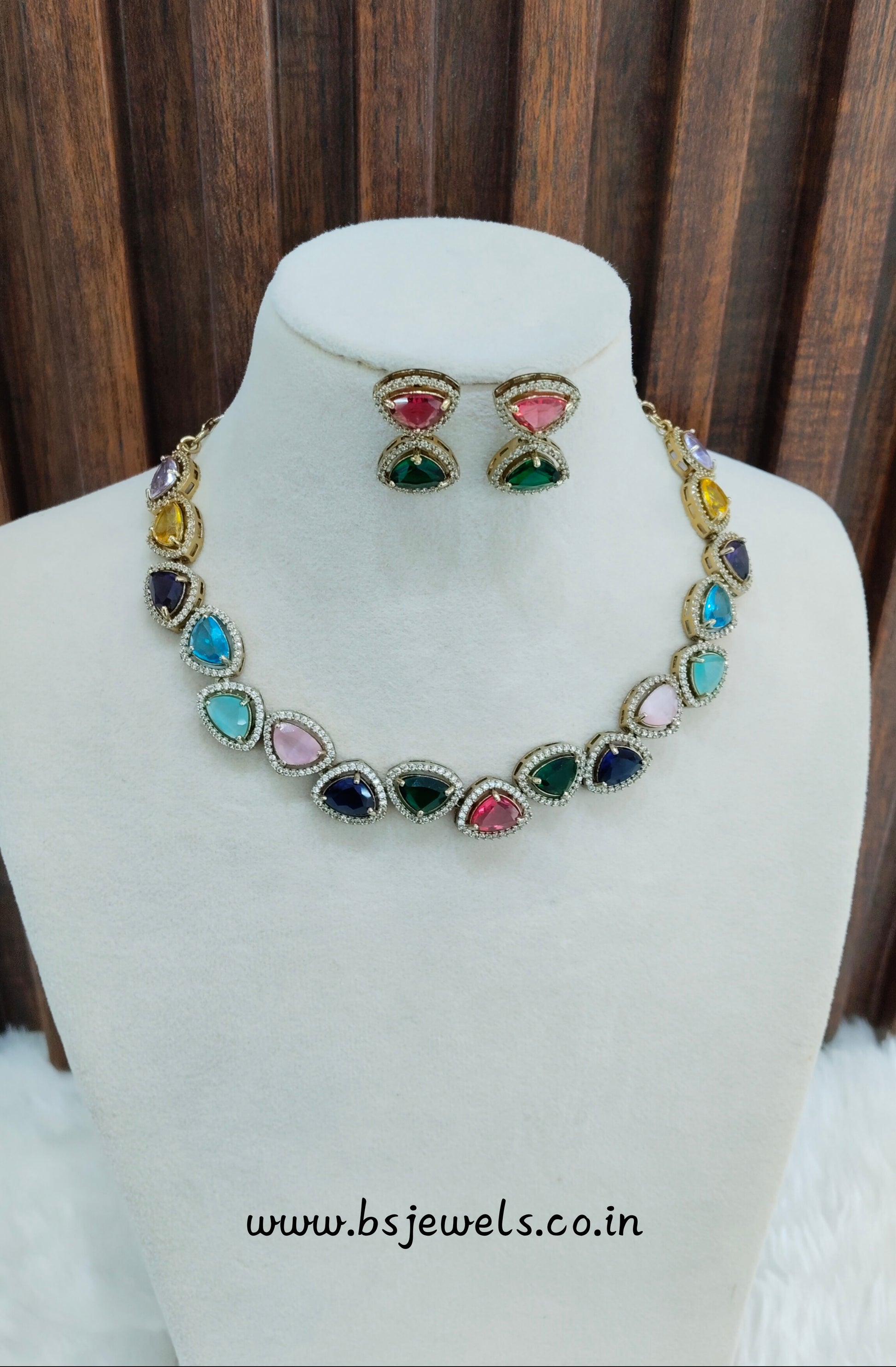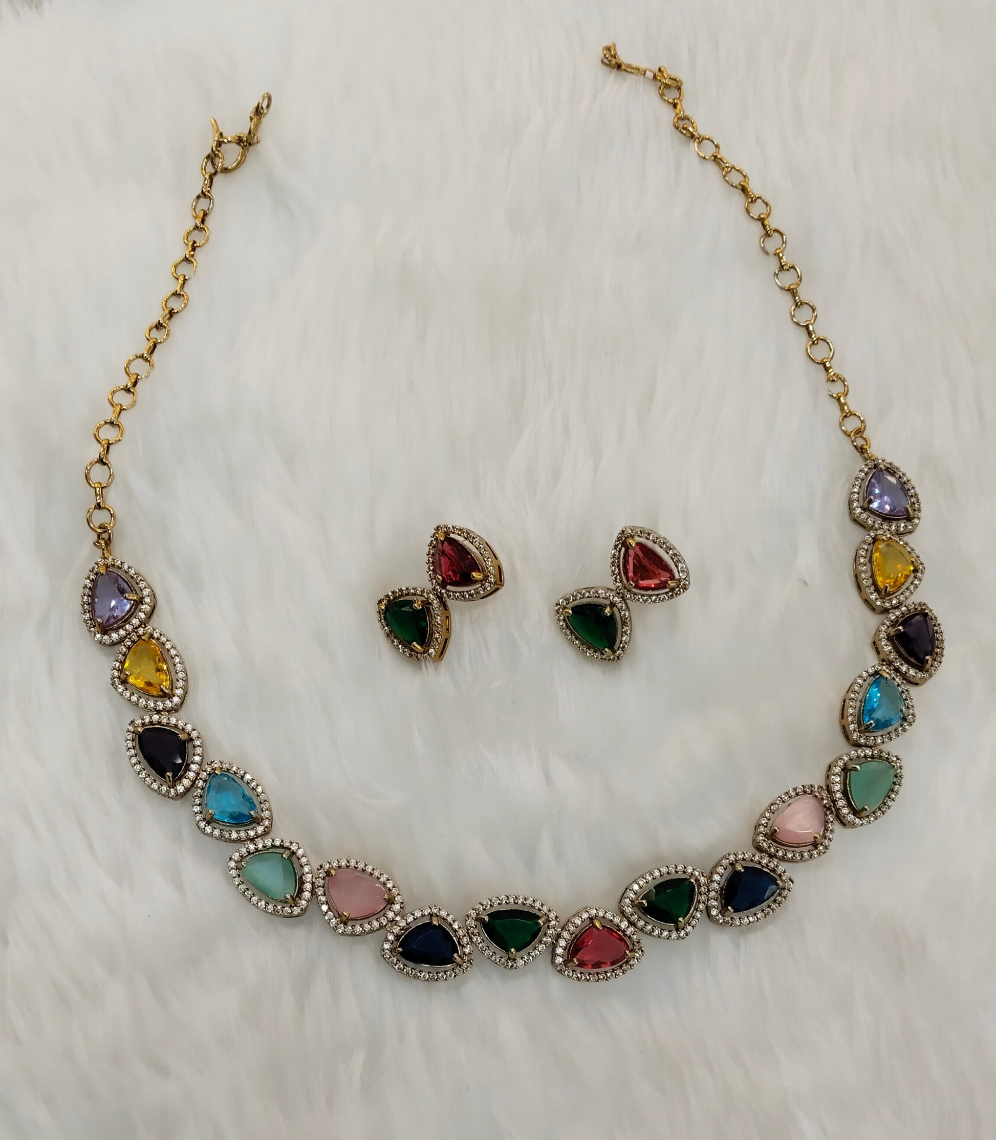 Multi Color Antique Gold CZ Necklace Jewellery Hero Set