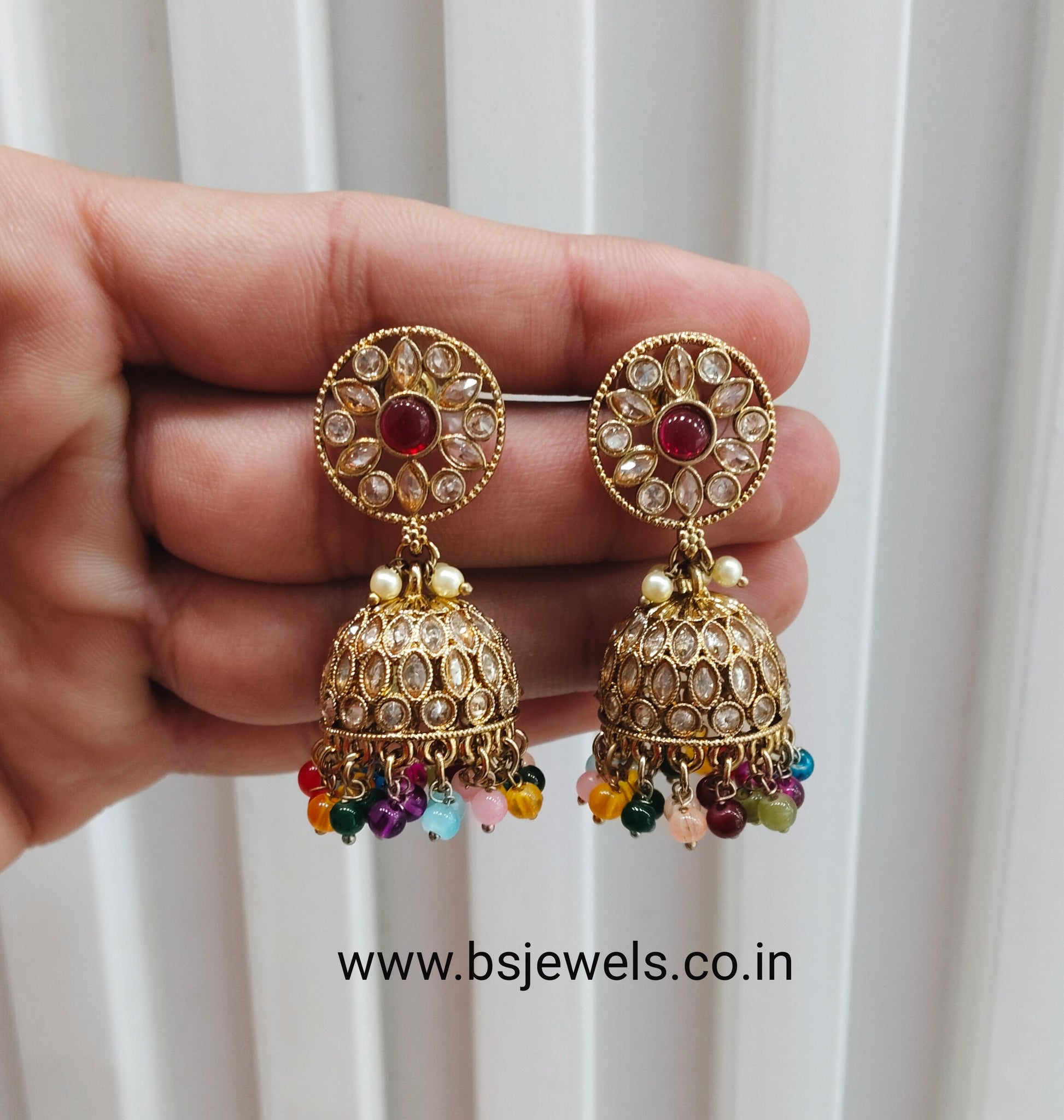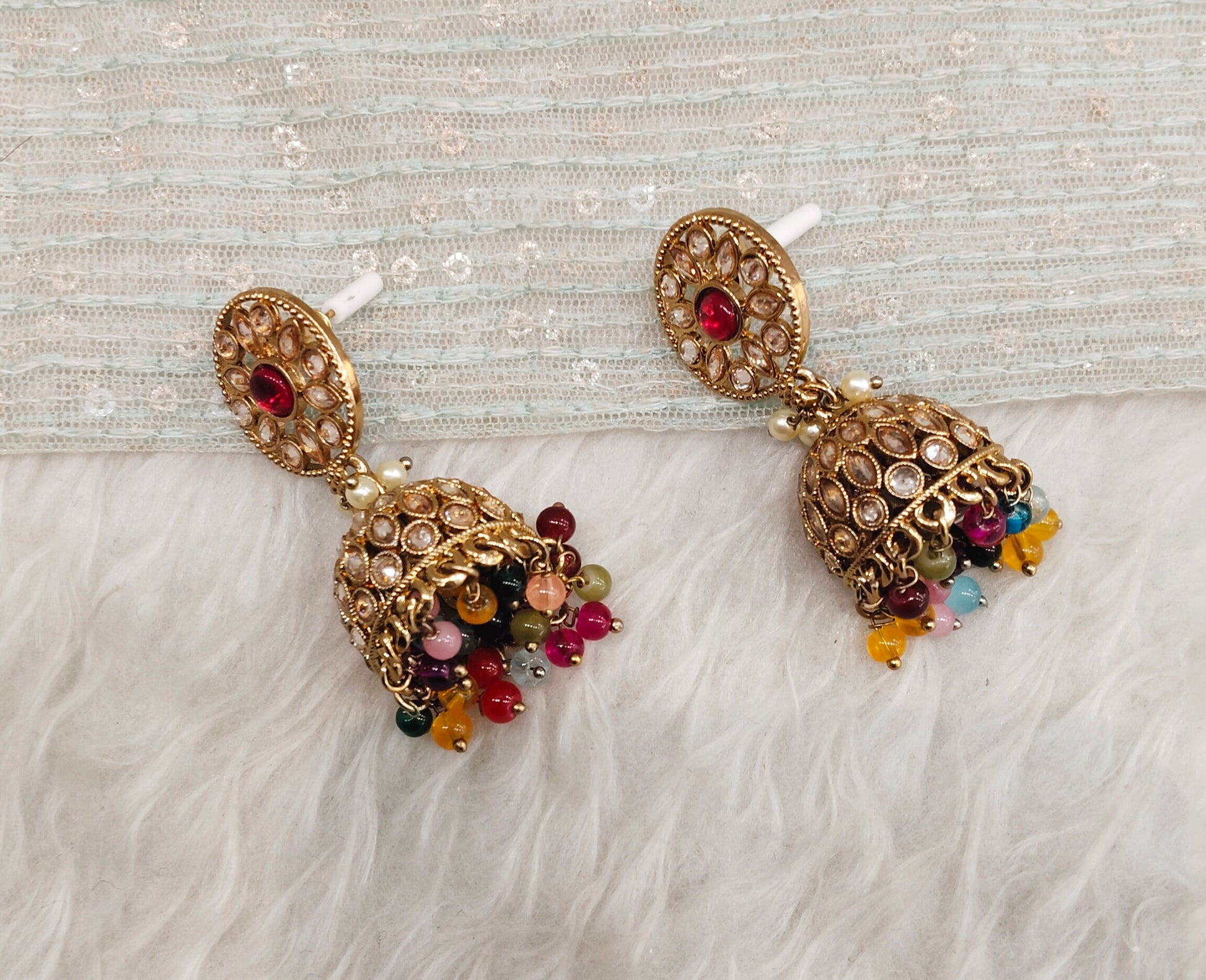 Multi Color Antique Gold Jhumki Bollywood Earrings