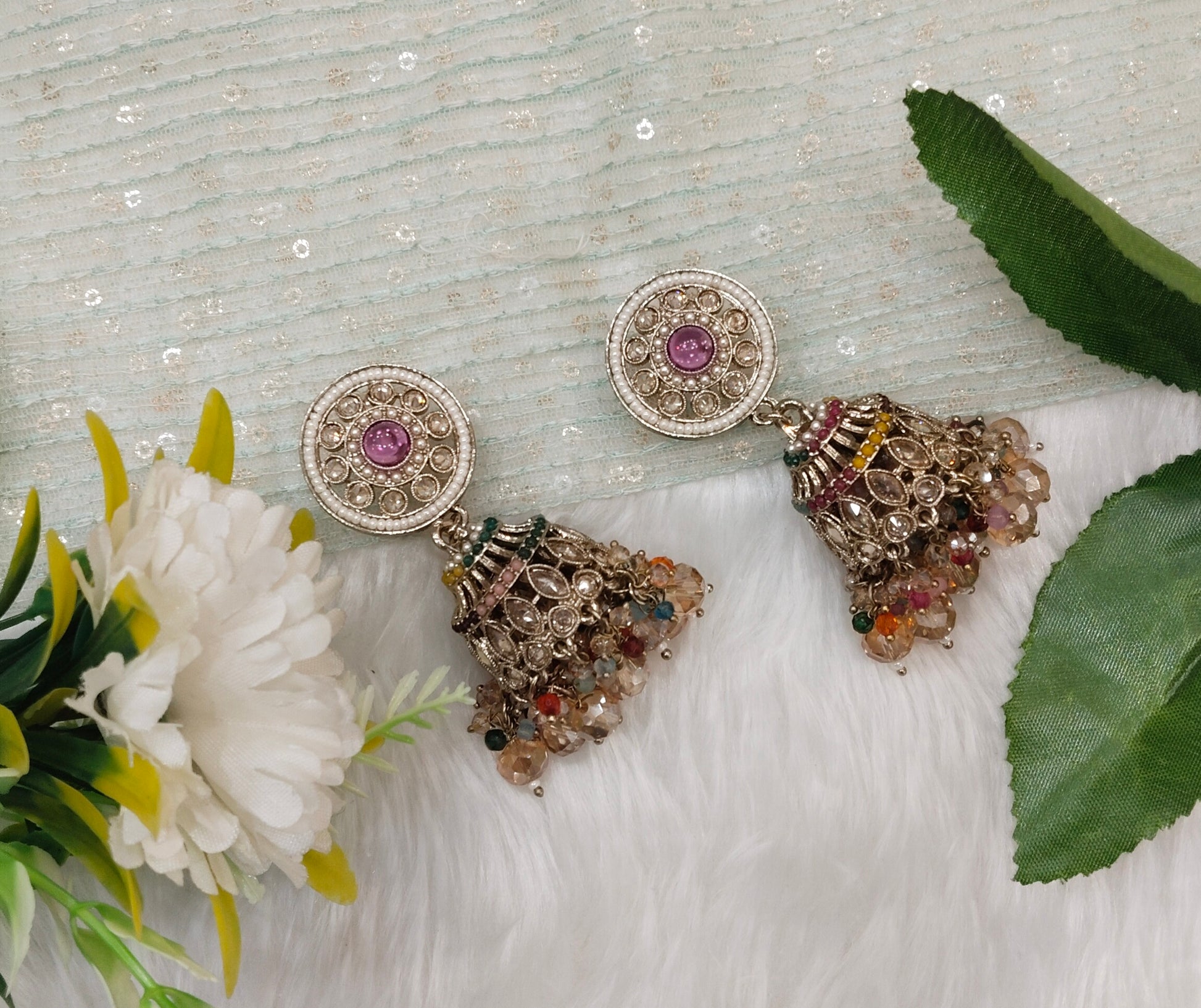 Multi Color Antique Gold Jhumki Bollywood Ghatak Earrings