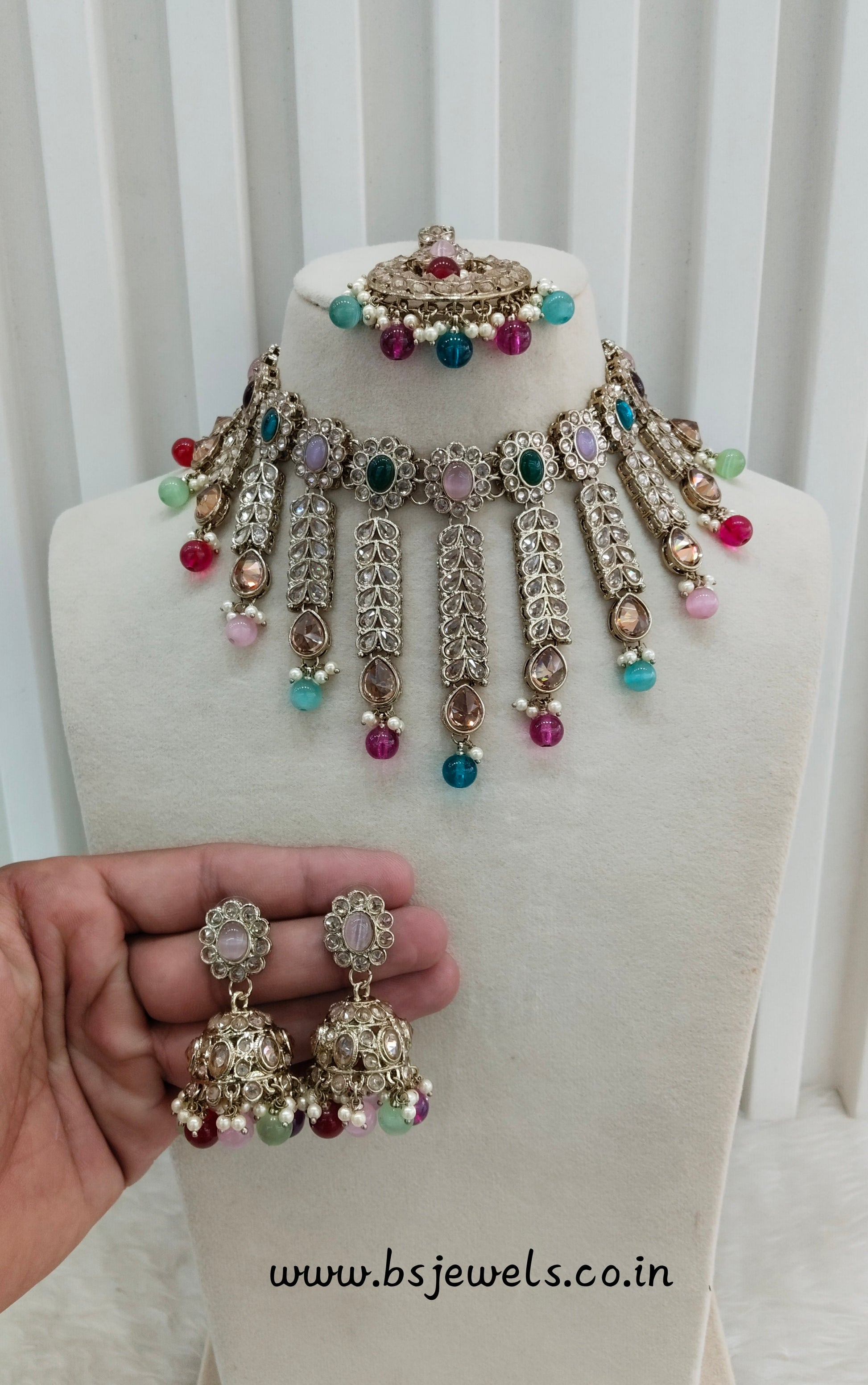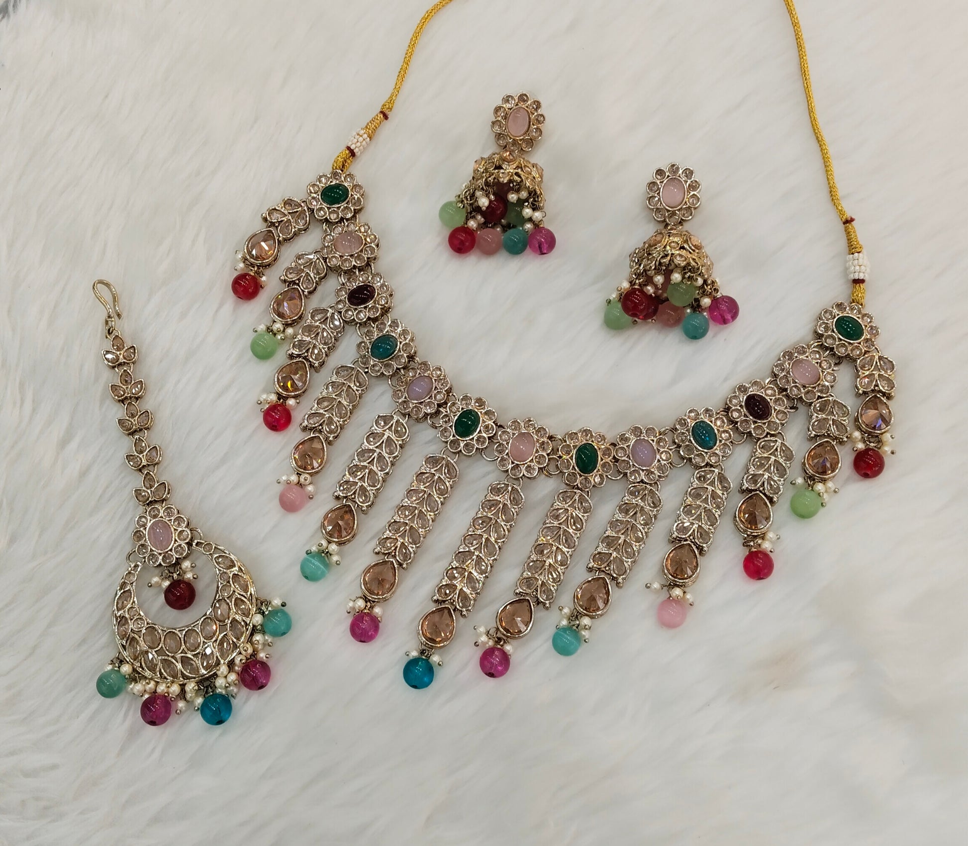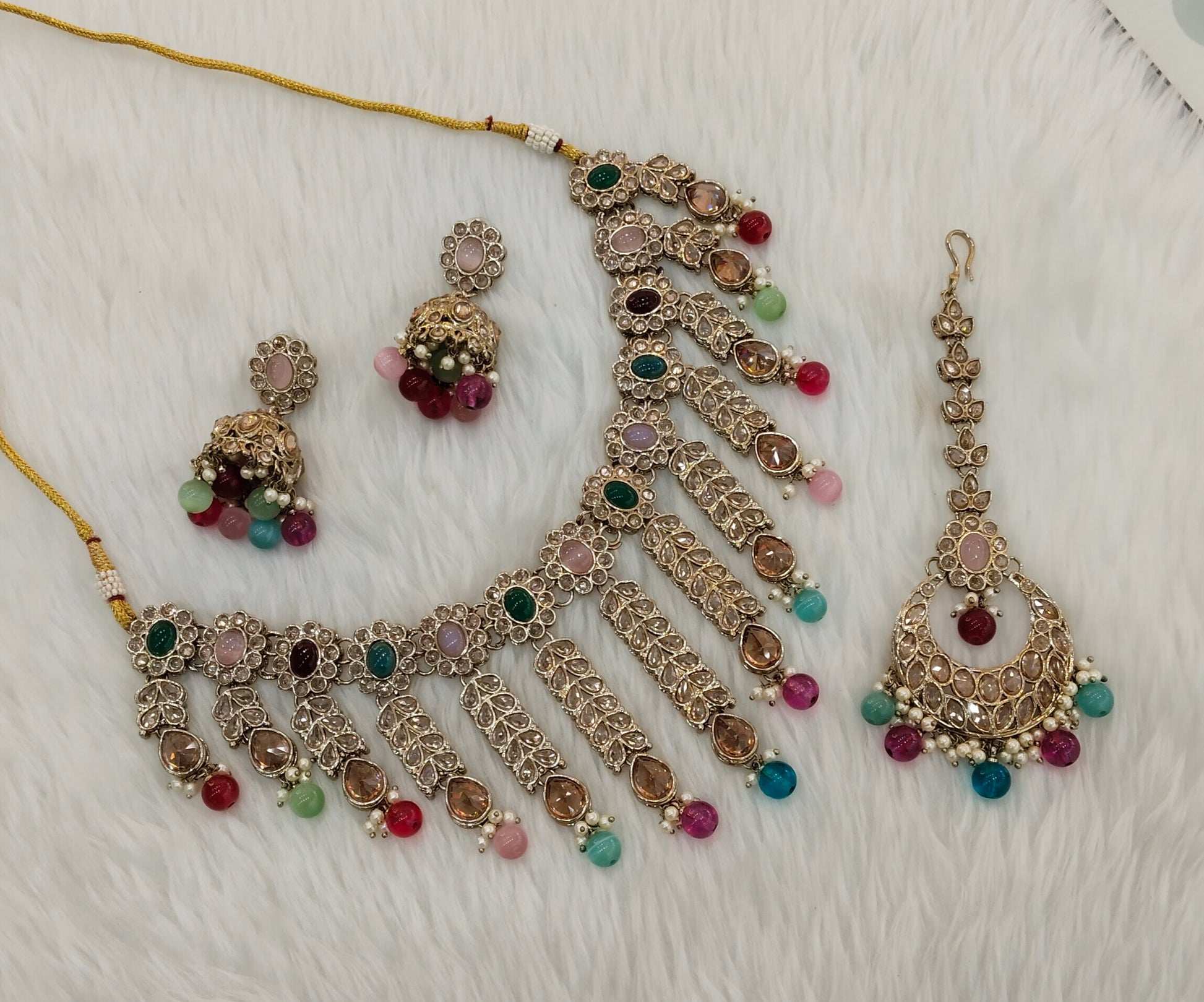 Multi Color Antique Gold Necklace Jewellery Animal Set