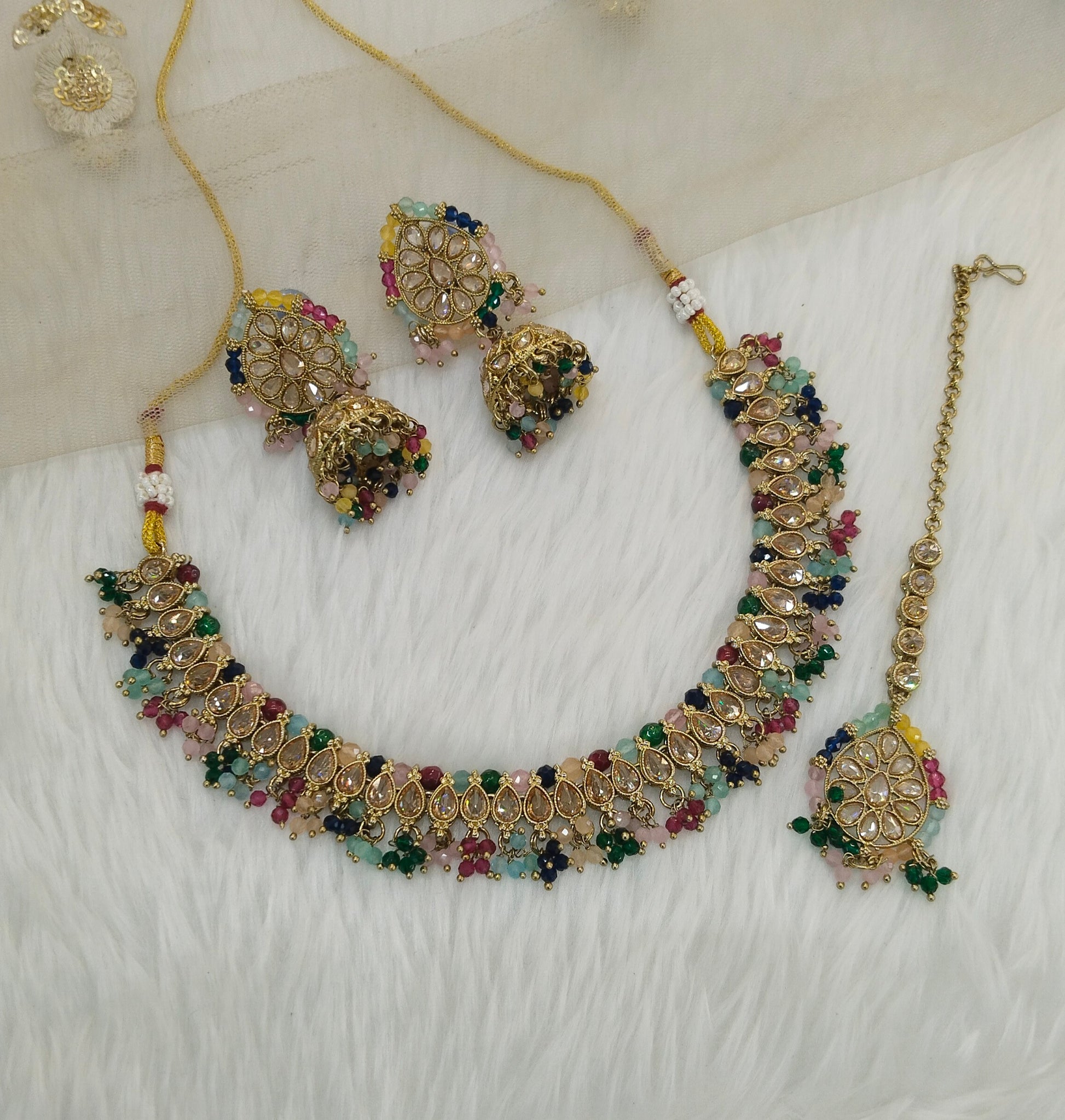 Multi Color Antique Gold Necklace Jewellery Anmol Set