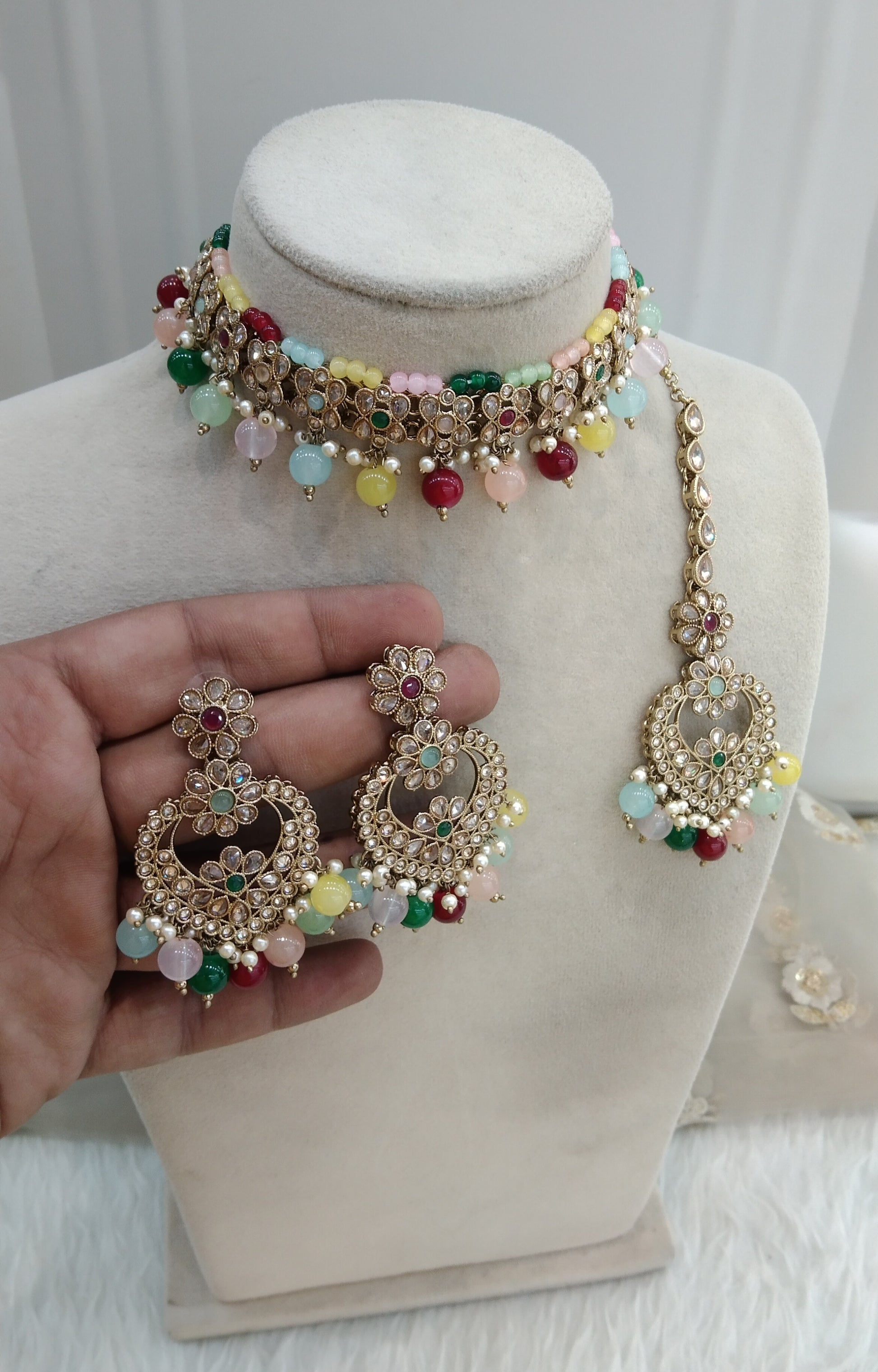 *Choker set with earrings and tikka.