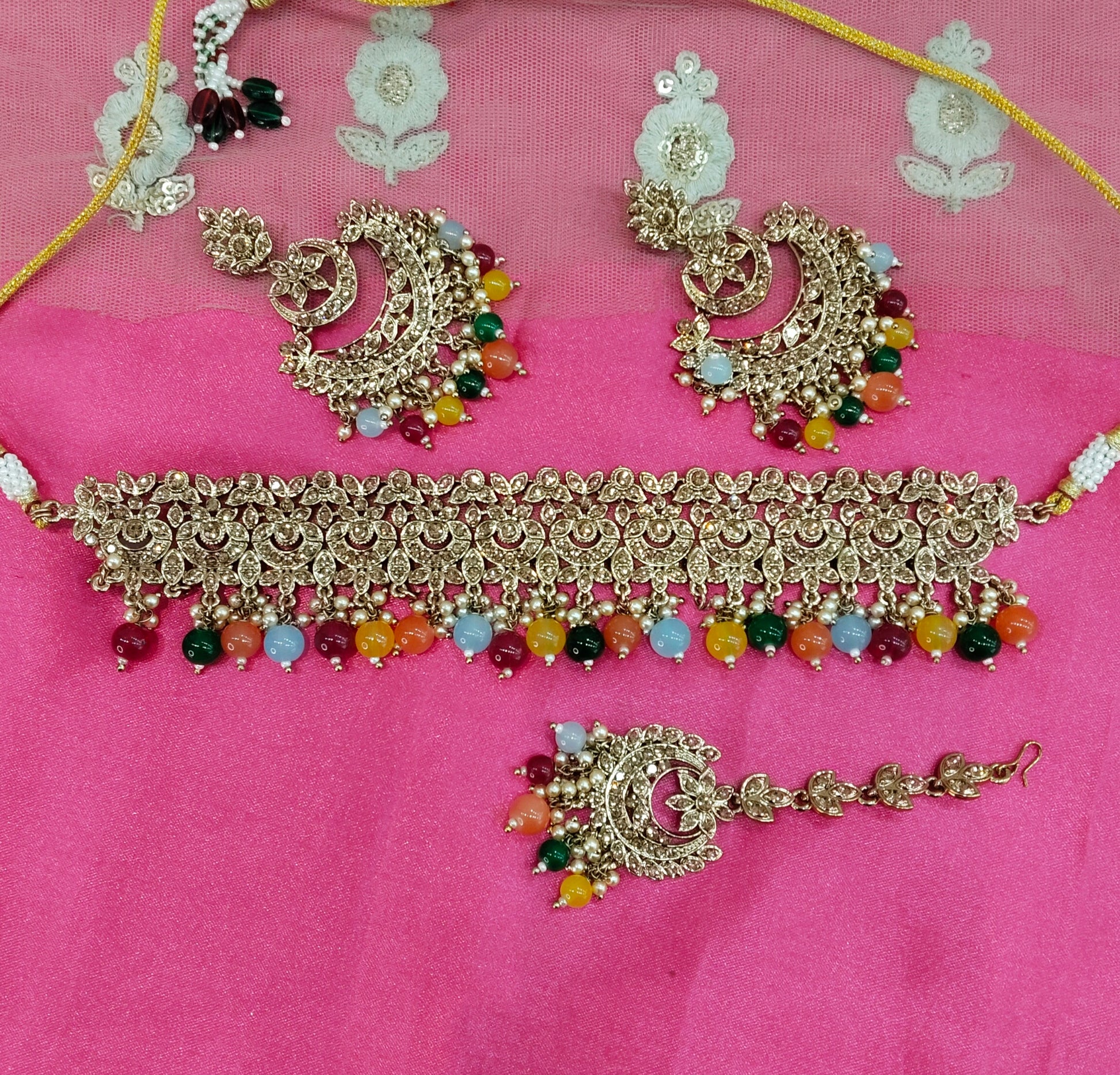 Multi Color Crystal Stone Choker Jewellery Siraj Set