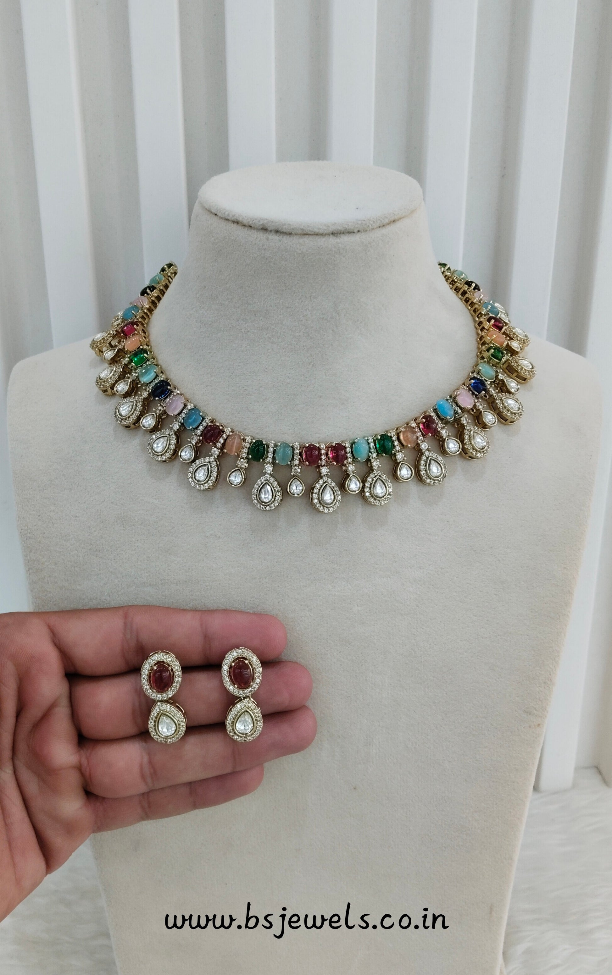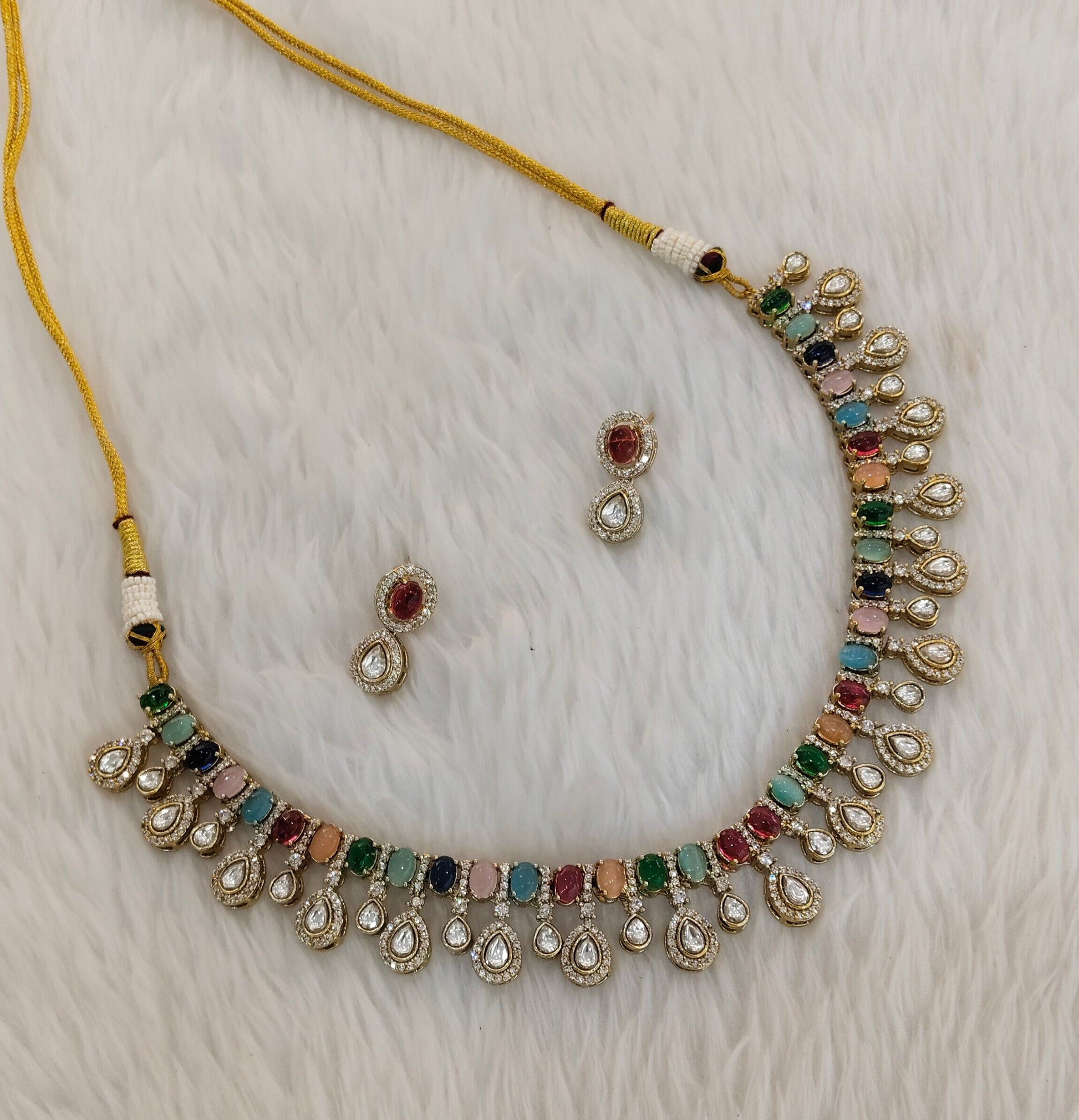 Multi Color Gold Moissanite Kundan Necklace Jewellery Echer Set