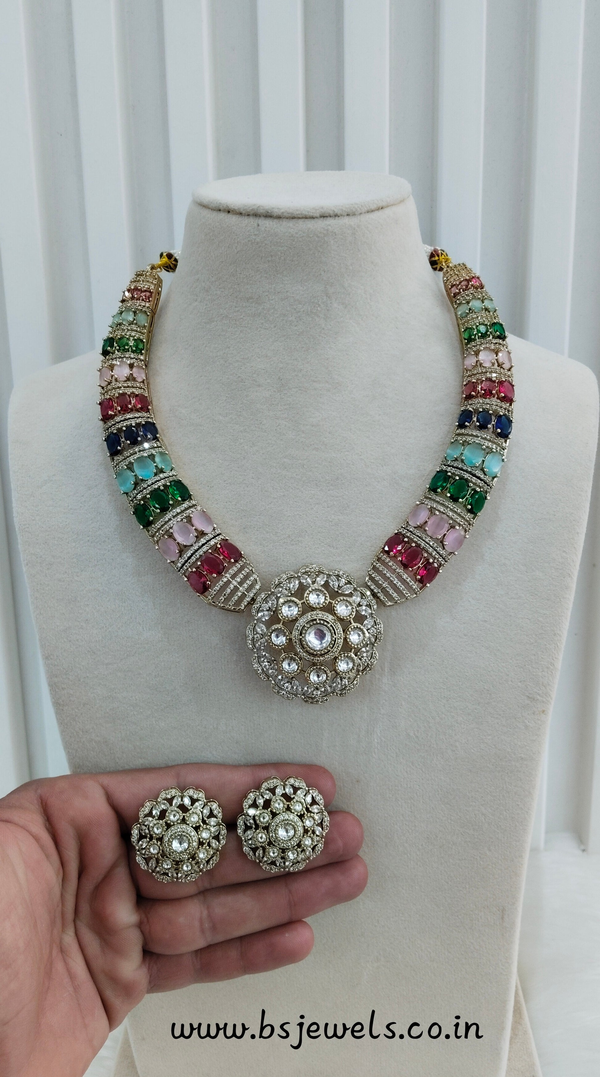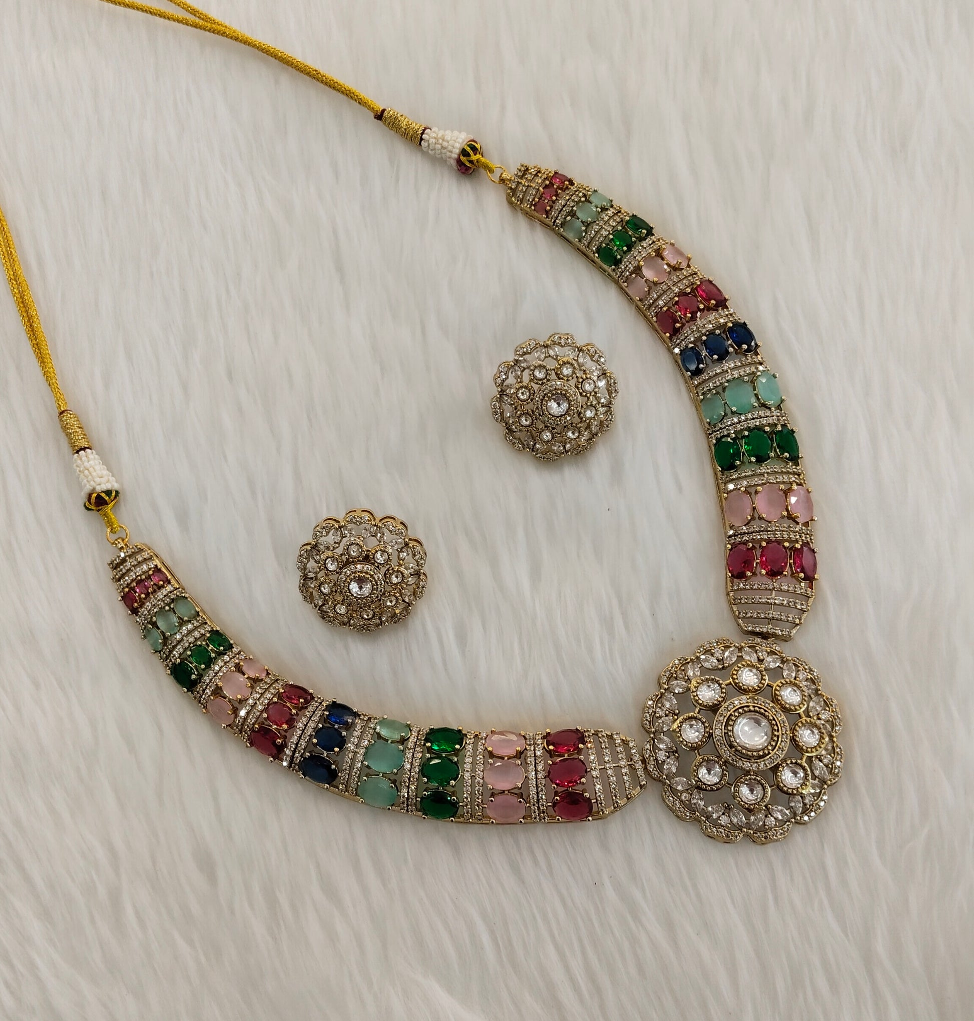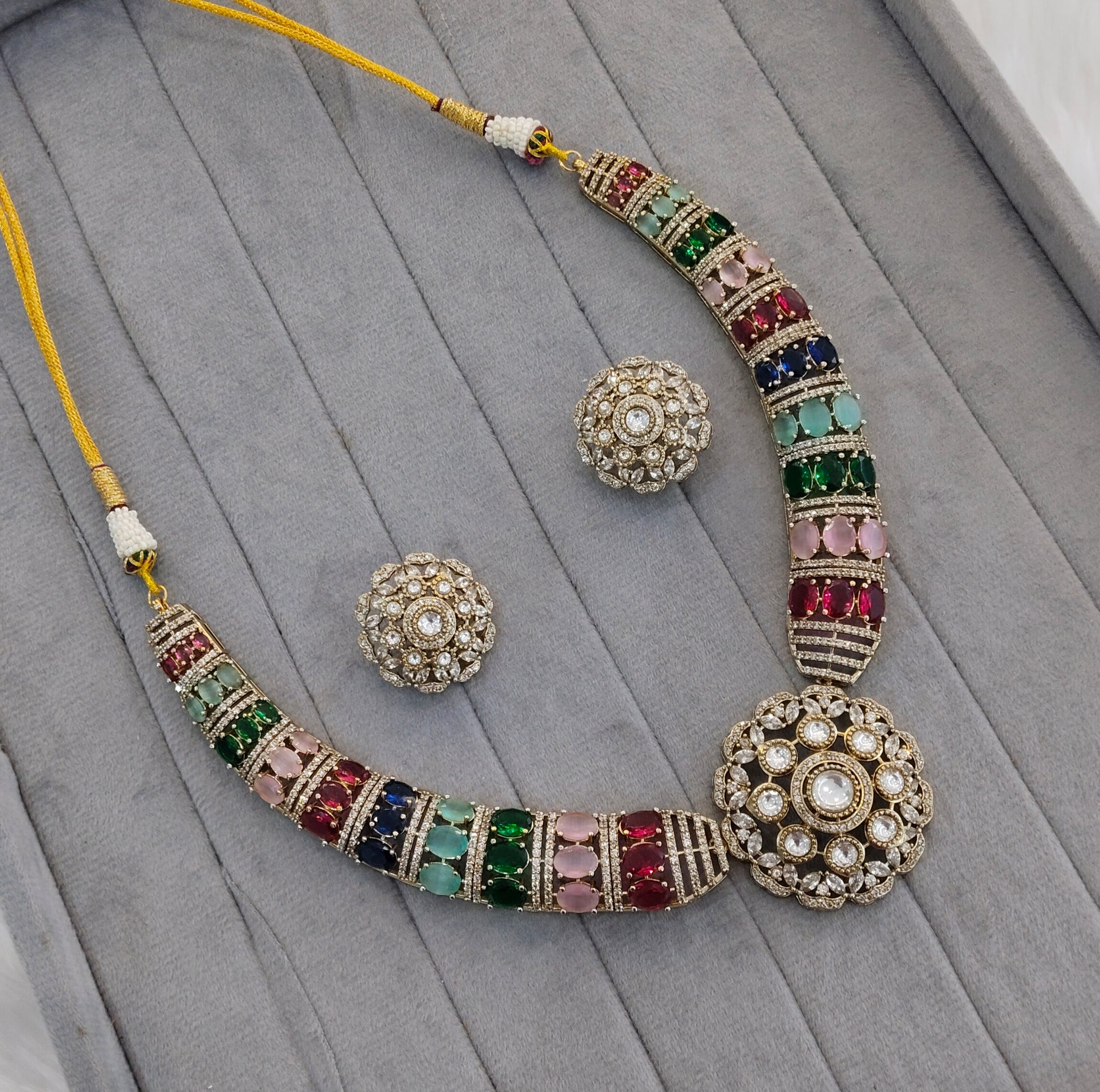 Multi Color Gold Moissanite Kundan Necklace Jewellery Jhondear Set
