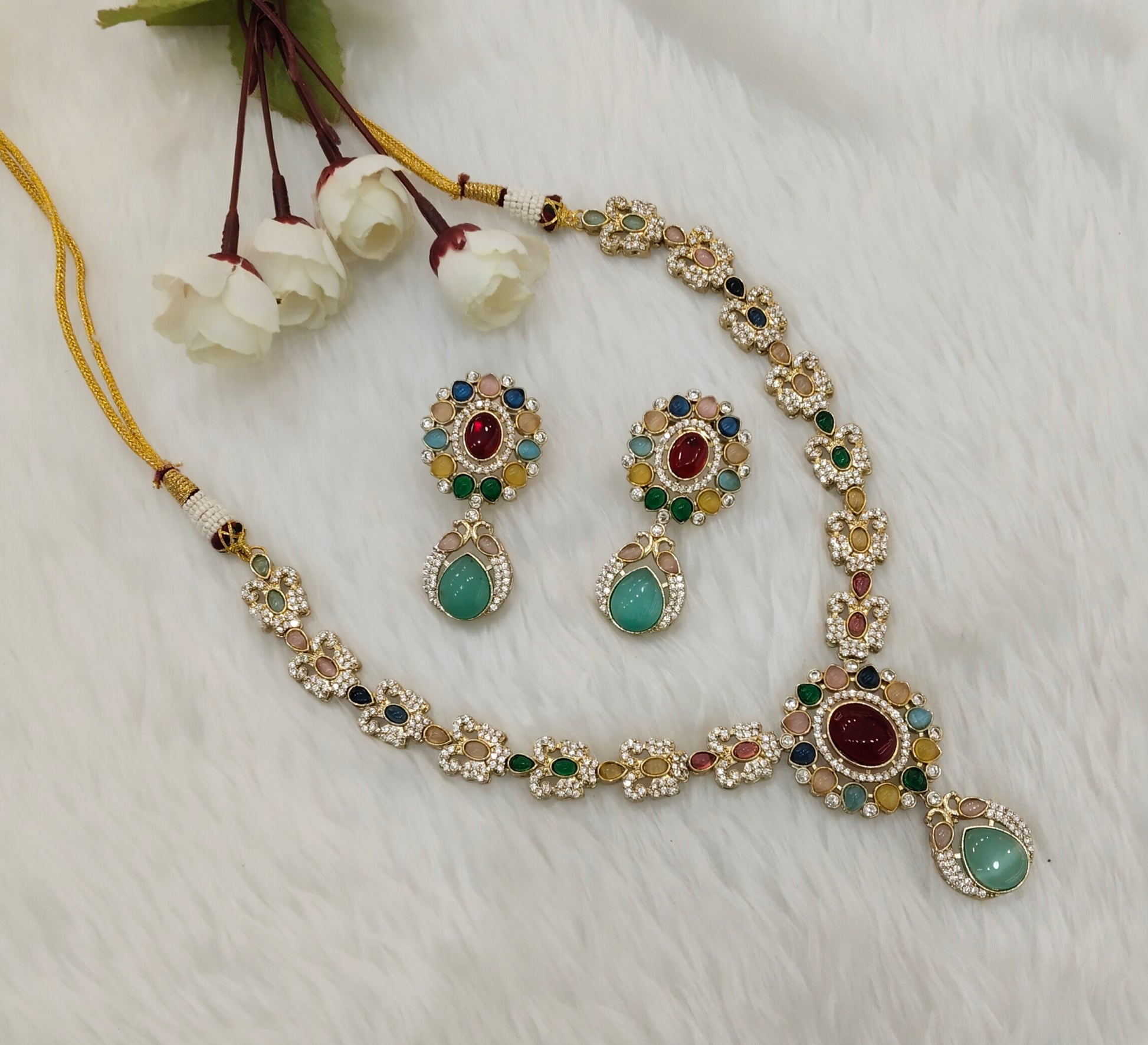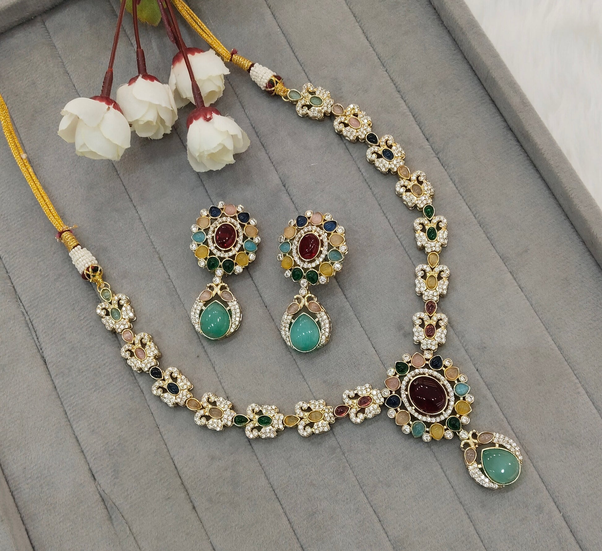 Multi Color Gold Moissanite Kundan Necklace Jewellery Sonalika Set