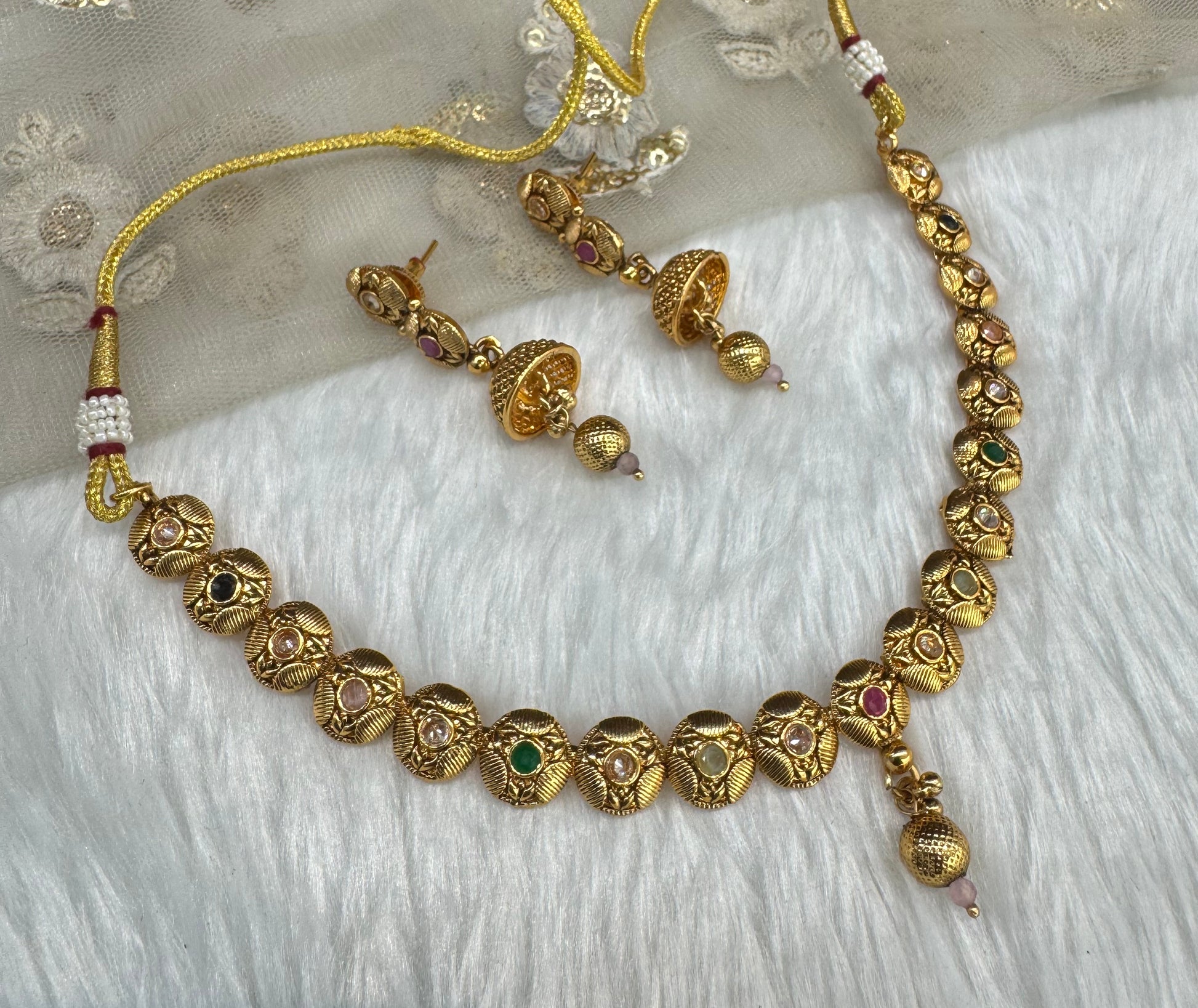 Multi Color Gold Polki Necklace Jewellery Pawan Set