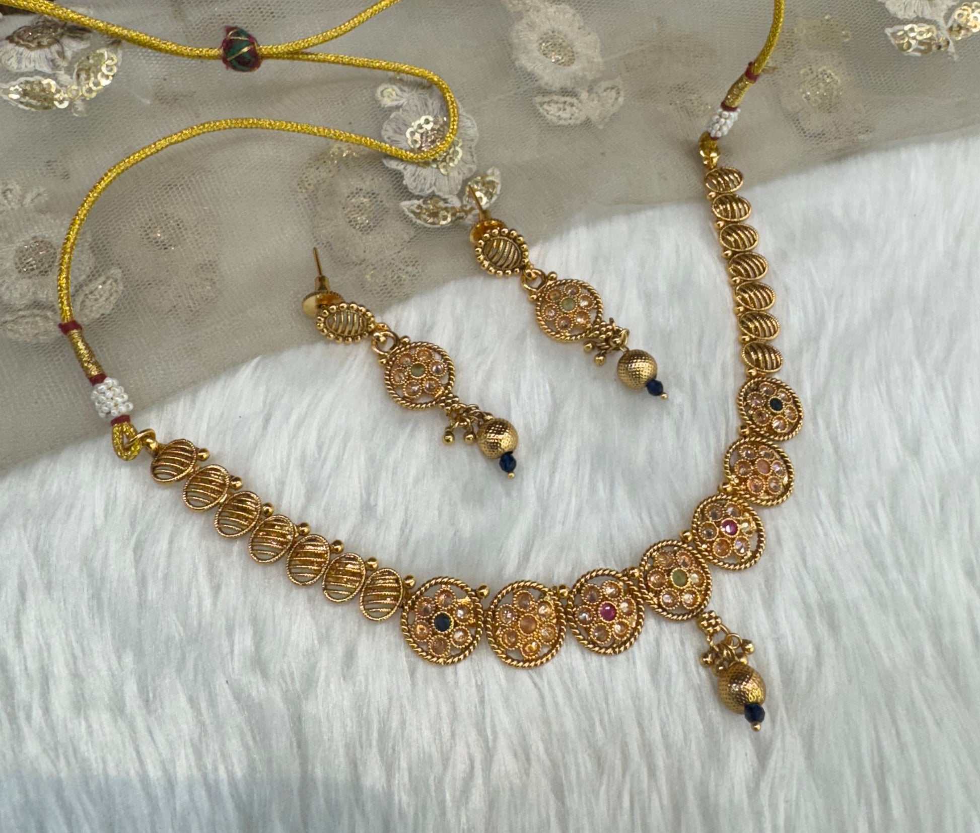 Multi Color Gold Polki Necklace Jewellery Pawan Set